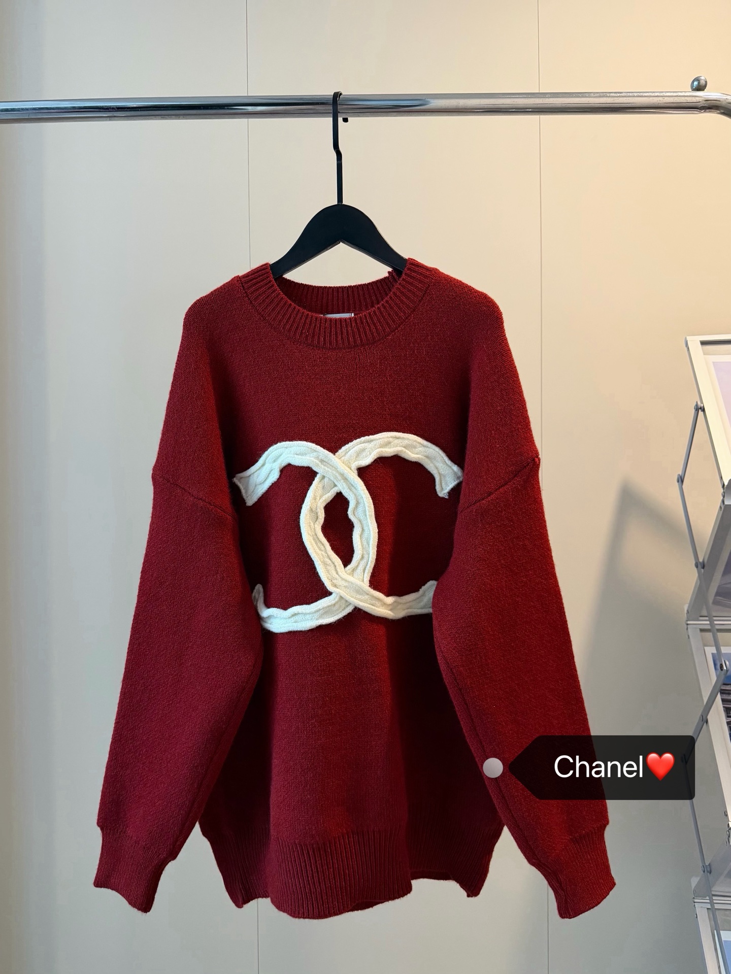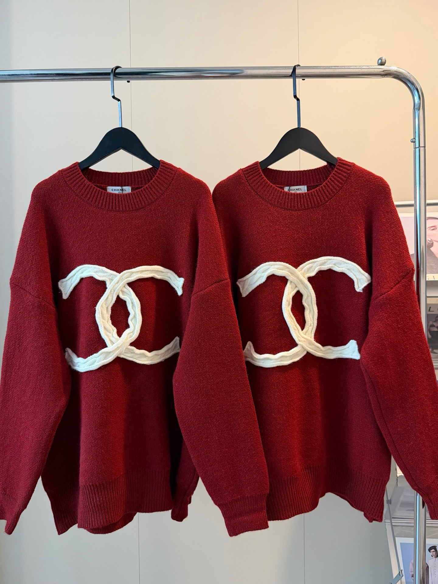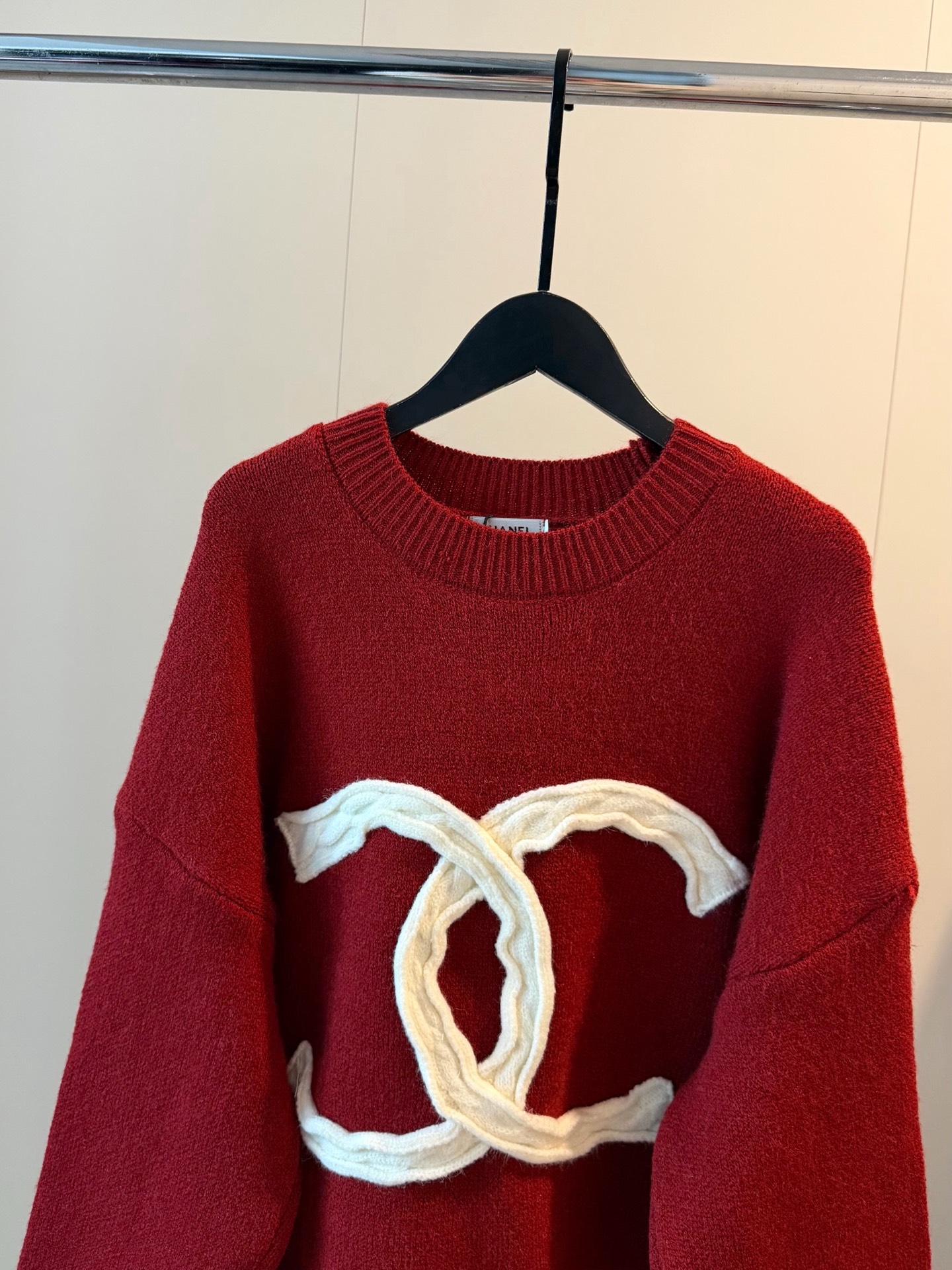 Chanel香奈儿重工编织麻花大logo圆领加厚红色毛衣