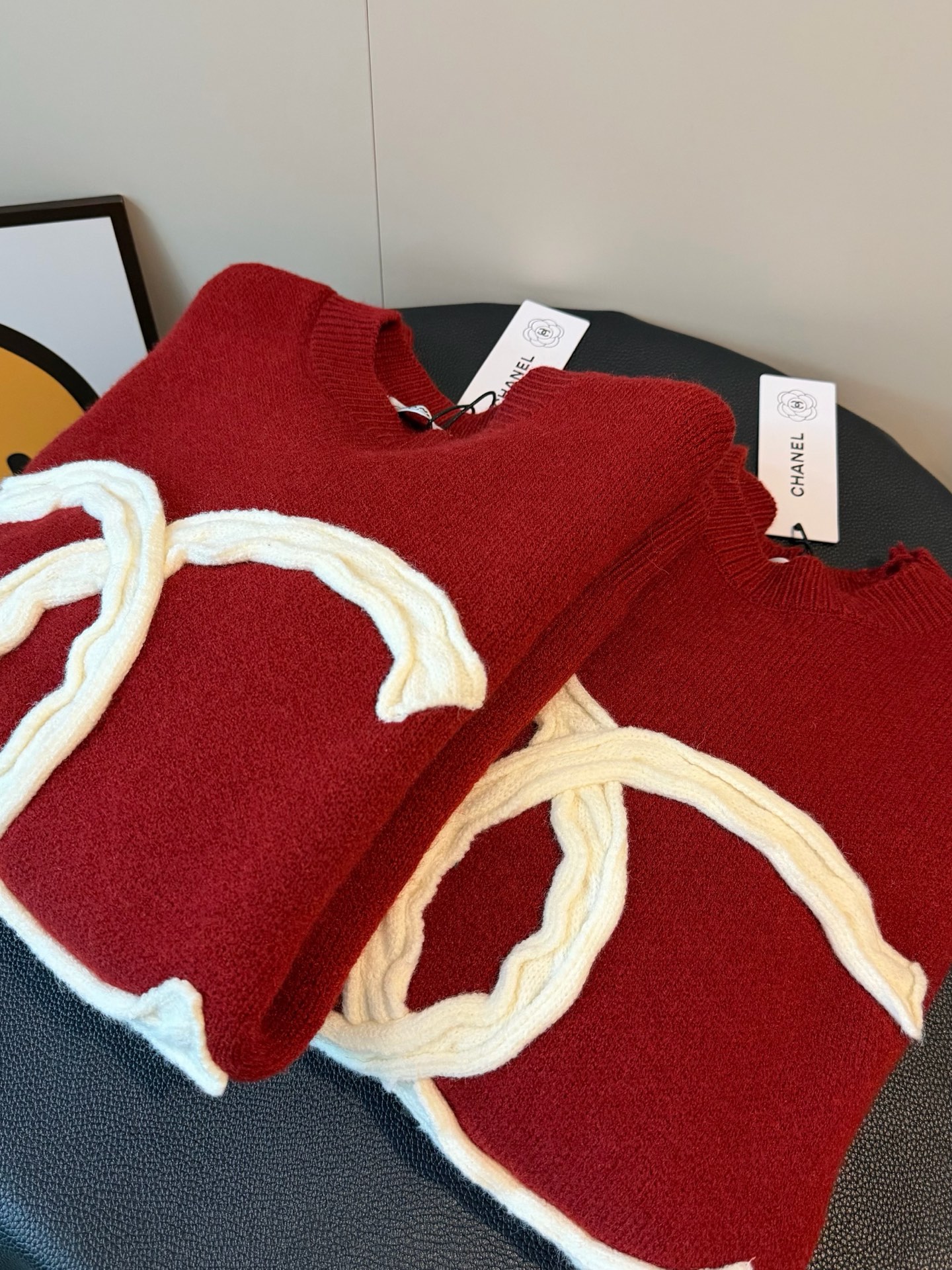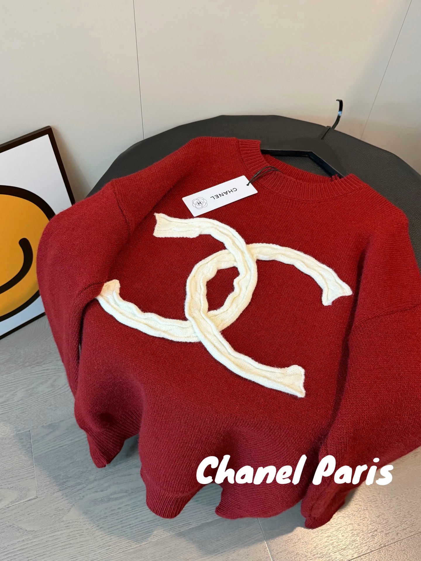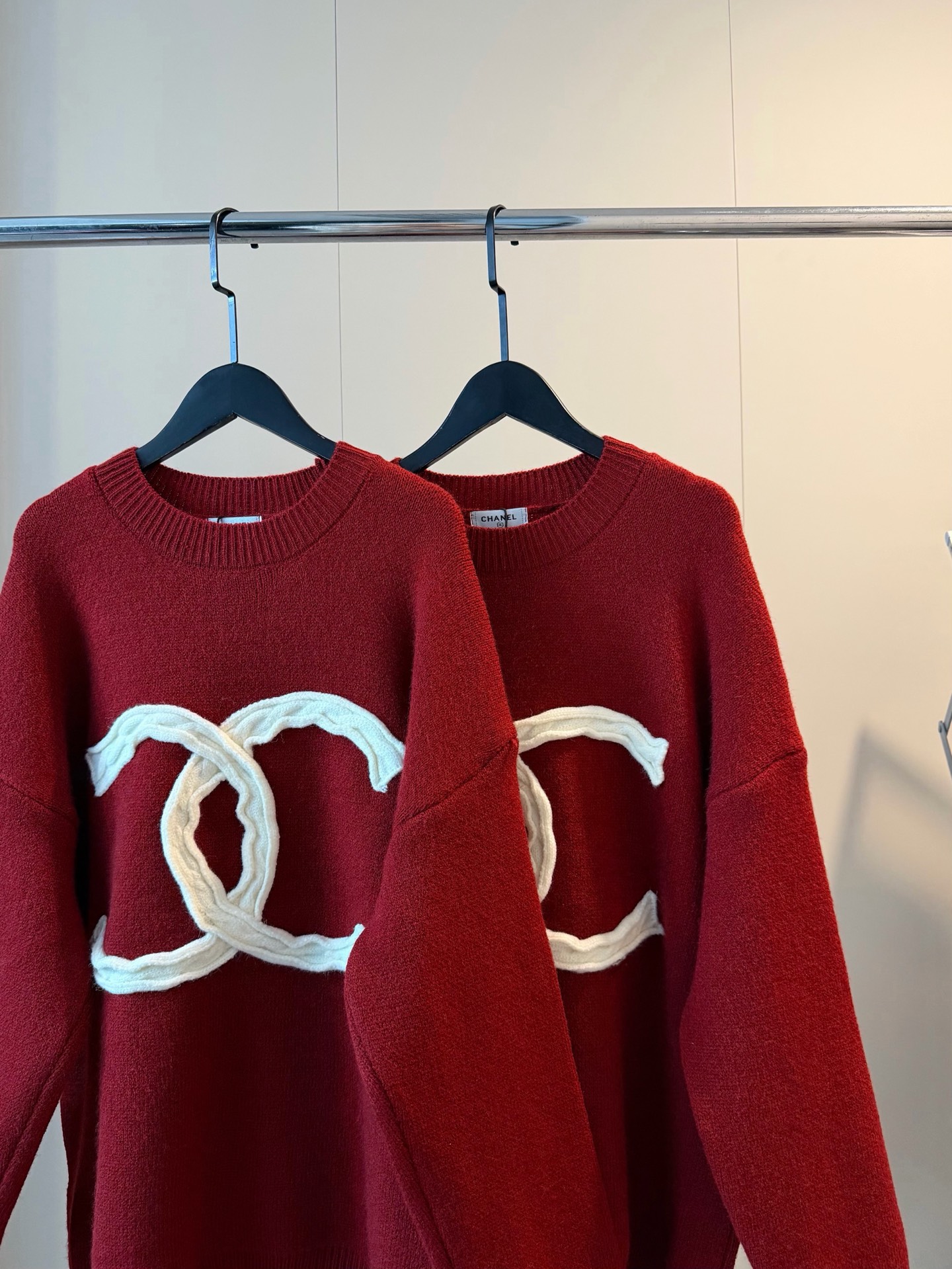 Chanel香奈儿重工编织麻花大logo圆领加厚红色毛衣