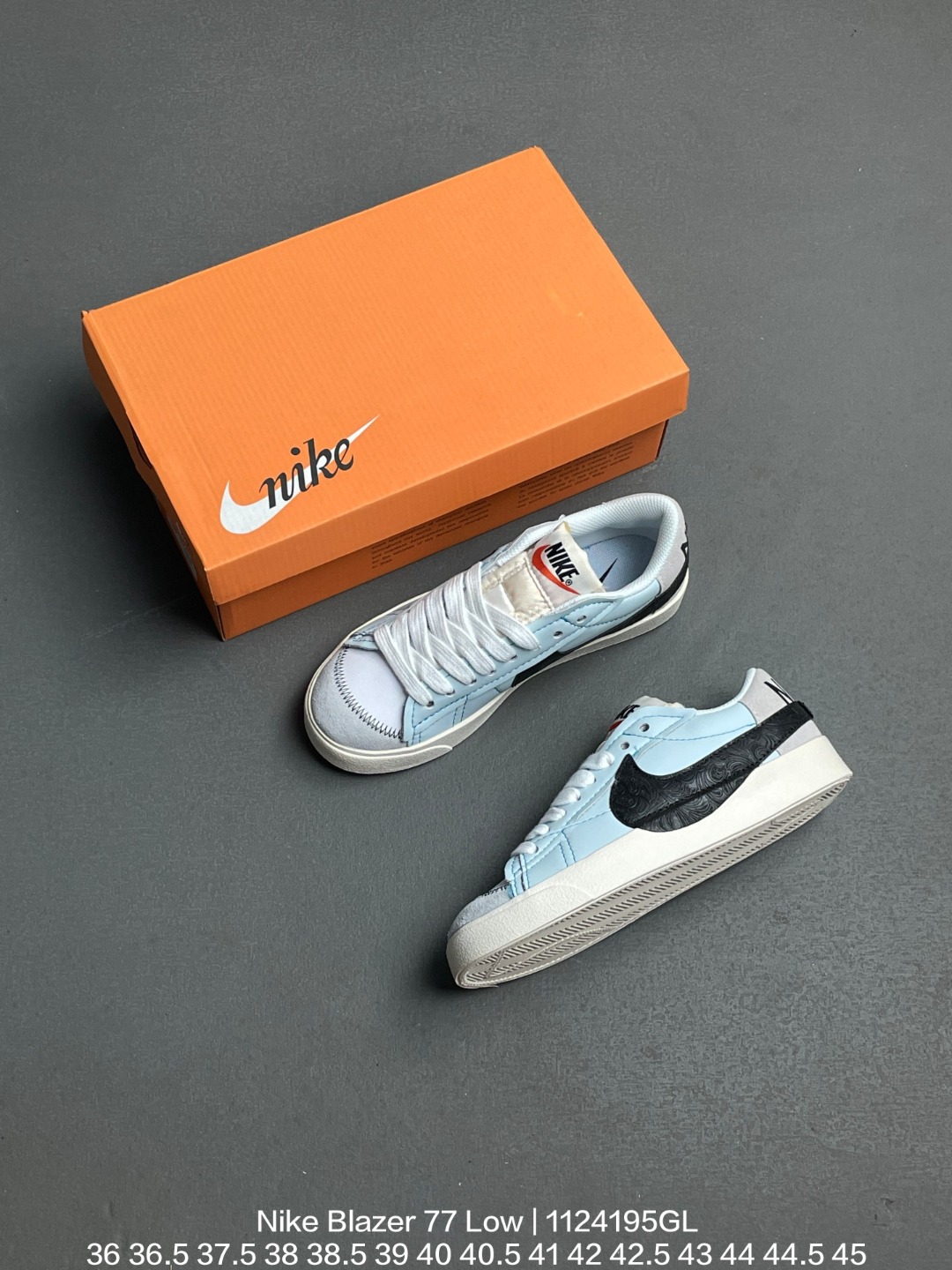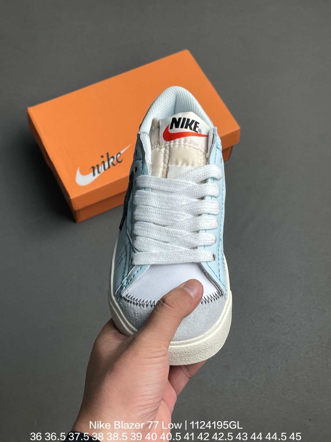 Nike 耐克 采用硬质牛剖皮革鞋面材质 搭配RB耐磨橡胶外底 韩国进口环保绿吸附性中底布革新创造灵感 耐克Nike Blazer 77 Low Jumbo White Lake Green 1977开拓者系列低帮百搭休闲运动篮球板鞋