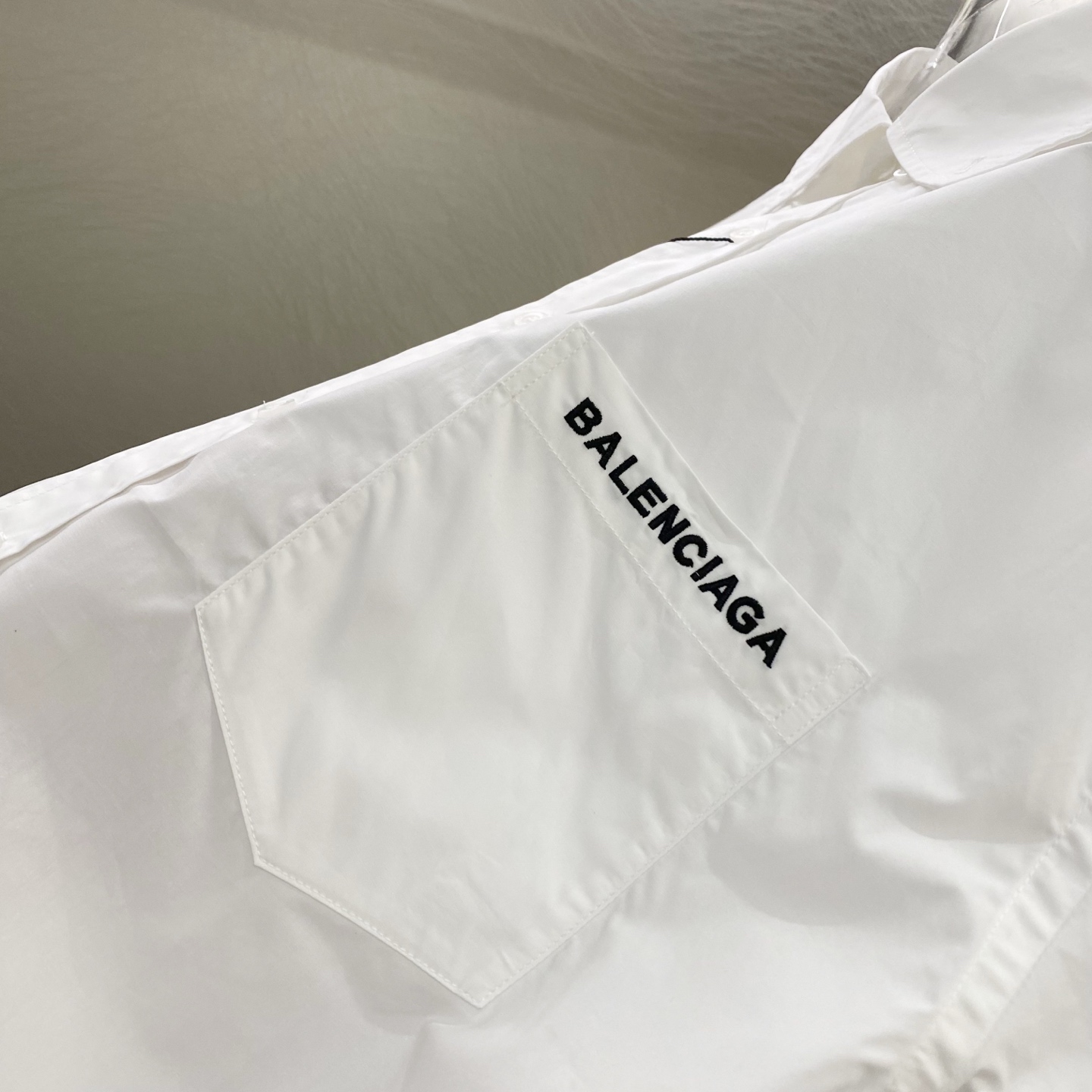 精选轻逸凝忆棉平纹料 进口百灵达刺绣工艺 精准控制系统和精密的机械部件实现Balenciaga刺绣 精度高 线条流畅而细腻 里侧全部包缝埋夹工艺 大厂出品 平顺工整无线头 纽扣开模订制 定制辅料 宽松版型