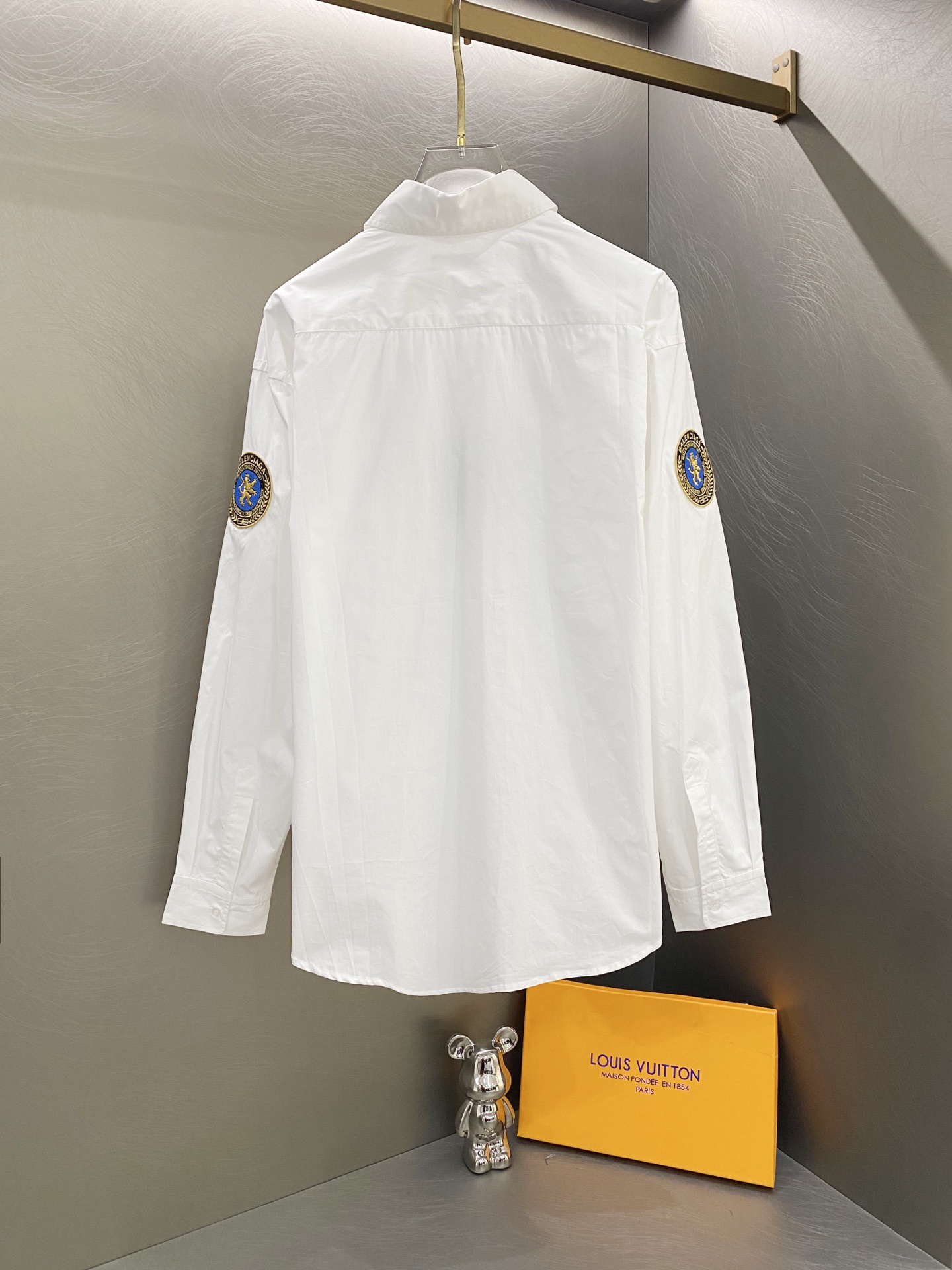 Balenciaga巴黎世家 FW25 狮子臂章徽标纯色刺绣Logo宽松长袖衬衫