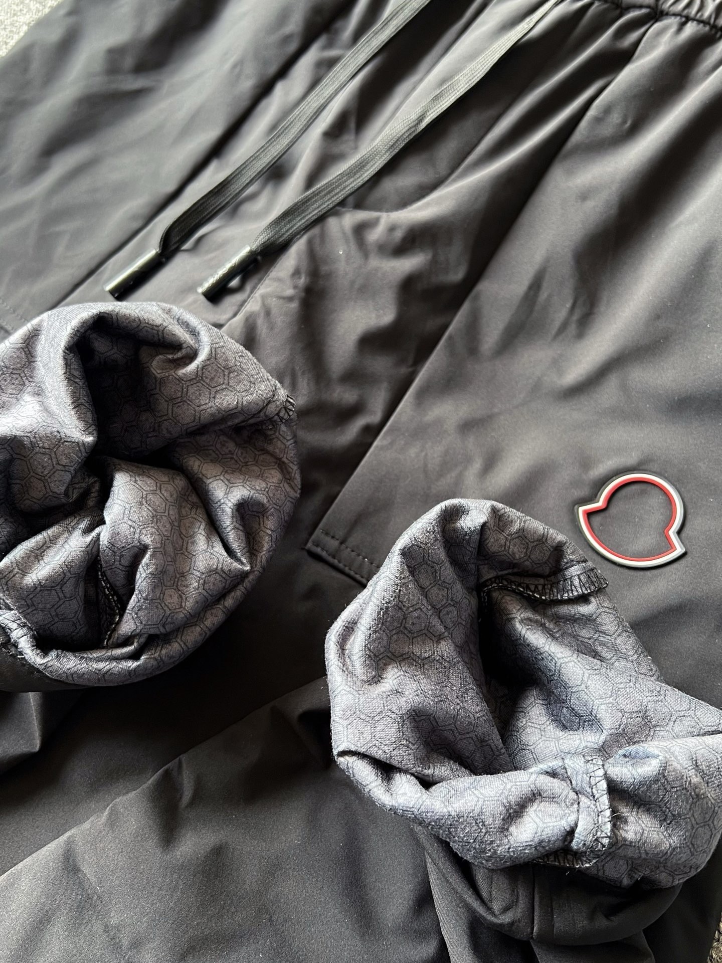 细节细节再细节 Moncler家商场新品白鸭绒羽绒长裤 裤前采用3D立体进口软质硅胶为原料 经过3次固色兰白红分开激光切割调色 十分精细 内胆层做了压胶锁绒工艺 使得整条裤子均匀保暖 内里包边双包条精湛做工