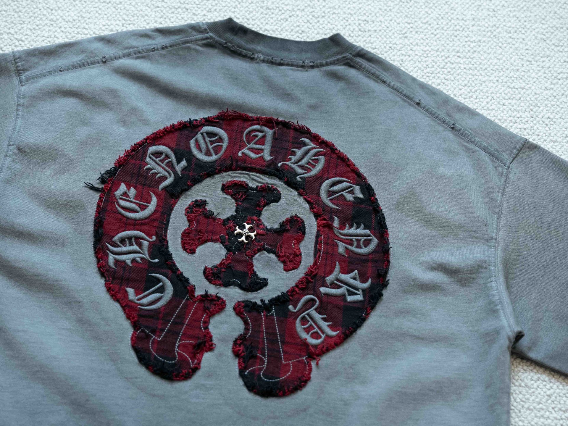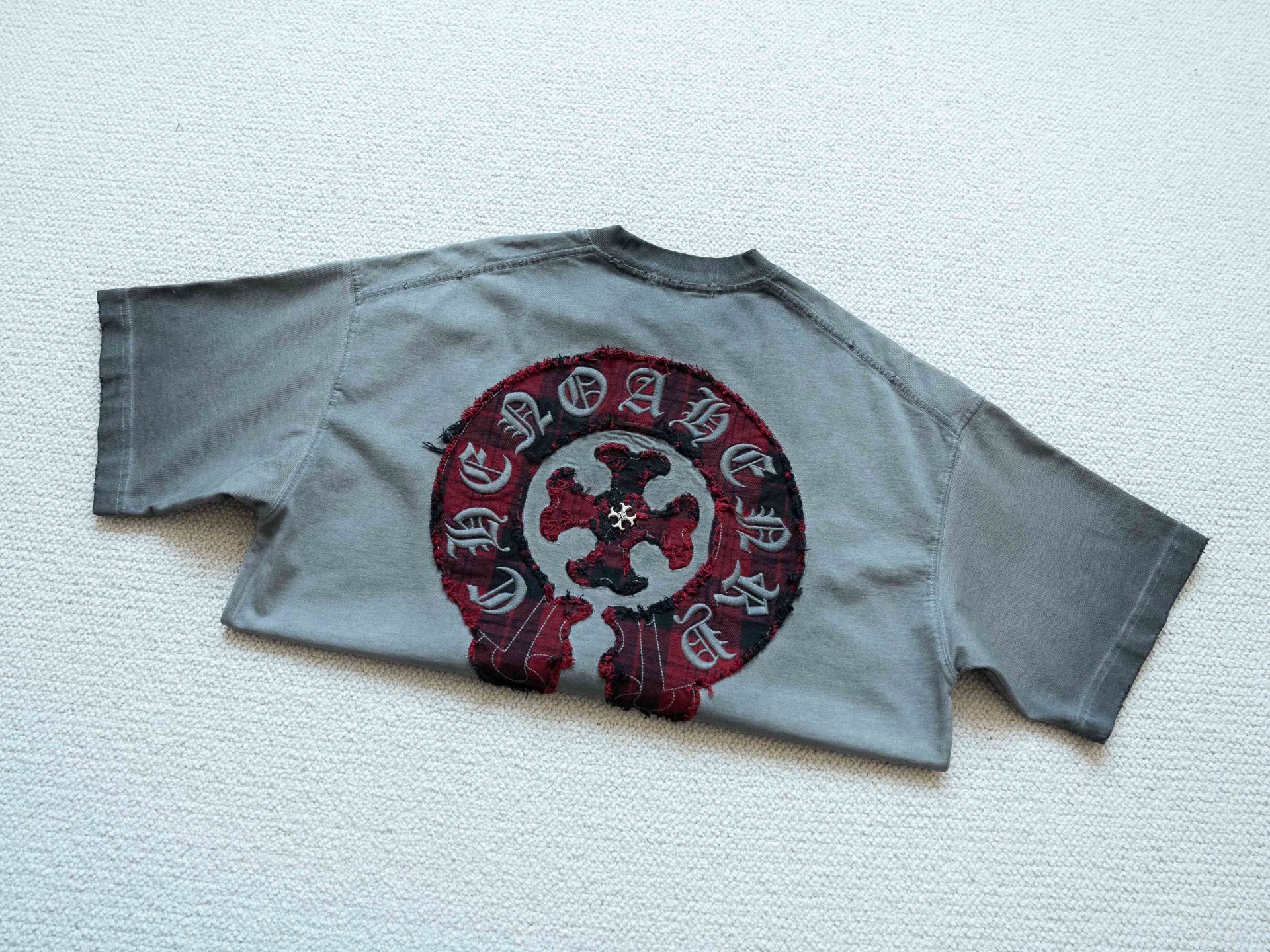 售后不停 顶级tee 强势上新 Chrome Hearts S s25 水洗格子马蹄贴布圆领短袖T恤 货号 5208