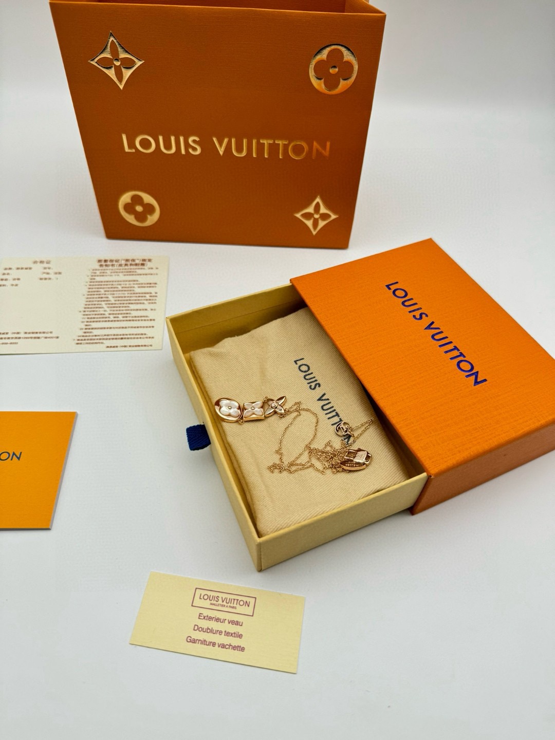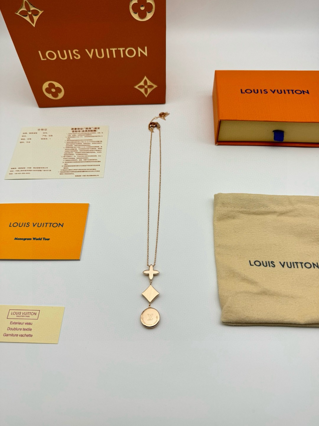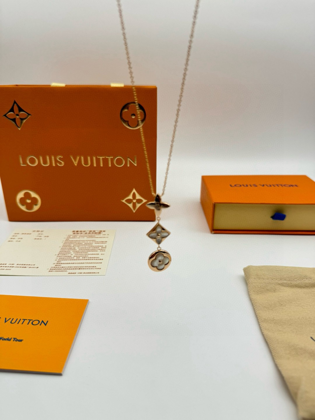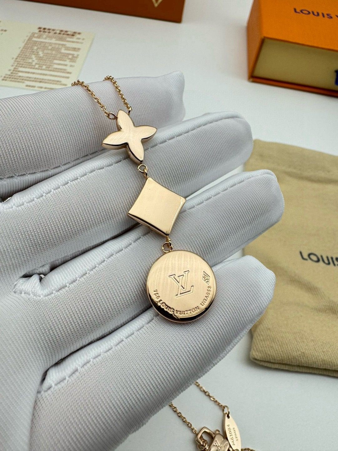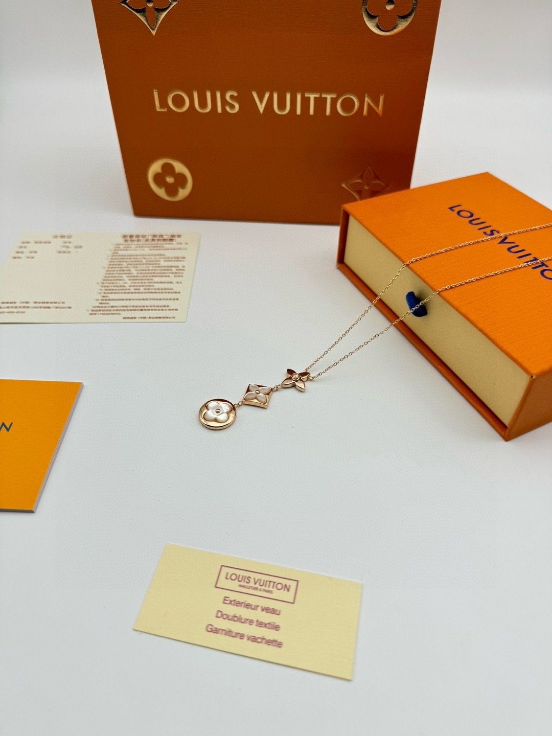 LV路易威登圆形菱形贝母项链 代购级别官网同步最高级别1 1 采用天然高档白贝母镶嵌精选德国进口钛钢材质电镀厚金 原版扣 尾牌 字印 这是由独特的花瓣朵结合成的手链 白贝母柔和的色调看着很是舒服 在自然光下更美 上手 效果特别好看 显白 仙气十足 颜色 玫瑰金 链长 48CM可调节