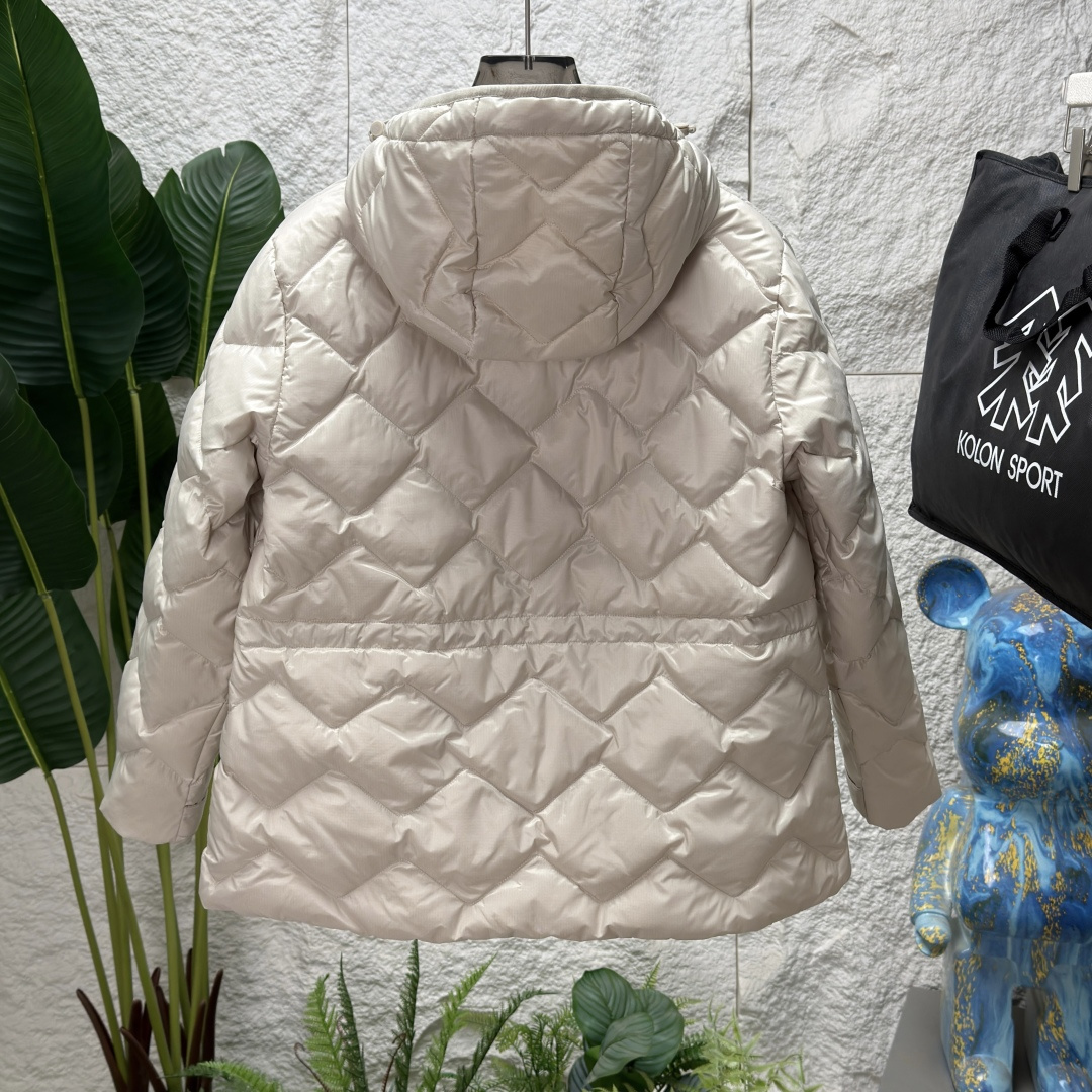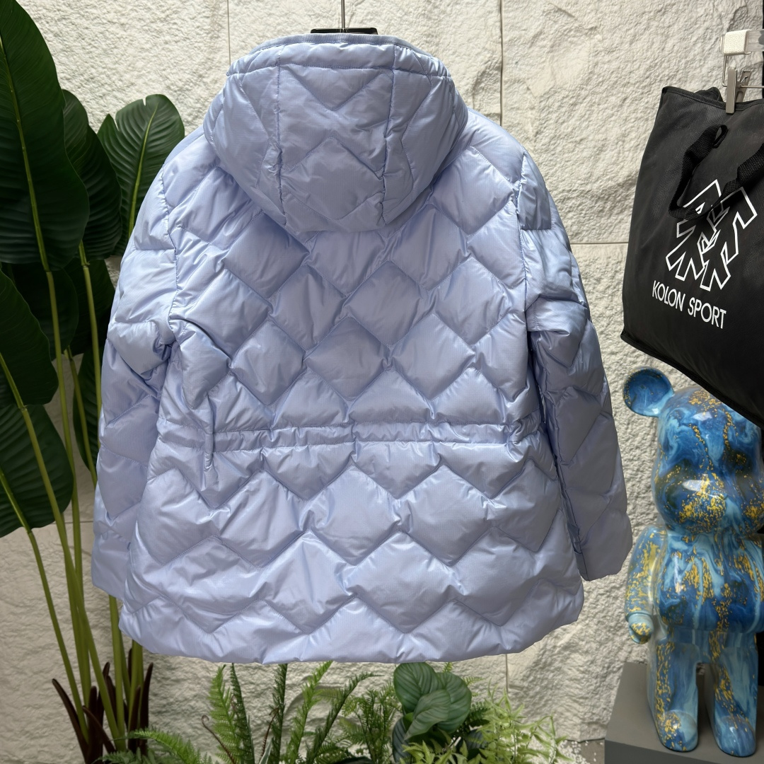 面料具有防风防泼水功能波浪纹设计是这款中长款连帽羽绒夹克的一大亮点