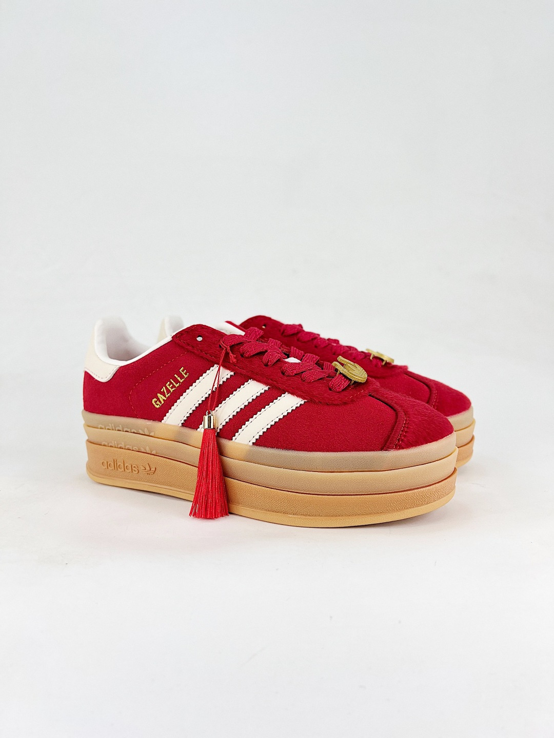 adidas originals GAZELLE CNY新年款 马年限定 经典运动 德训鞋 女款 红色羚羊松糕系列复古百搭厚底增高低帮休闲运动板鞋