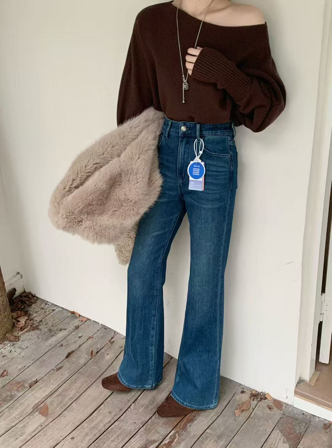 135180988 - 四面弹高腰显瘦加绒微喇牛仔裤女秋冬2025新款裤子修身显瘦喇 393594