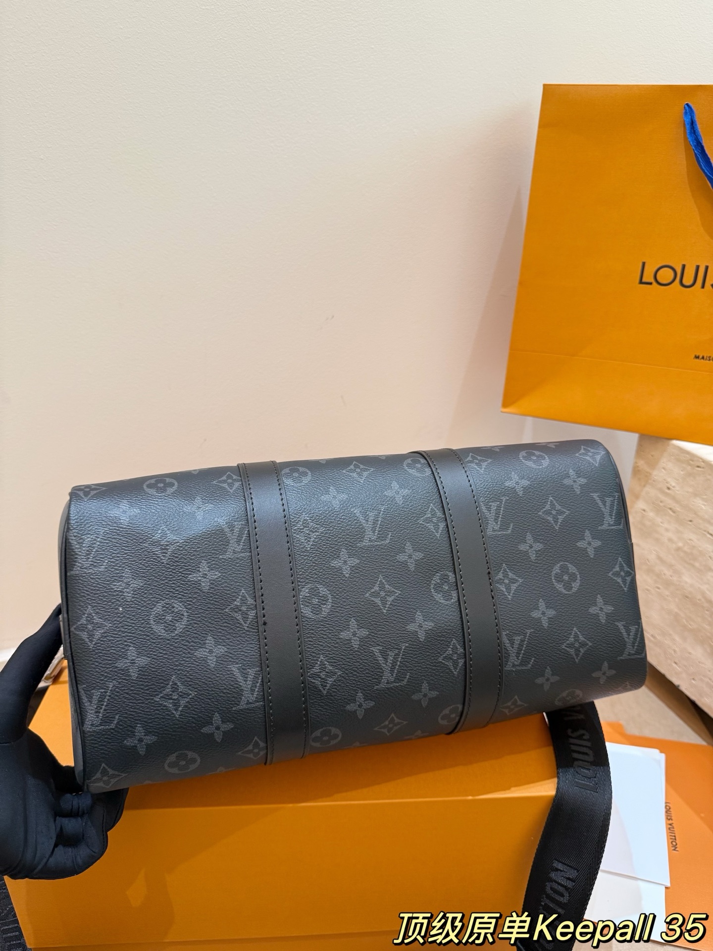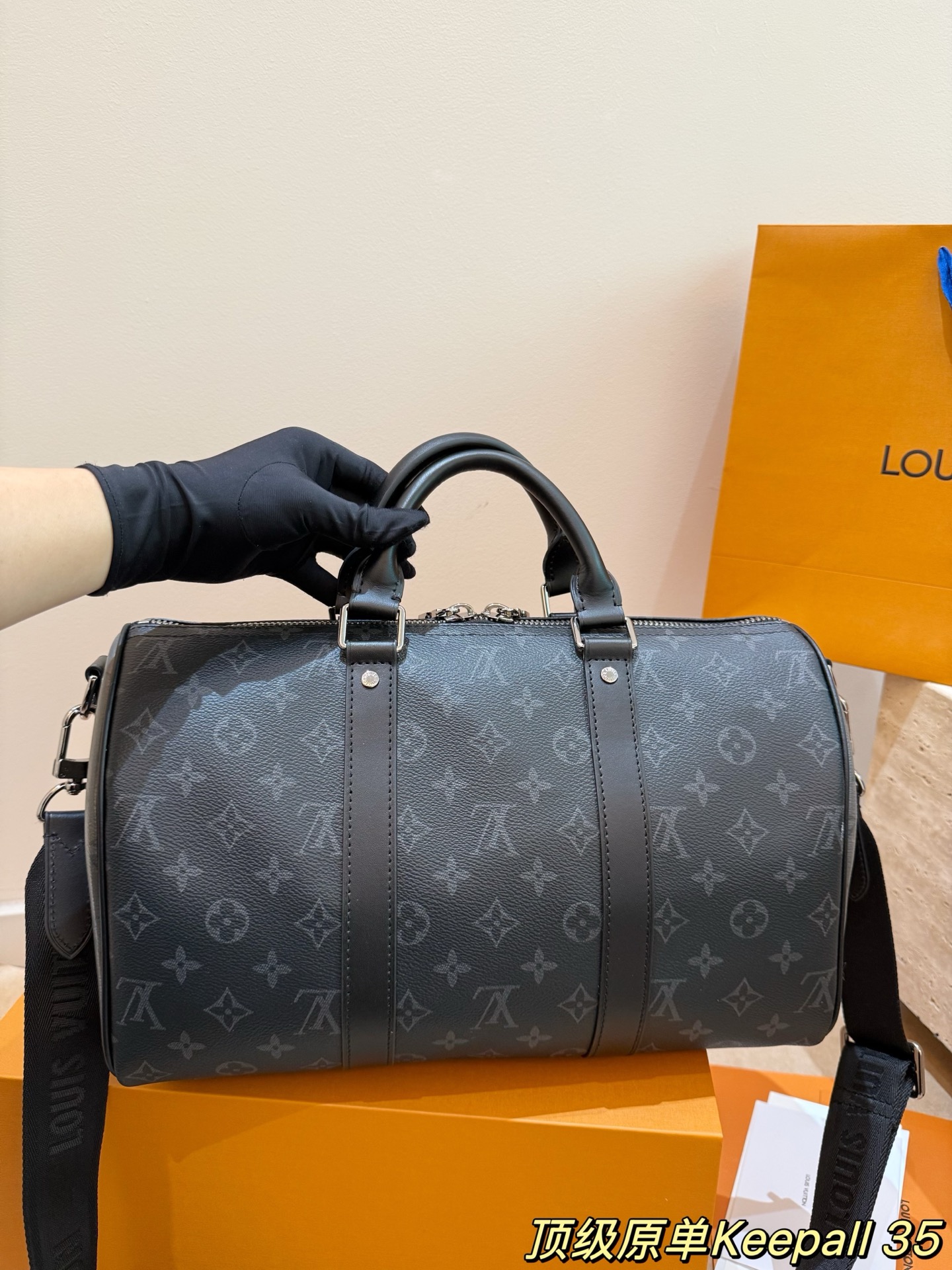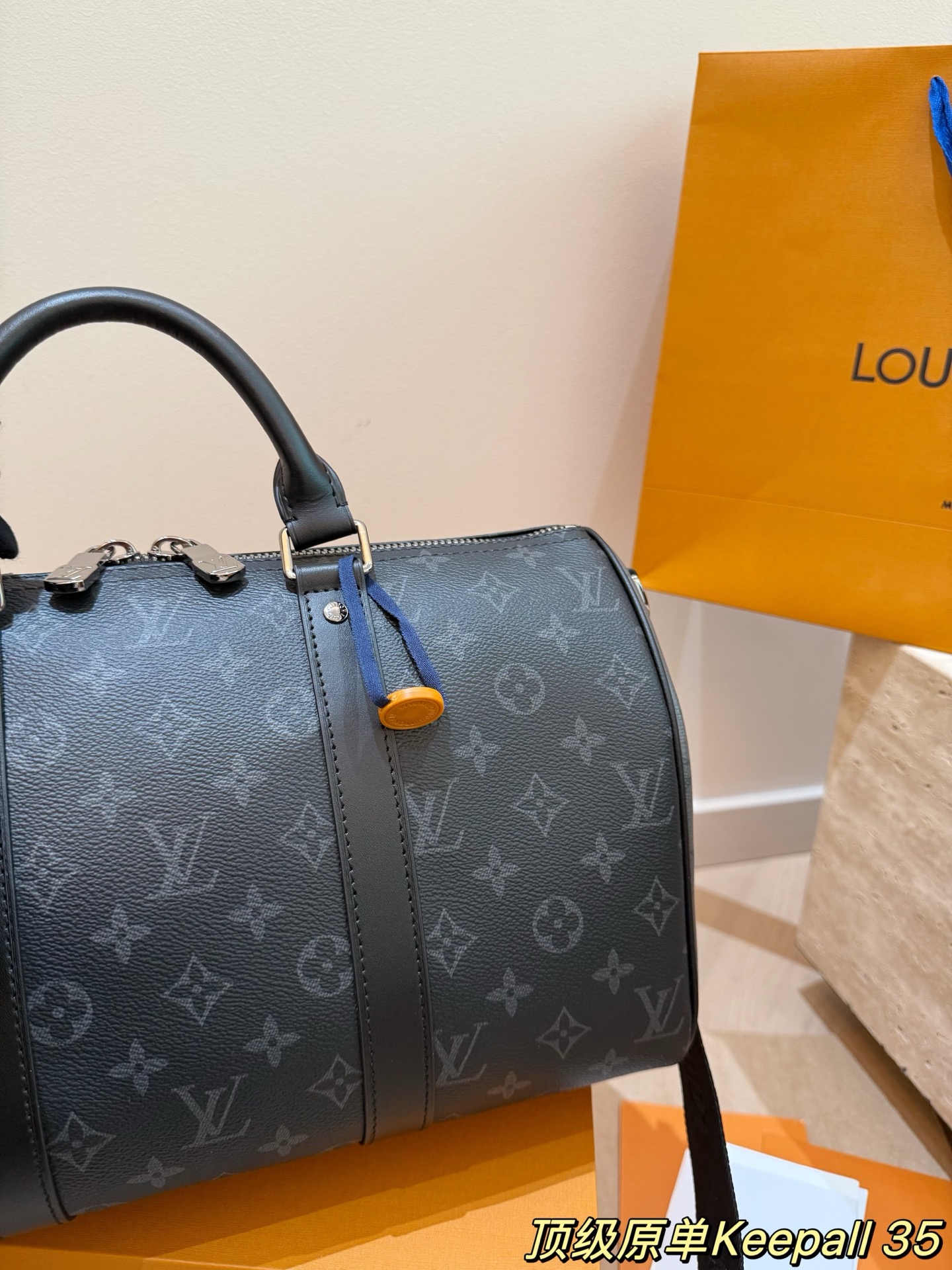 keepall35是全新的尺寸容量非常的nice 健身男孩女孩必备单品之一里 可以放下水壶和一套速干运动服 更日常 男生国女生临都可以轻松驾驭 配色有经典的黑武士配色牛皮材质