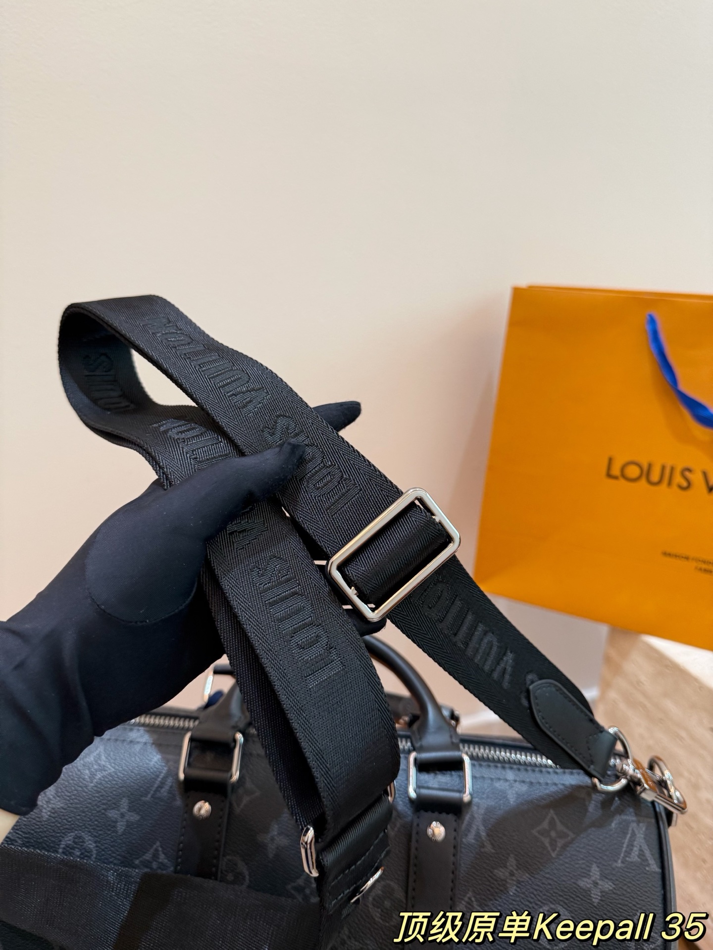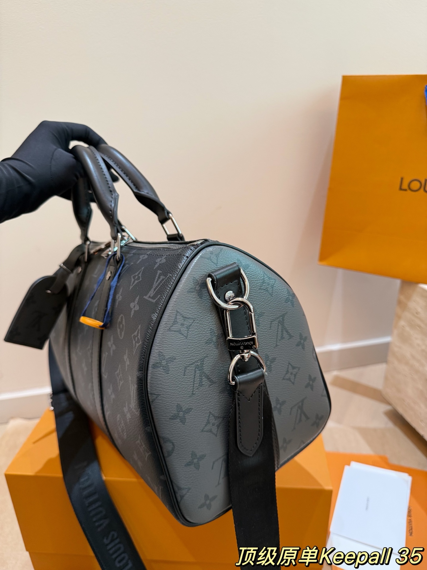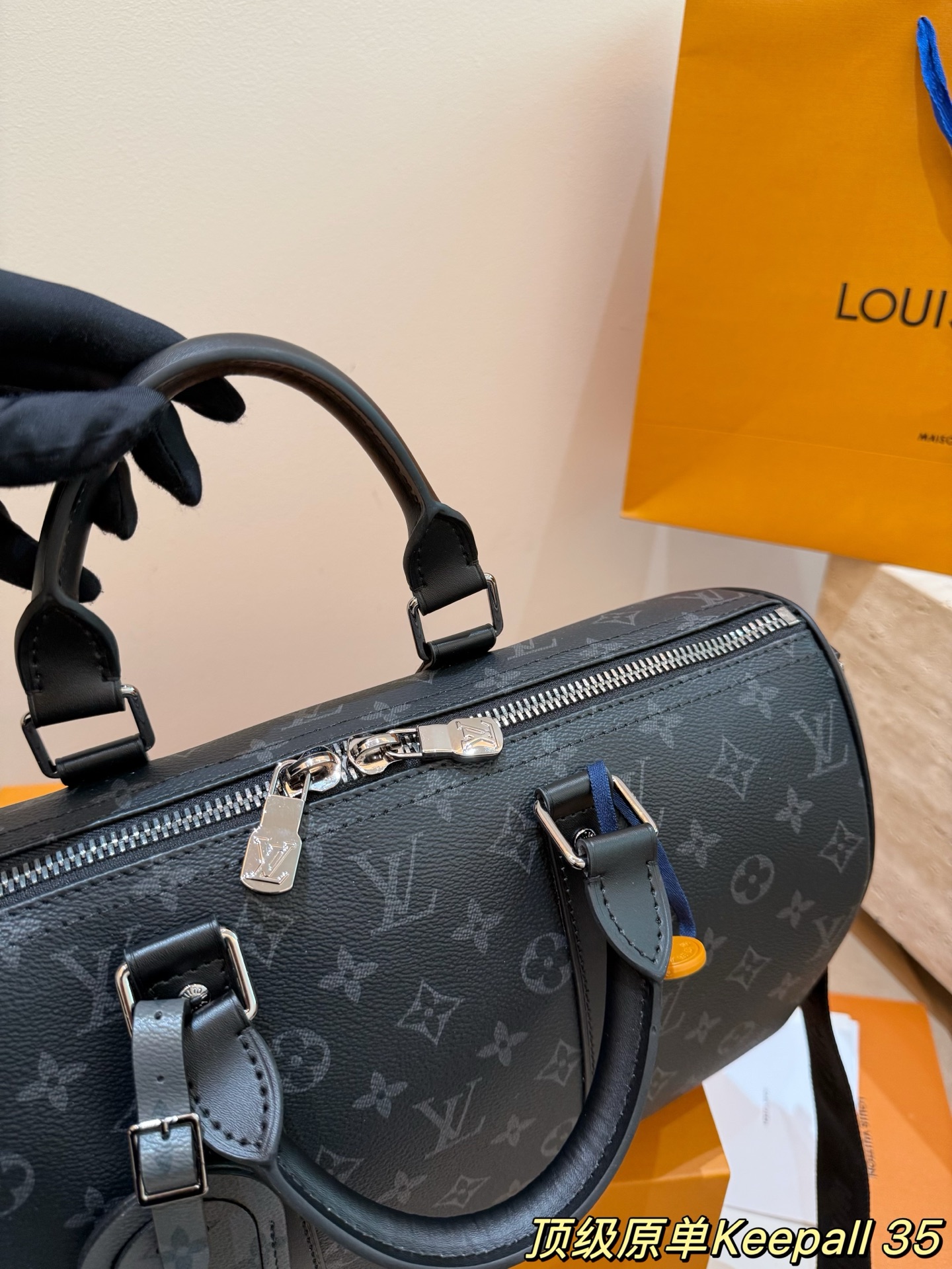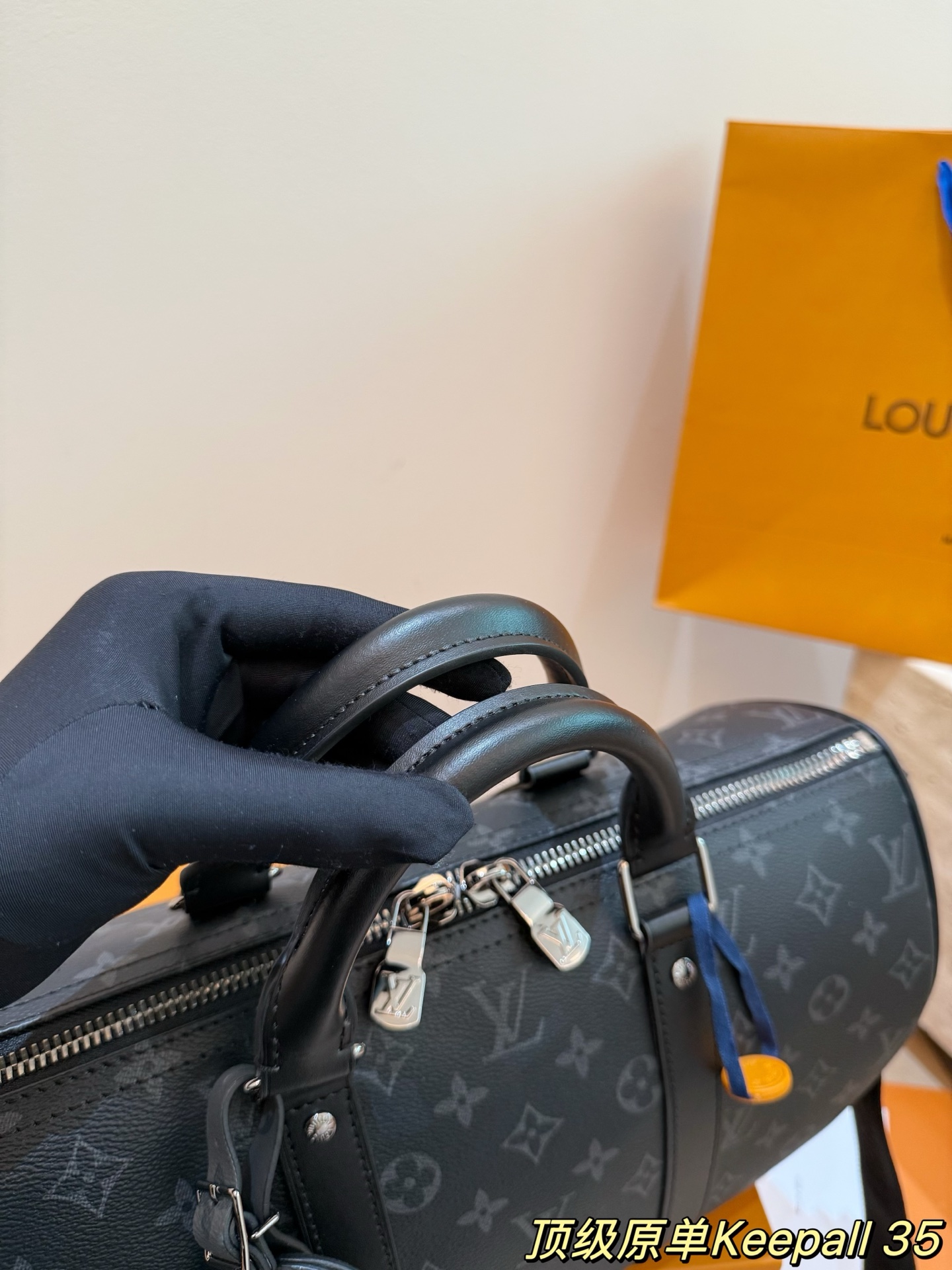 keepall35是全新的尺寸容量非常的nice 健身男孩女孩必备单品之一里 可以放下水壶和一套速干运动服 更日常 男生国女生临都可以轻松驾驭 配色有经典的黑武士配色牛皮材质