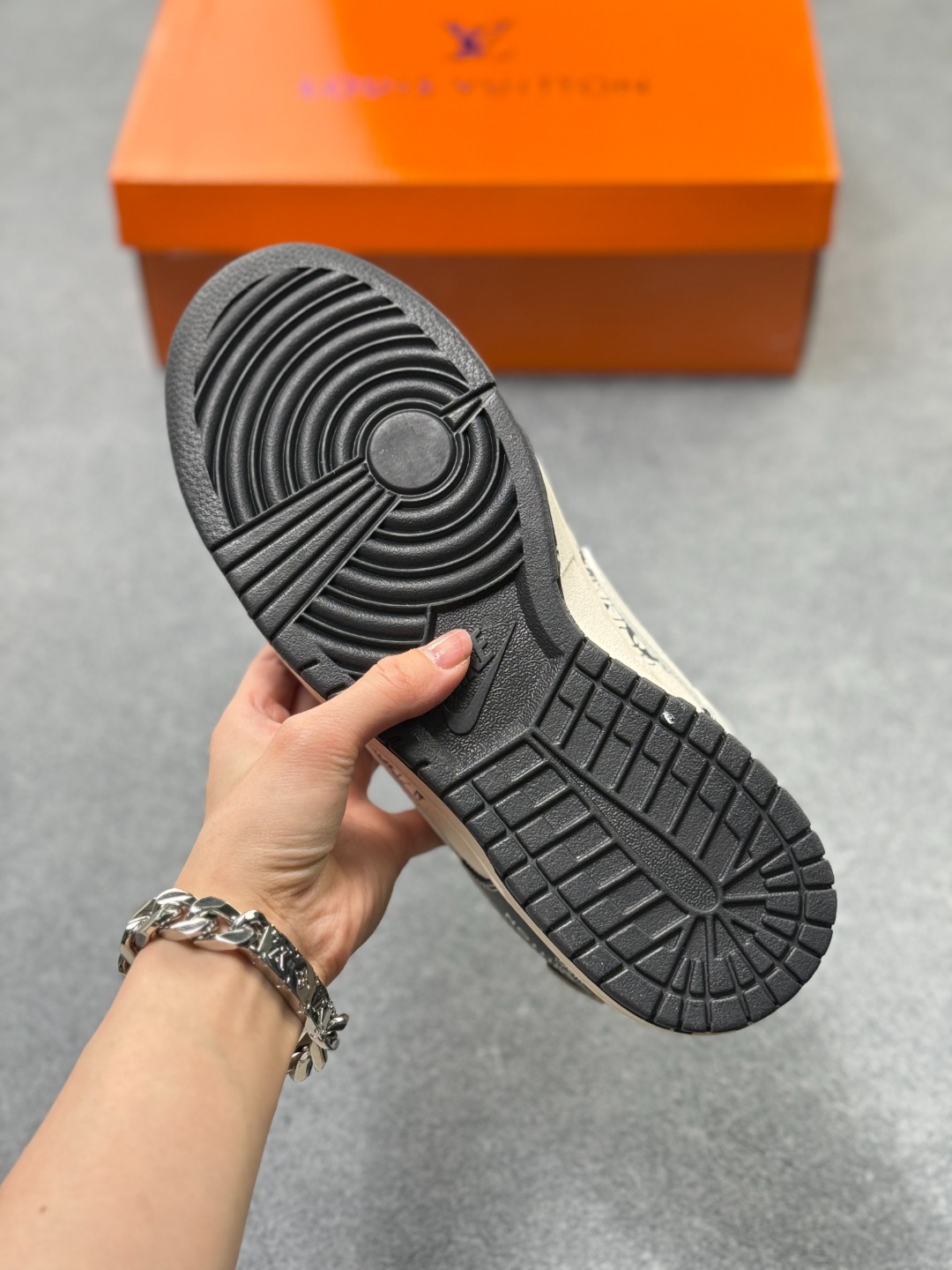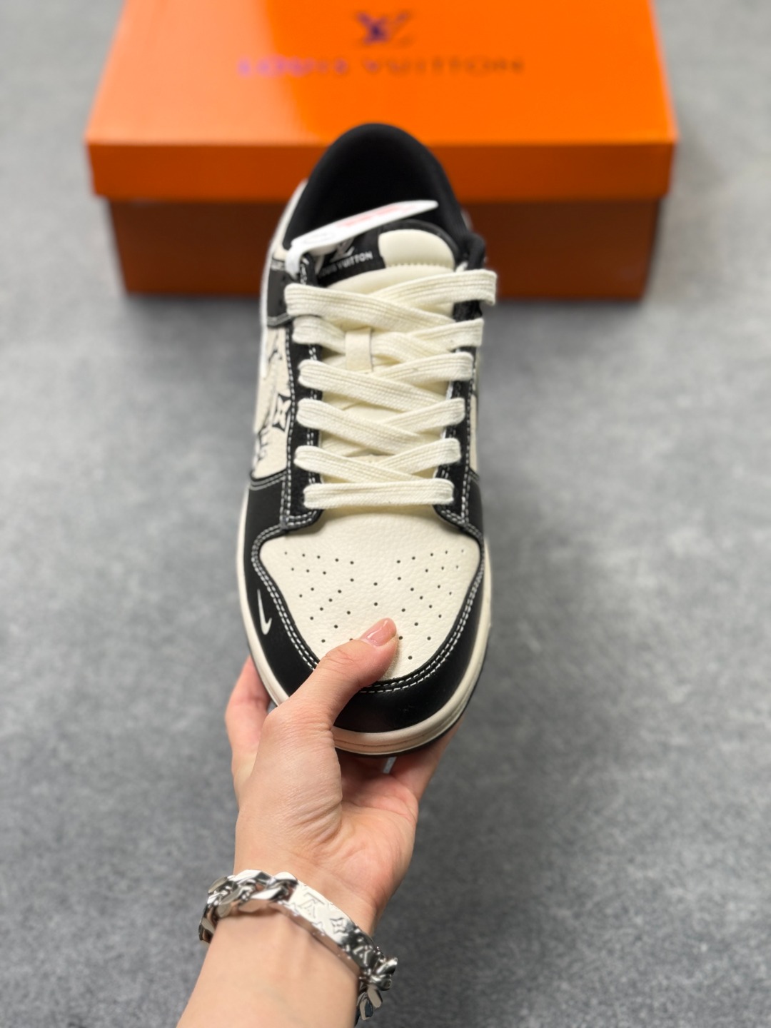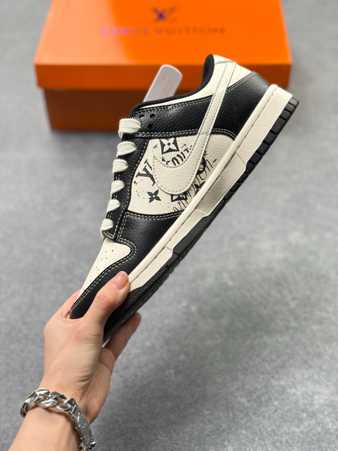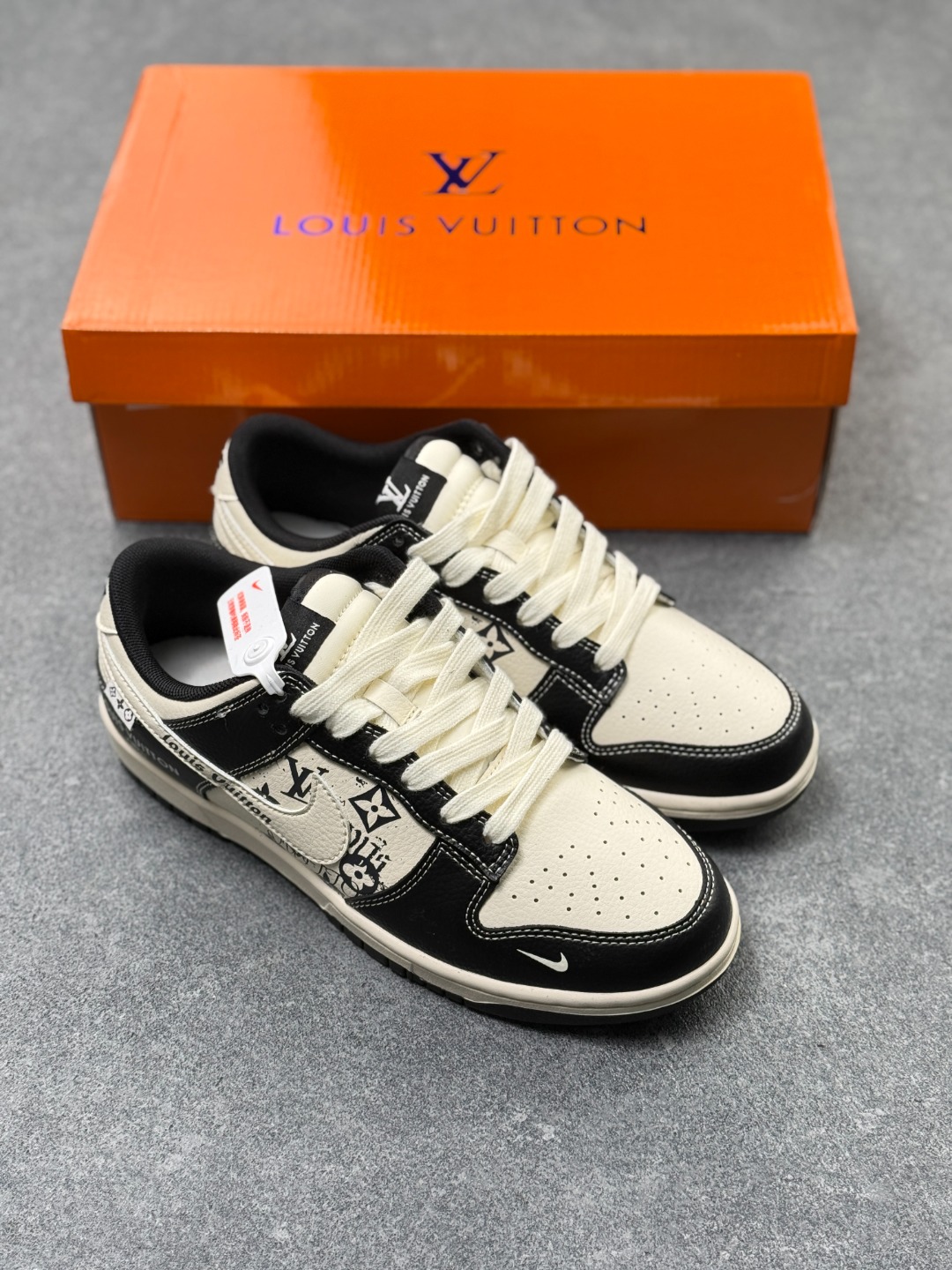 Nike Dunk LV联名 全套原楦原模倾力打造完美版型 独家原厂航空铝磨具打磨大底 鞋头坡度极致还原 无解鞋型 原盒原配 圈内天花板工艺 原厂冲刀 超高清洁度 全鞋零毛边皮料切割