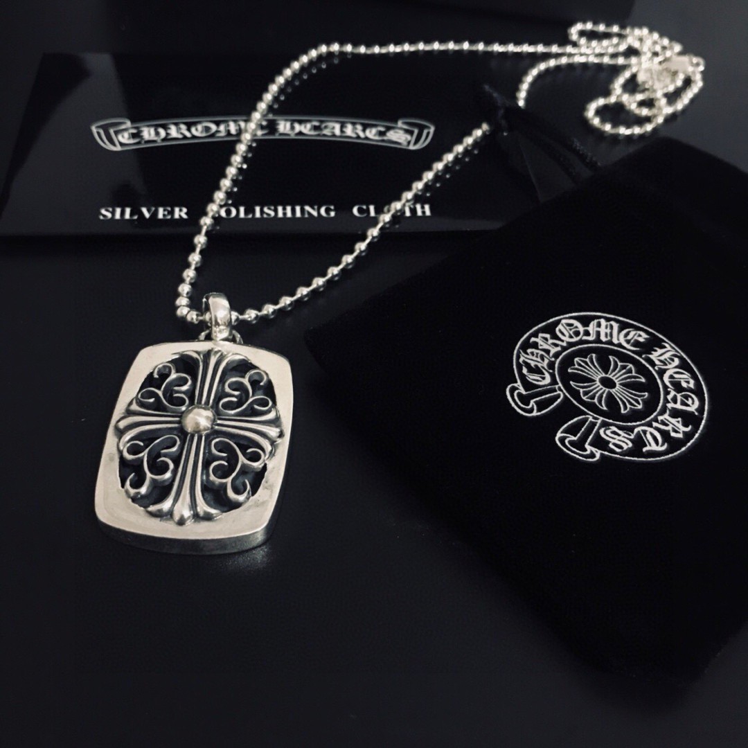 Chrome Hearts克罗心十字架宫廷花方块吊坠项链 配全套包装