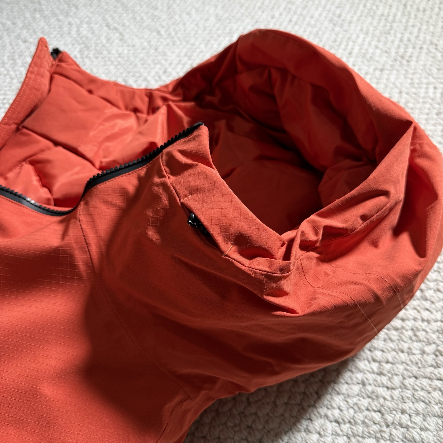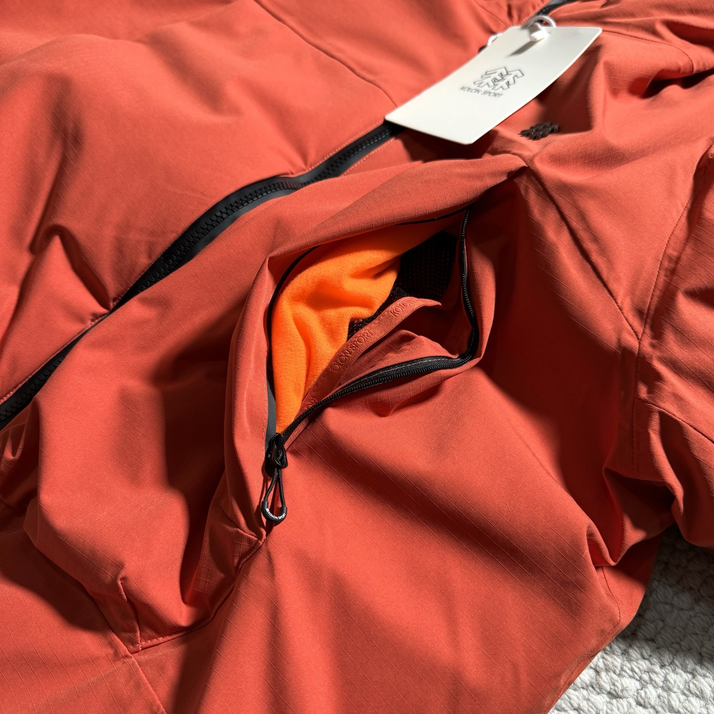 特种面料为三层复合面料冲锋衣内里 适合寒冬上身驾驭 原厂跟单品质 日本第一织物品定织面料 客供压胶条 门襟处配有透气拉链 内里单侧配拉链口袋