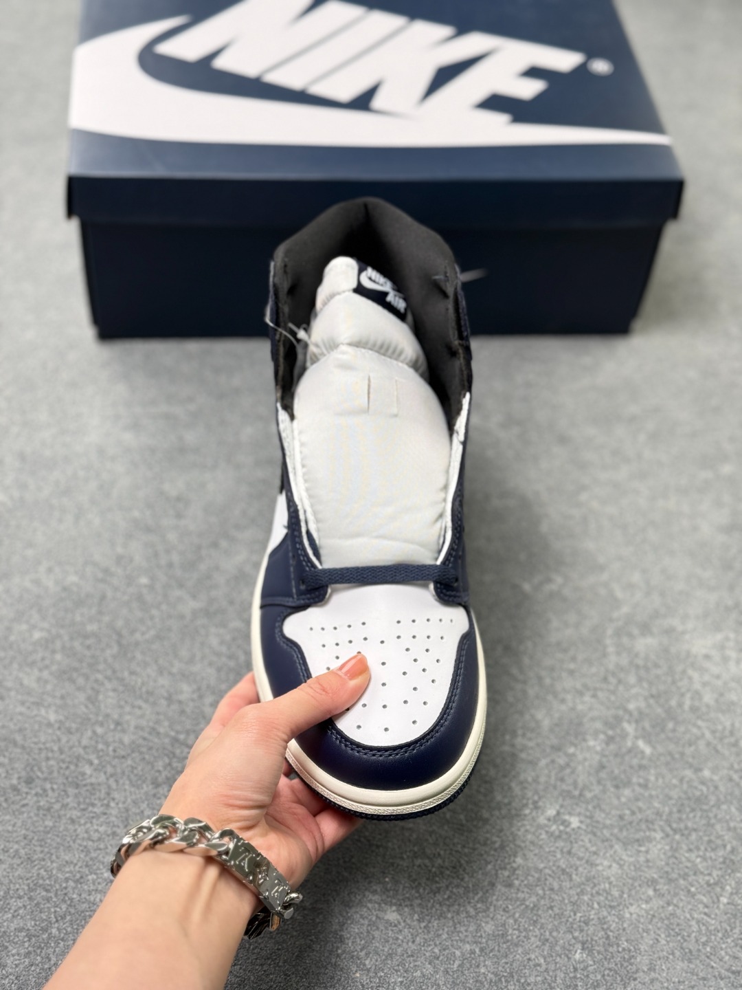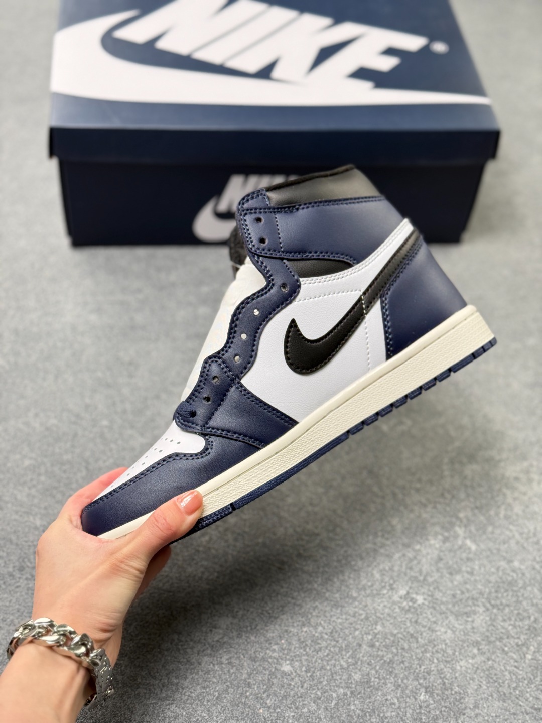 Air Jordan 1 High OG Midnight Navy AJ1 乔1午夜海军蓝 DZ5485 401 配色采用午夜海军蓝 黑色 白色和水手色配色 灵感来自标志性 芝加哥 配色方案 具有独特的转折点 用海军蓝取代传统的红色 采用透气的全皮革结构 鞋舌和内衬融入透气孔和网眼布元素 可以带来更舒适的穿着体验