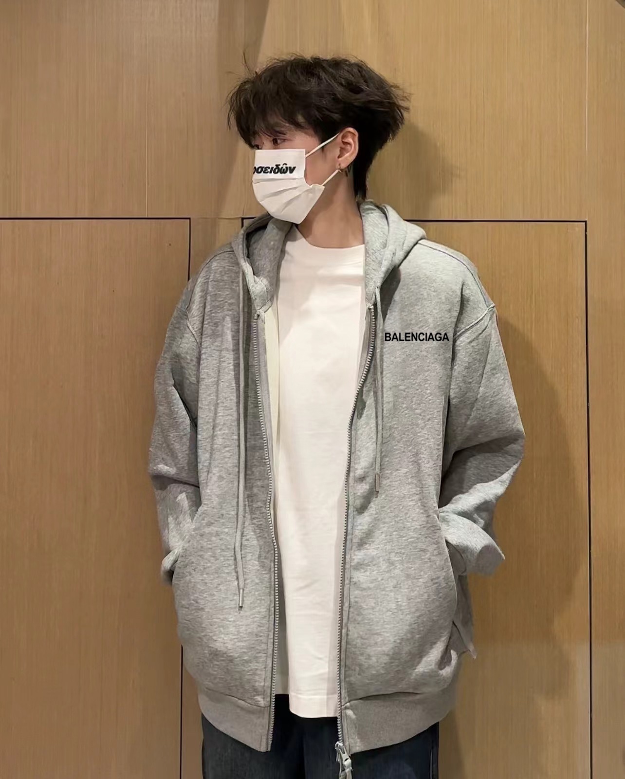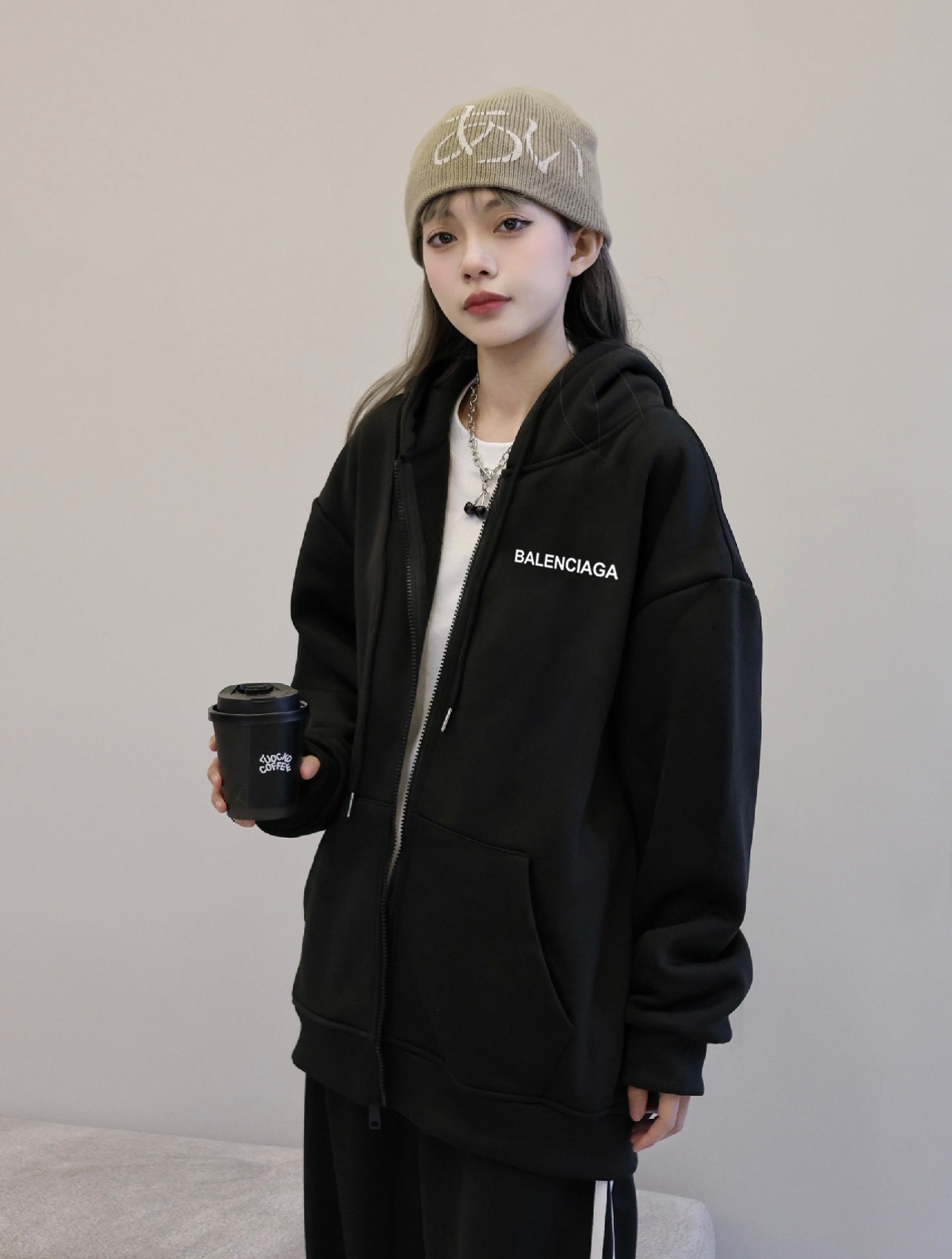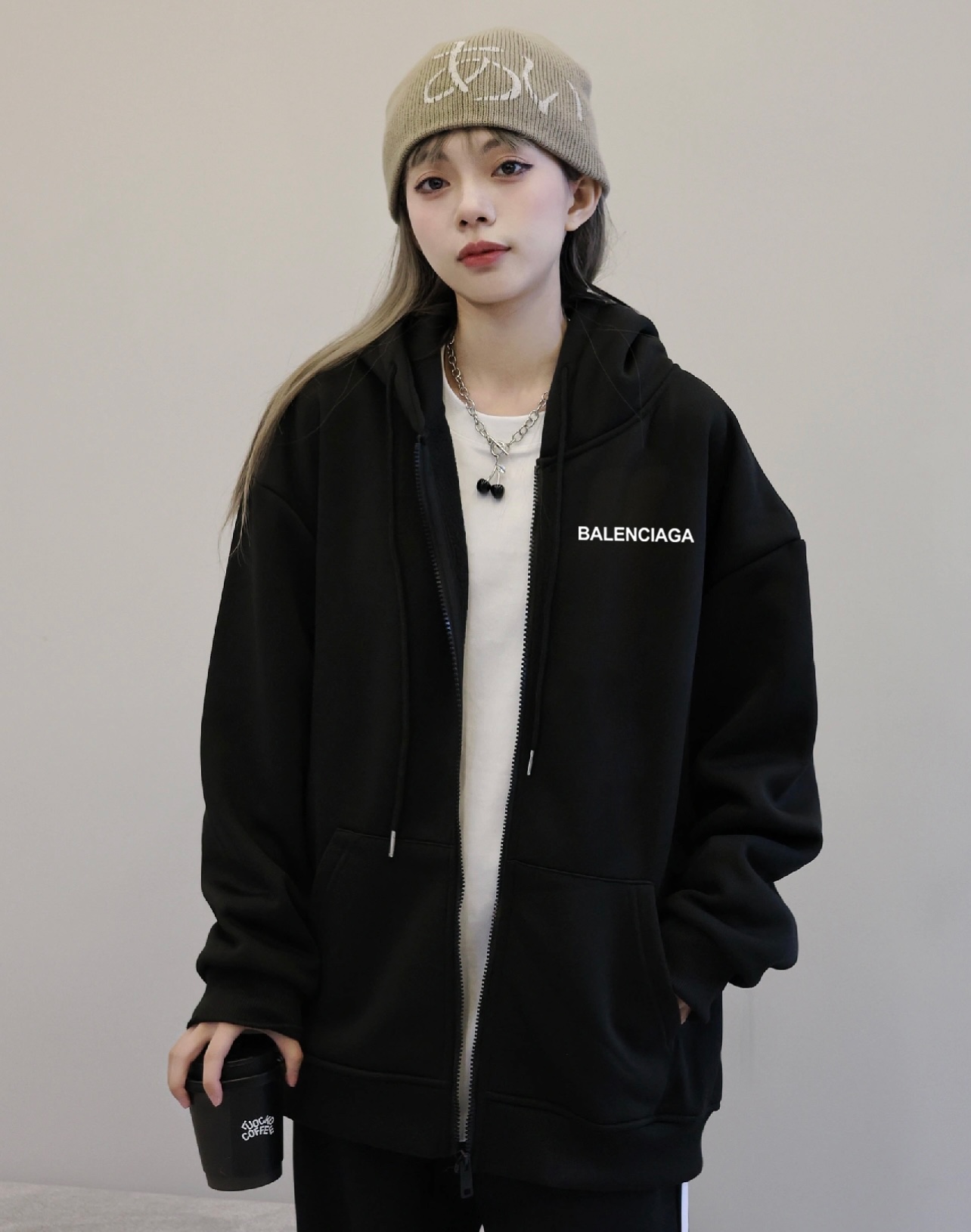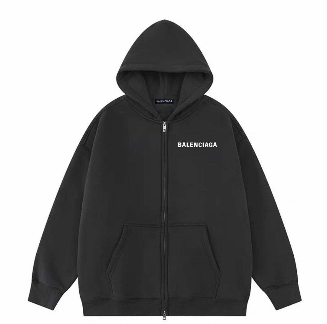 Balenciaga巴黎世家经典小标冬季加绒加厚开衫拉链连帽卫衣外套
