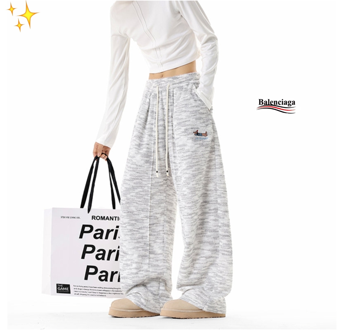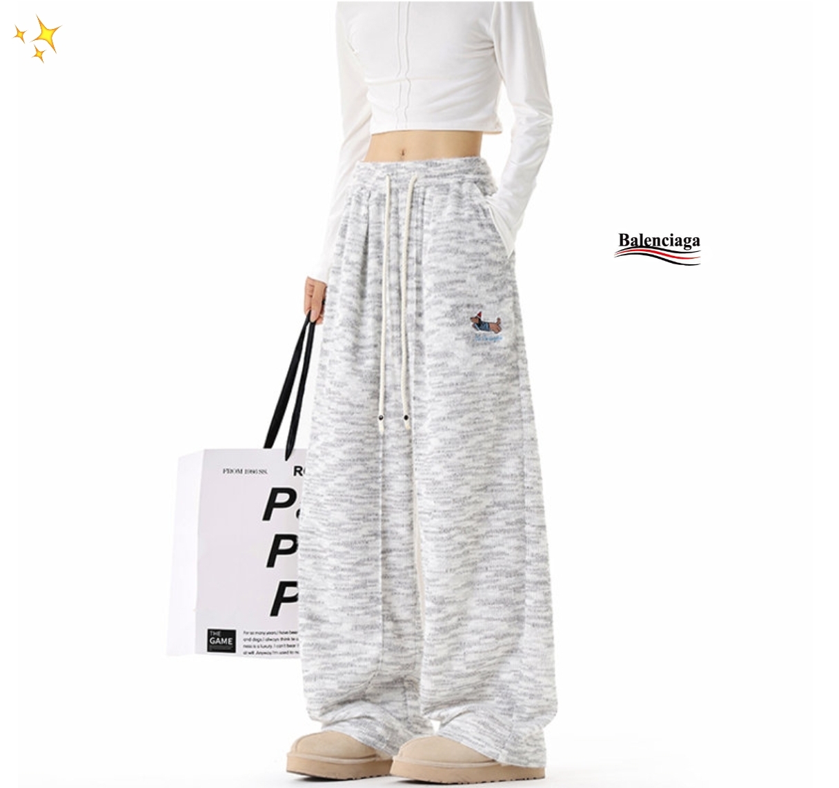 巴黎世家balenciaga腊肠狗高克重刺绣腊肠狗大码休闲糯米裤 男女同款 ins小红书超多网红博主上身穿搭 男女同款百搭情侣款 面料采用300克高克重 主打慵懒感氛围感 高弹力松紧腰 简约同时又不失设计感 重点是它还不显胯宽 垂感指数慢慢 糯叽叽的糯米裤 出街不撞衫 颜色 灰色 尺码 M 4XL