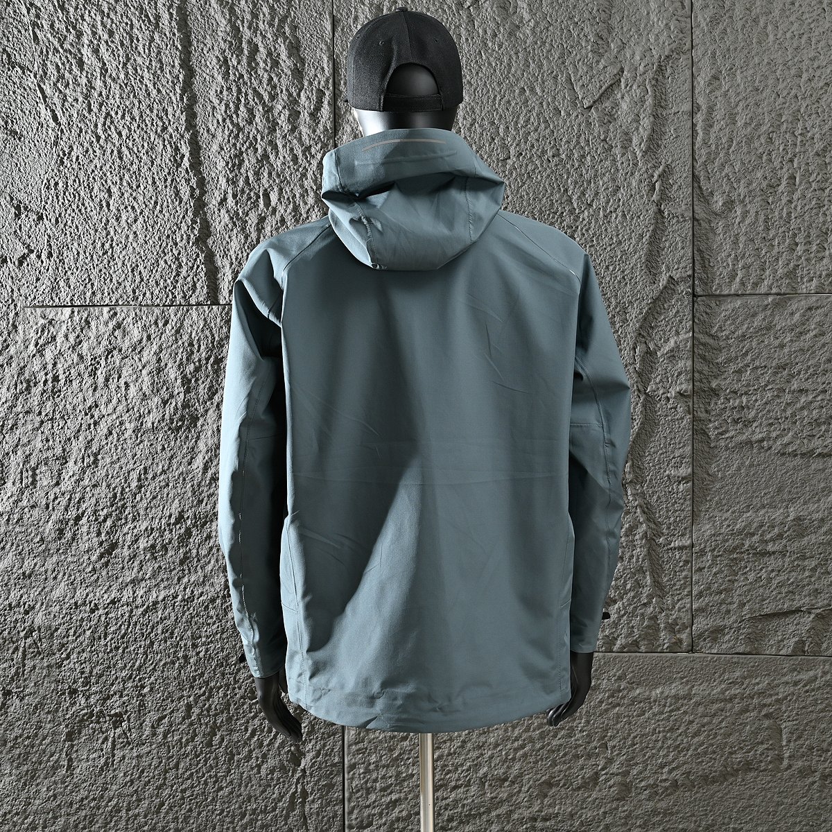 连帽三纵立裁不可拆卸 帽檐延伸弧形 前领加高 三面挡风防雨