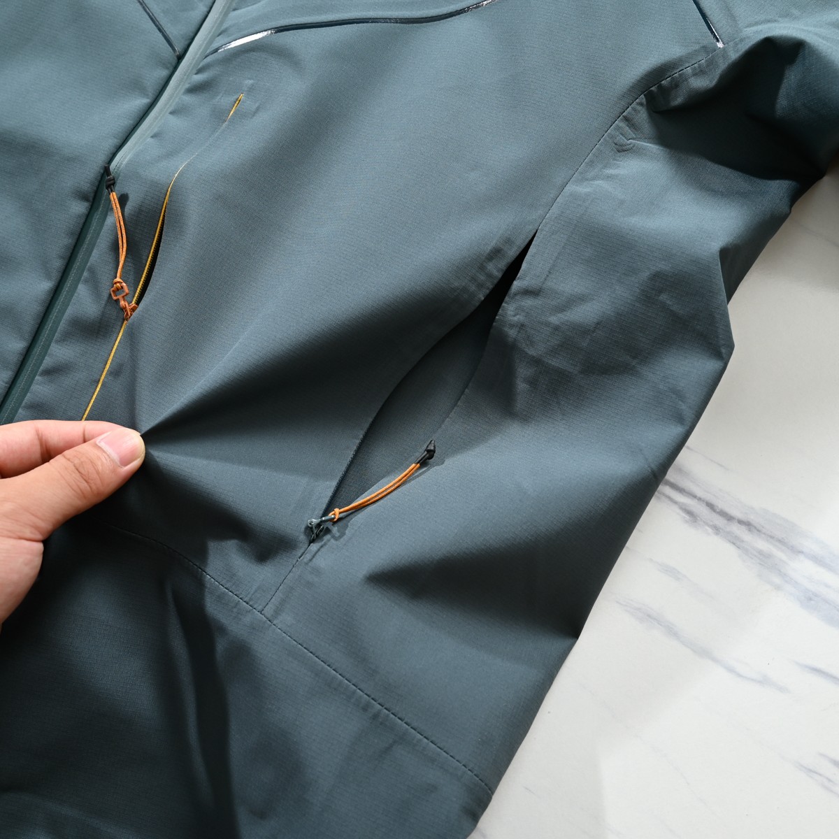 宽松版型 采用梭织面料 经过防泼水处理 提户外防护功能