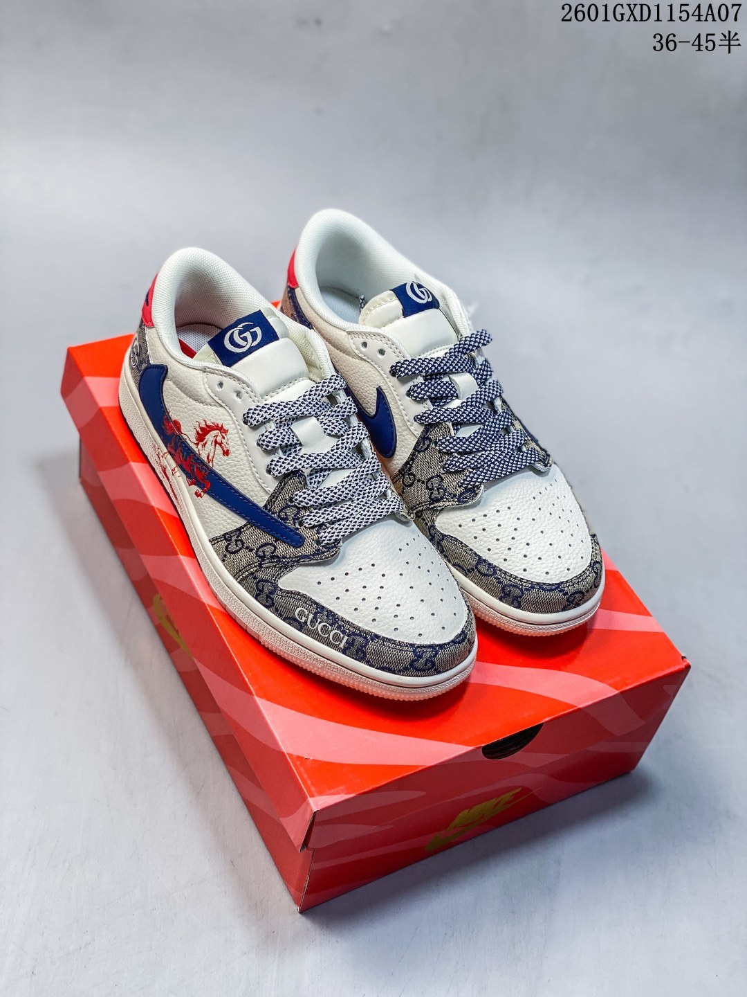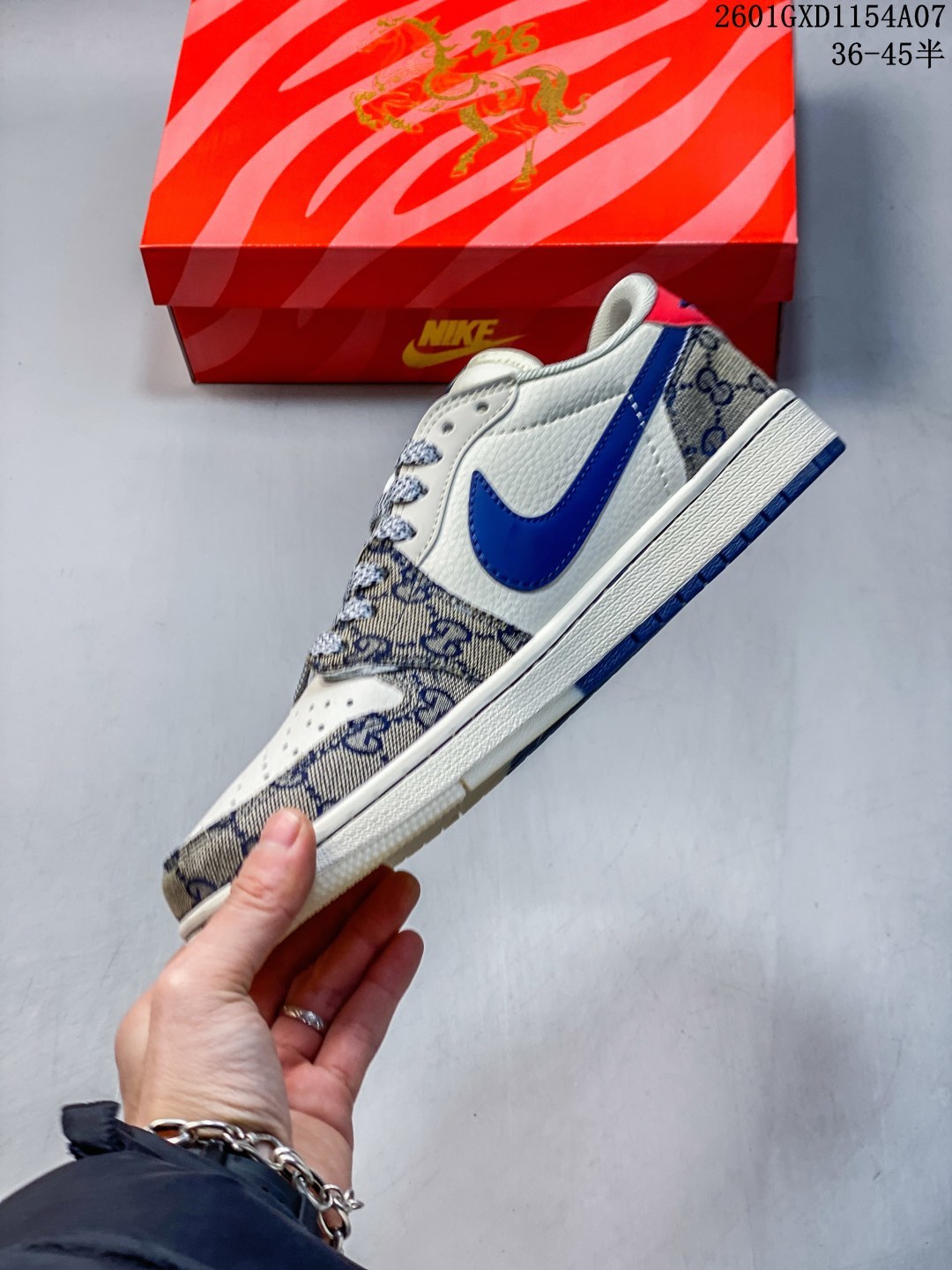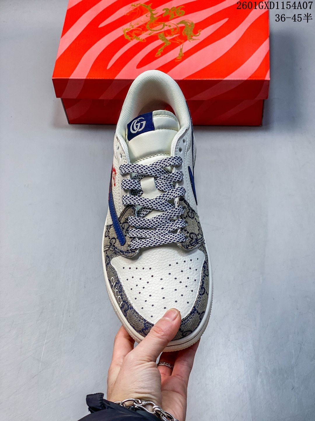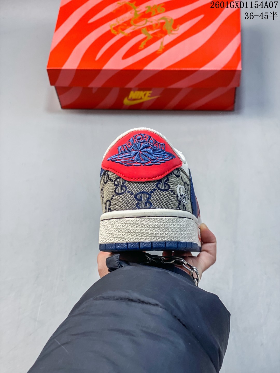 马年炸裂来袭 Air Jordan 1 经典AJ1低帮鞋型碰撞Gucci老花拼接 复古奢潮风瞬间拉满 鞋身红马涂鸦呼应2026马年主题 红蓝撞色搭配亮眼红绸配饰更具视觉张力 敲定稀缺属性 头层牛皮与老花面料拼接兼顾质感与个性 小众定制款彻底告别撞款 不管是收藏摆柜还是街头炸街 都是潮咖彰显品味的不二之选
