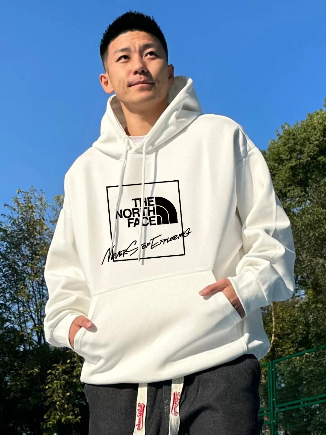 北面TNF官网同步最新款胸前大logo正方框印花男女情侣同款连帽卫衣