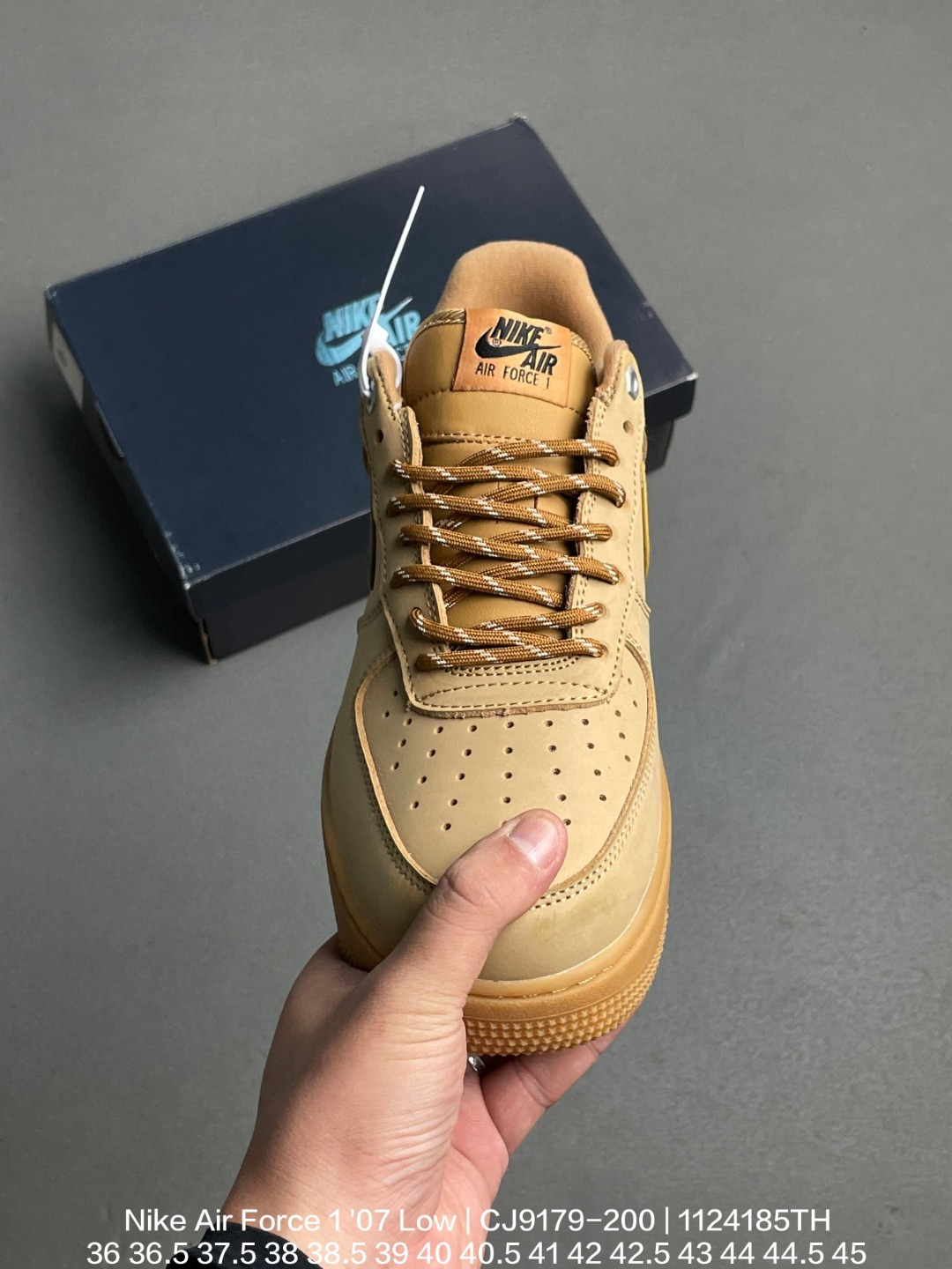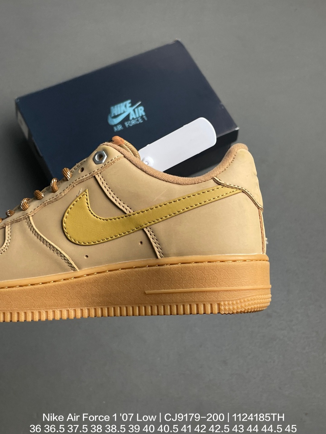 Nike 耐克 原楦原纸版数据开发 采用硬质粒面头层皮革材质 官方全新配色耐克Nike Air Force 1 07 Low空军一号经典百搭休闲运动板鞋 小麦系列 CJ9179 200