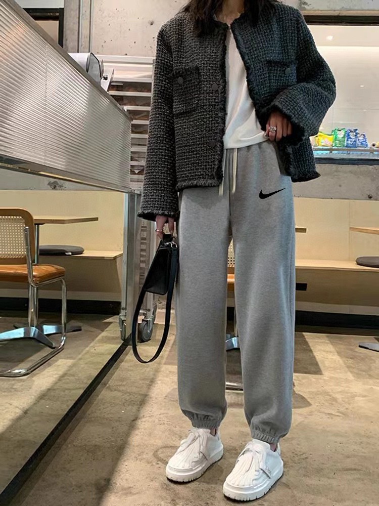 Nike耐克经典小钩百搭宽松冬季加绒加厚卫裤束脚裤休闲裤