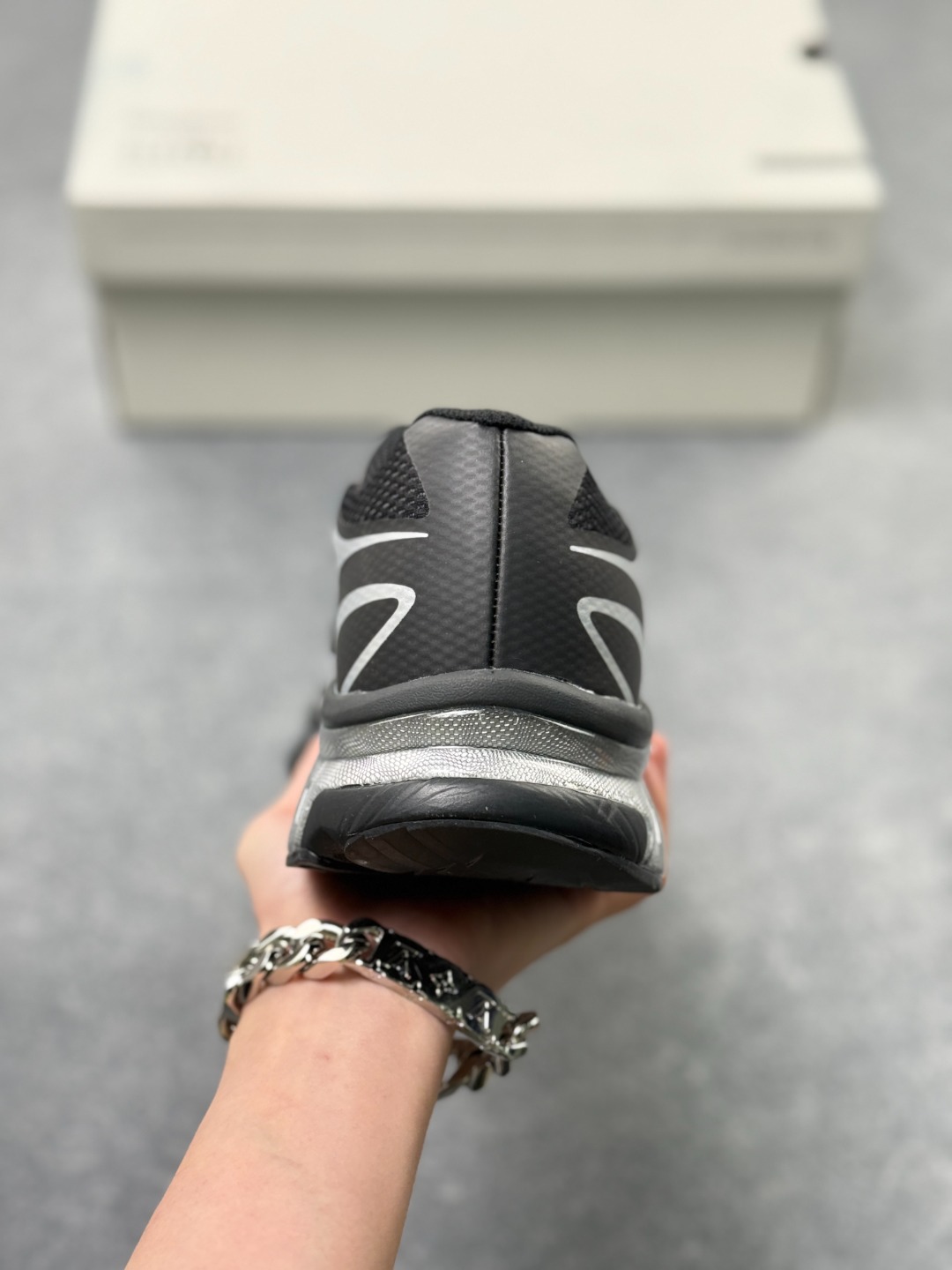 Margiela 与 SALOMON 合作的2025春夏系列鞋款 以公路跑鞋Spectur 2为基础 鞋面采用大孔网眼材质搭配同色系压胶与裁片 鞋侧有双方品牌标识 材质涵盖聚酯纤维 聚氨酯 橡胶等 它搭载全长碳纤维板 Energy Blade 与 Energy Foam缓震系统 后掌加厚加宽 兼具推进力 缓震回弹与稳定性