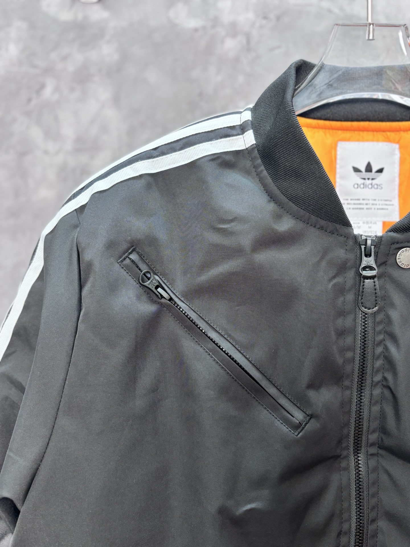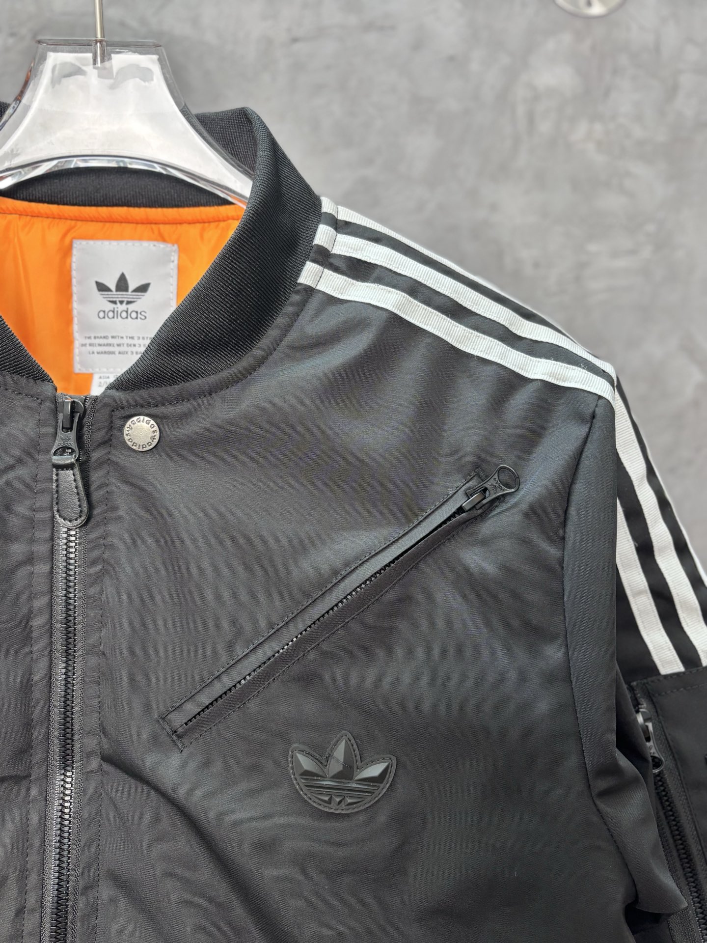 春秋必备单品飞行员夹克 三叶草每年的棒球夹克都很绝 经典三条纹的肩线 多功能拉链口袋设计 在视觉上减轻了常规棉服带来的厚重感 下摆袖口罗纹收紧设计 显瘦的同时也更加防风 虽然是棉服却又轻盈舒适 不喜欢穿厚重衣物的有福啦
