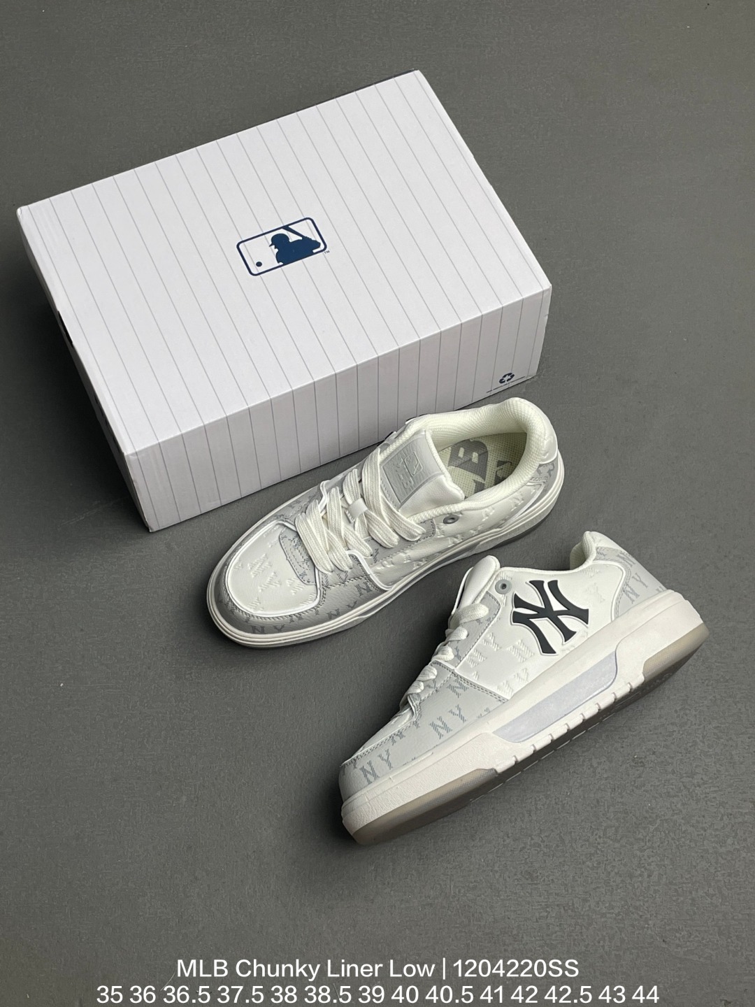 MLB 韩国F F旗下运动品牌 采用荔枝纹轻量克重纤维移膜皮革面鞋面材质 全新独立5cm厘米外增高轻质发泡中底组合耐磨橡胶外底片学院穿搭爆款 Korea韩国限定 联乘美国榄球洋基队New York Yankees x MLB Chunky Liner Low 学长鞋系列低帮老爹风轻量增高厚底百搭休闲运动板鞋