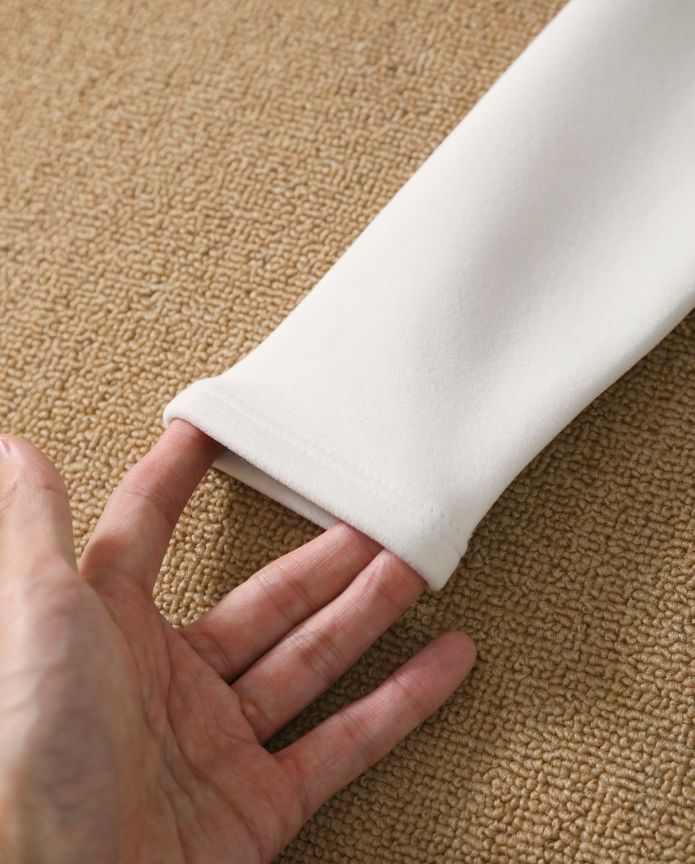 面料是肉眼可见的软暖底气 加绒加厚双面绒材质 绒面丰盈密实却不厚重 贴肤像裹着温热的云朵 特殊蓄热工艺能锁住体表温度 晨跑冷风或通勤微凉都能轻松抵御 9 9 氨纶融入赋予高弹属性 拉伸 抬手等运动动作舒展无束缚 久穿也不易变形起球