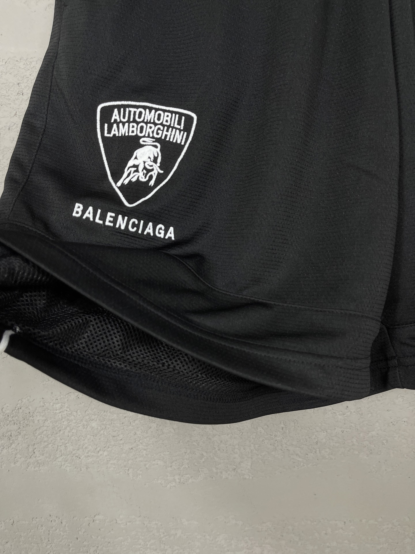实拍图 顶级版本 官网品质 BALENCI GA 巴黎联名兰博基尼Lamborghini球裤 前面左右刺绣 加内里双层网布 多位拼接夹边短裤 超重工艺