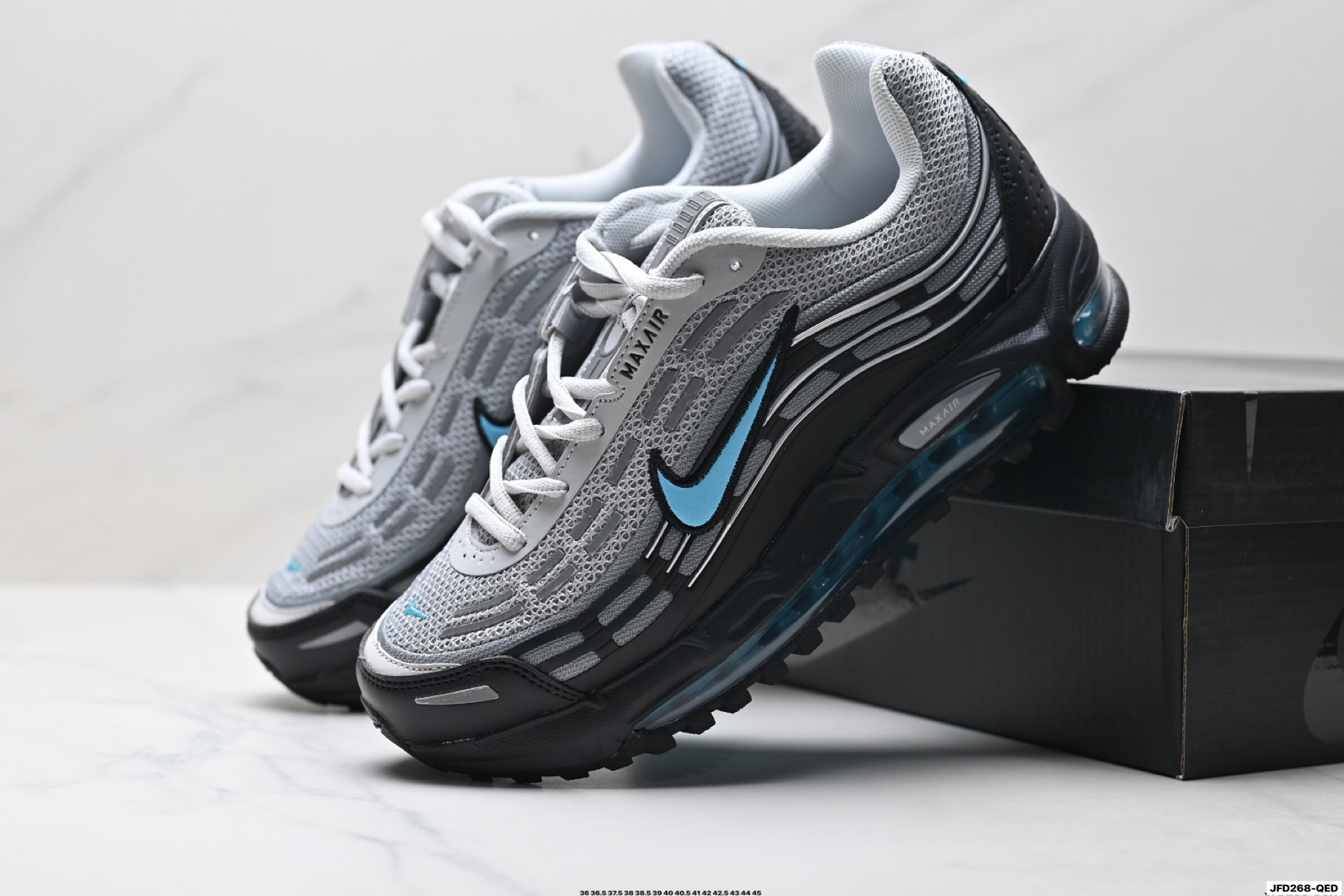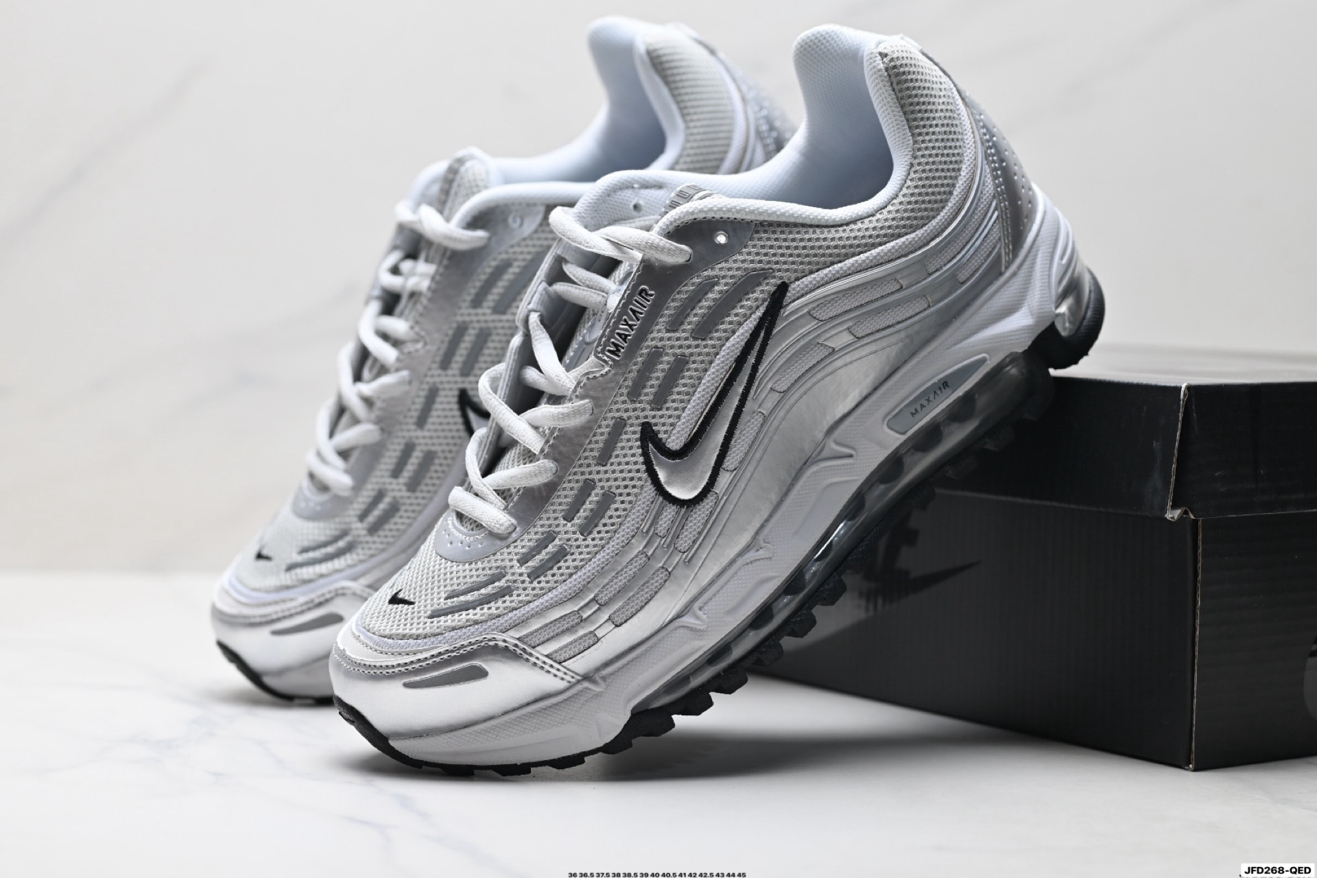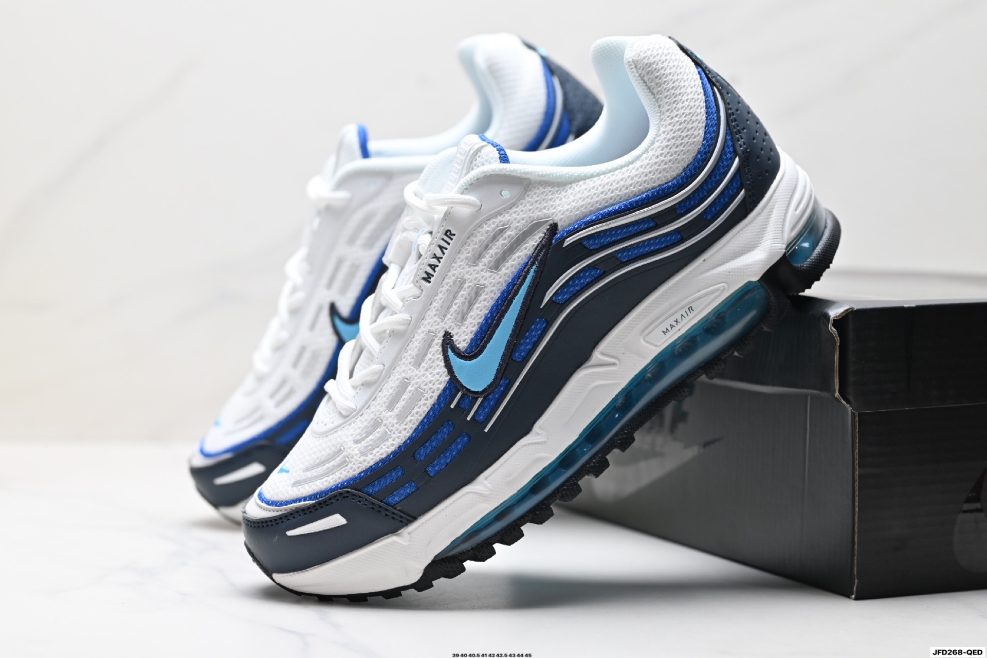 搭配全掌式 Max Air 气垫为步伐注入充沛活力中底完美拉帮 钢印注胶孔一应俱全 半透明中底和外底为整体造型画龙点睛 打造舒心时尚