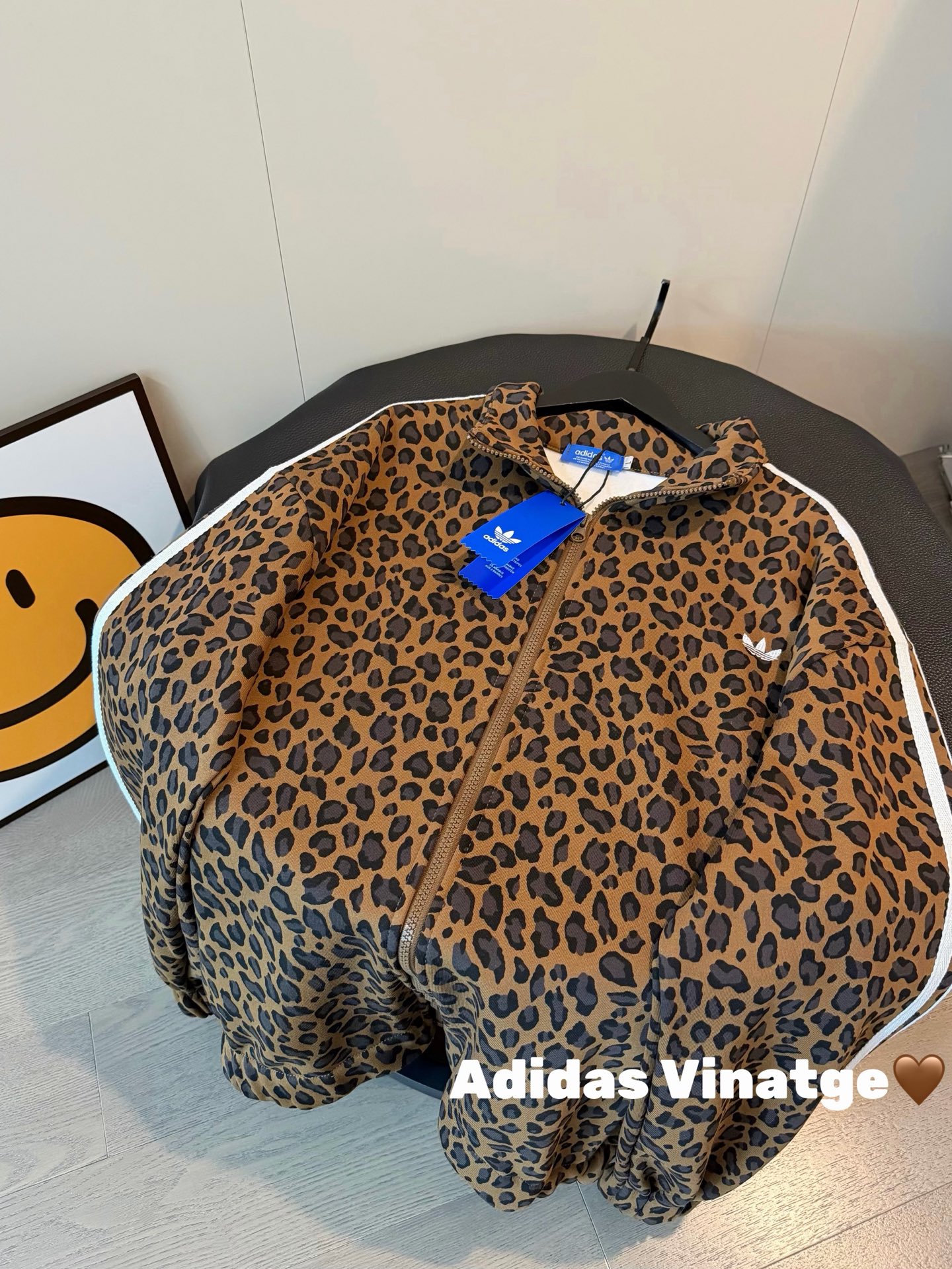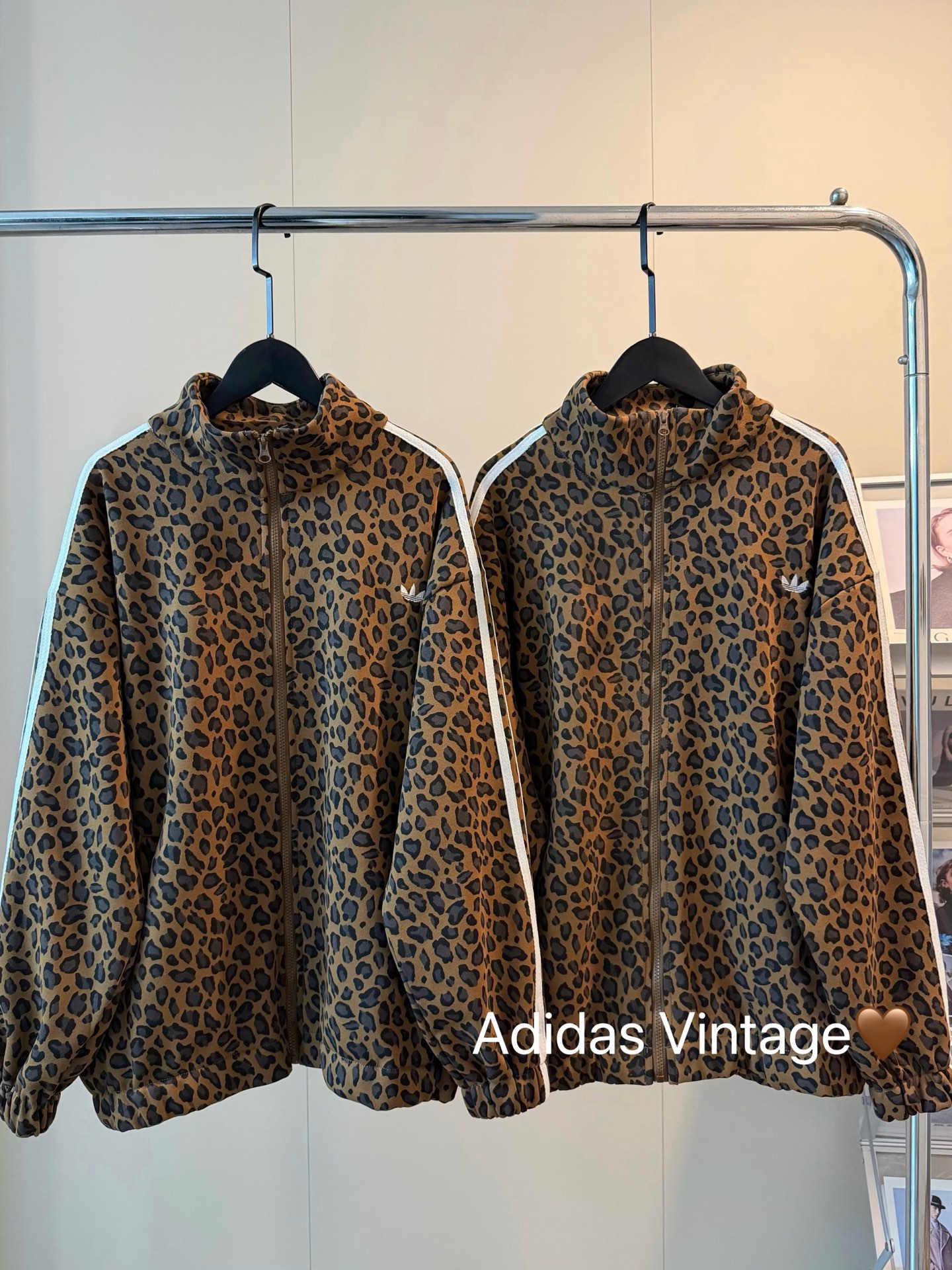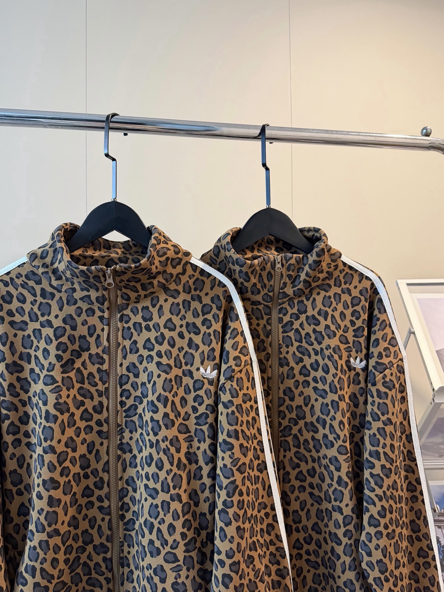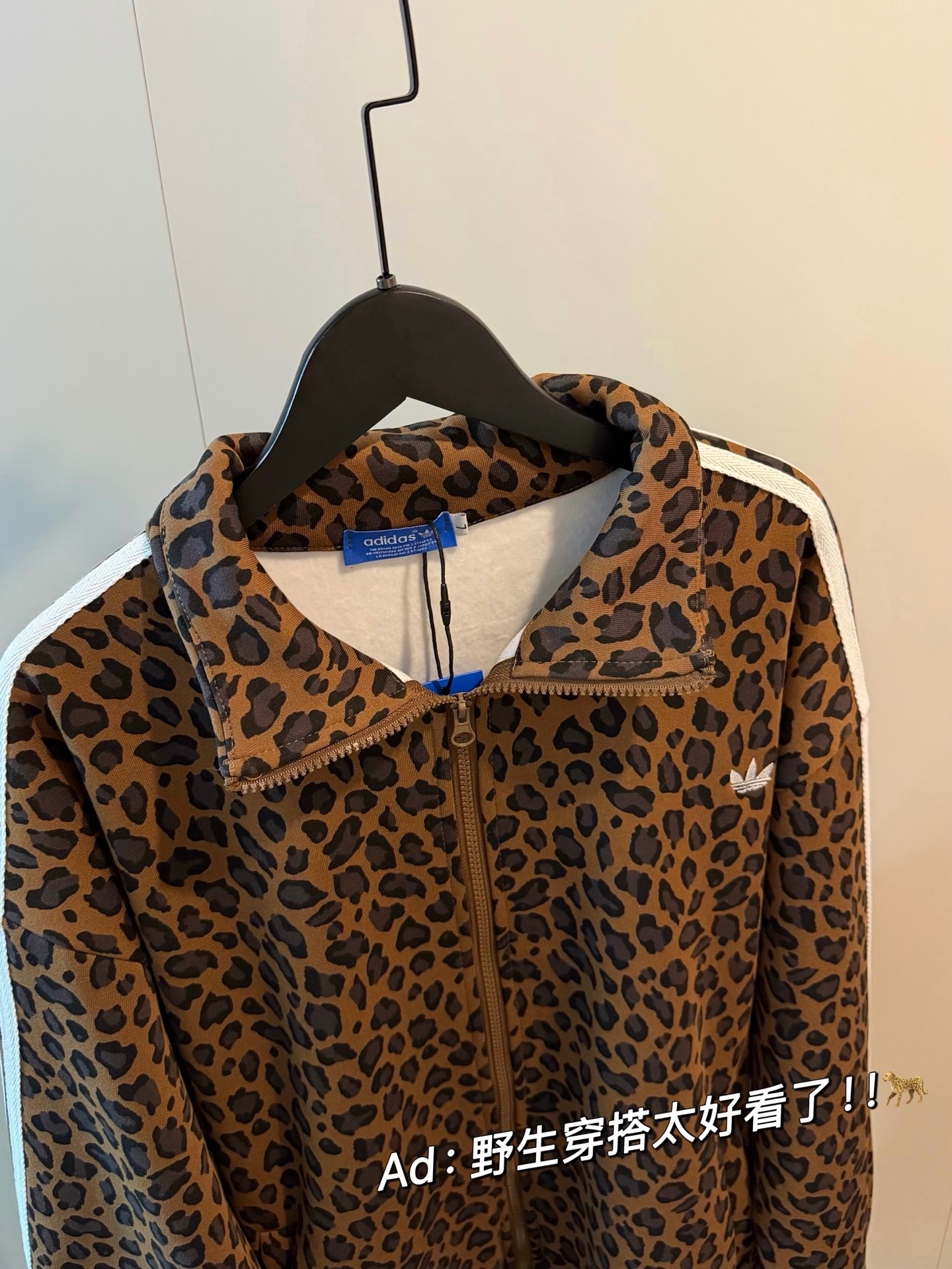 135243855 - Adidas三叶草新款豹纹刺绣三杠织带加绒外套 烧而不腻的豹 445600