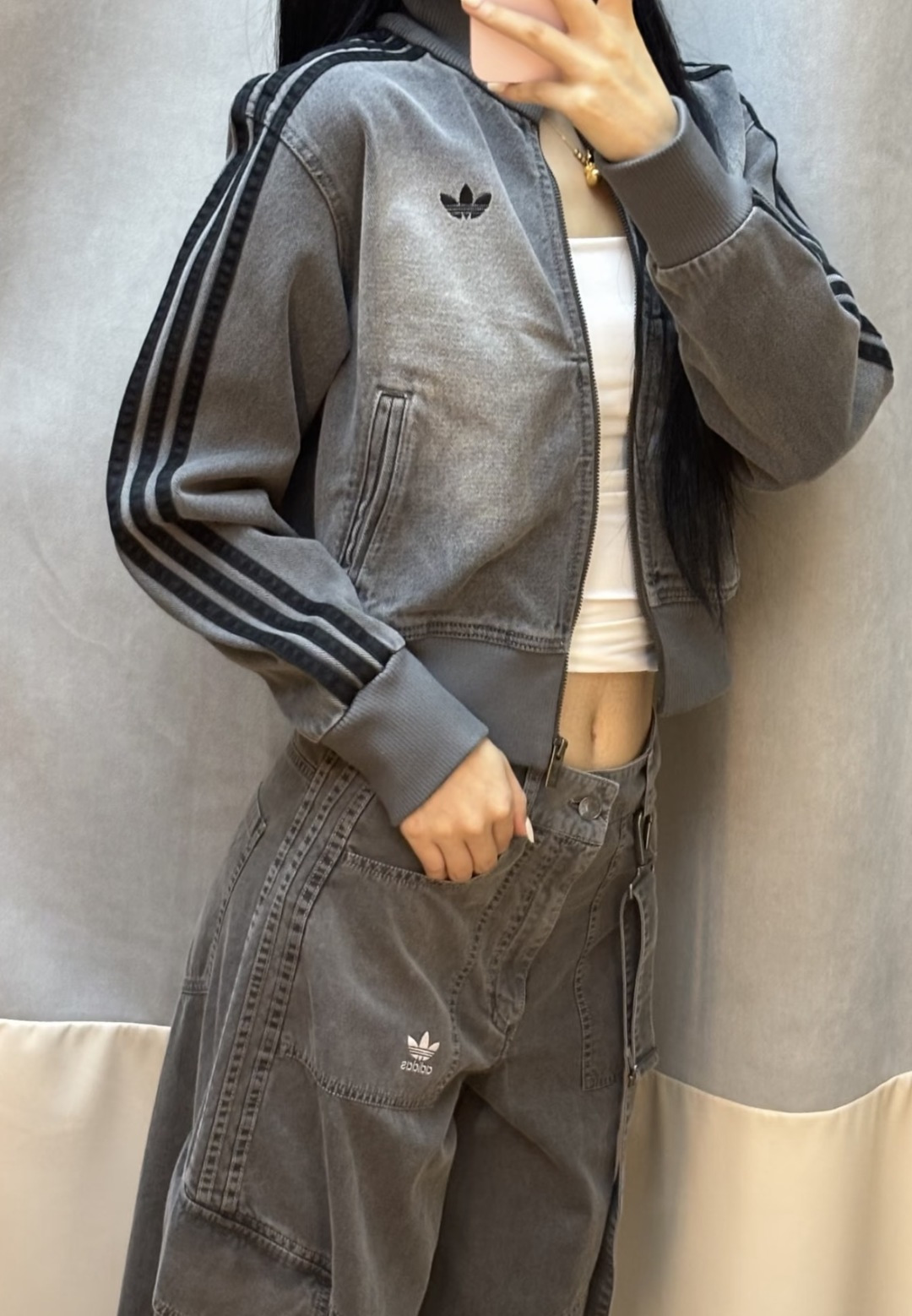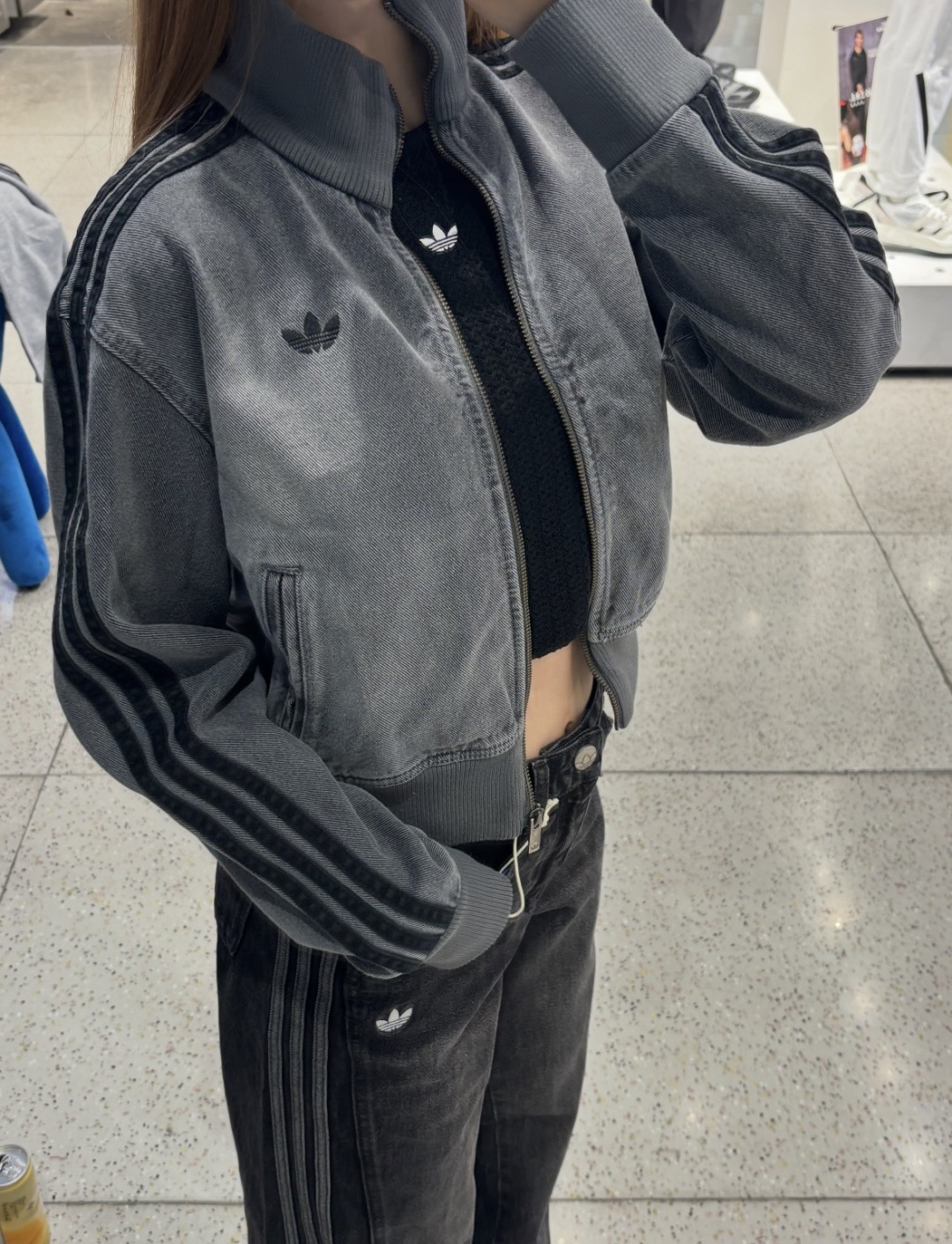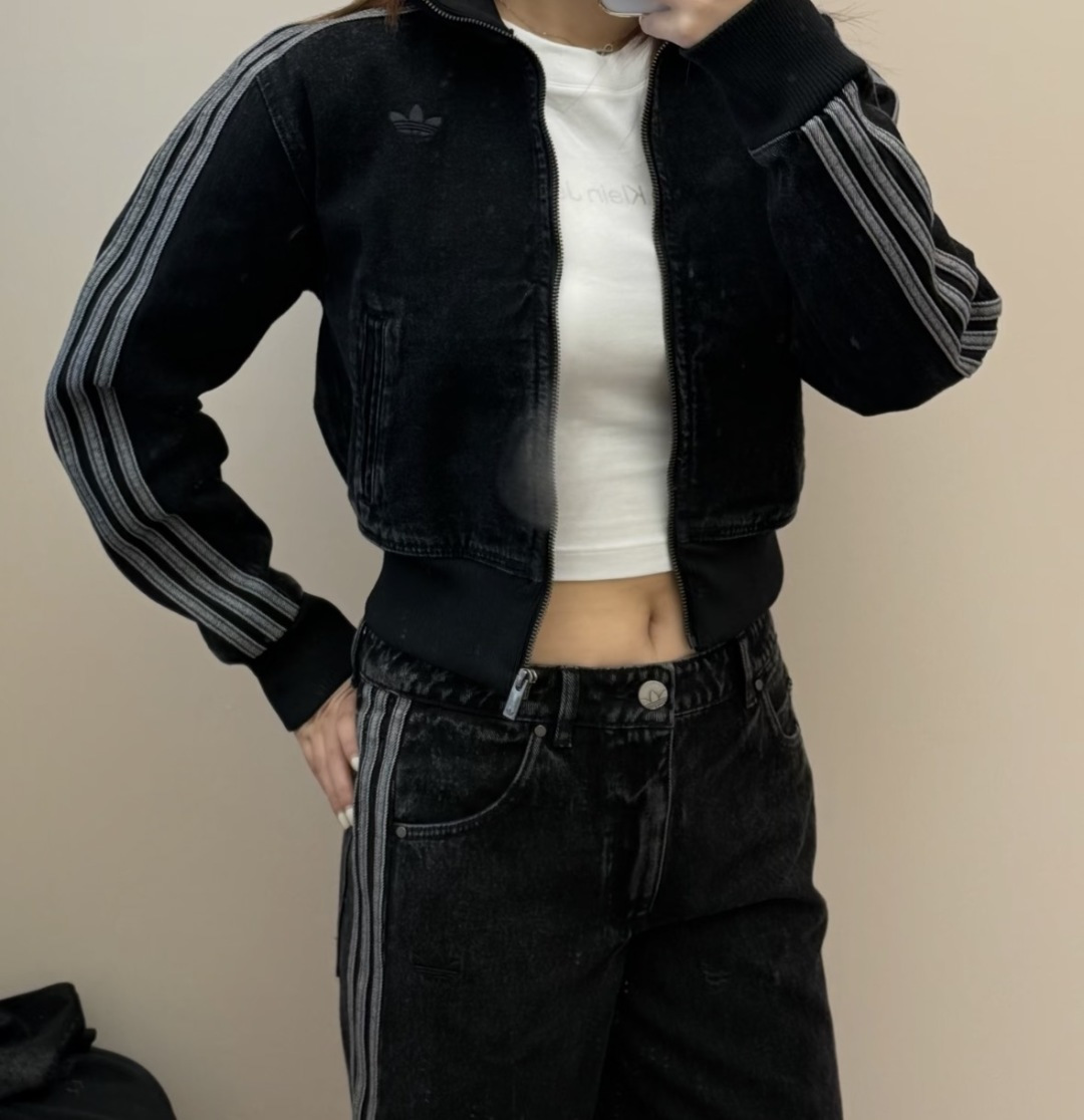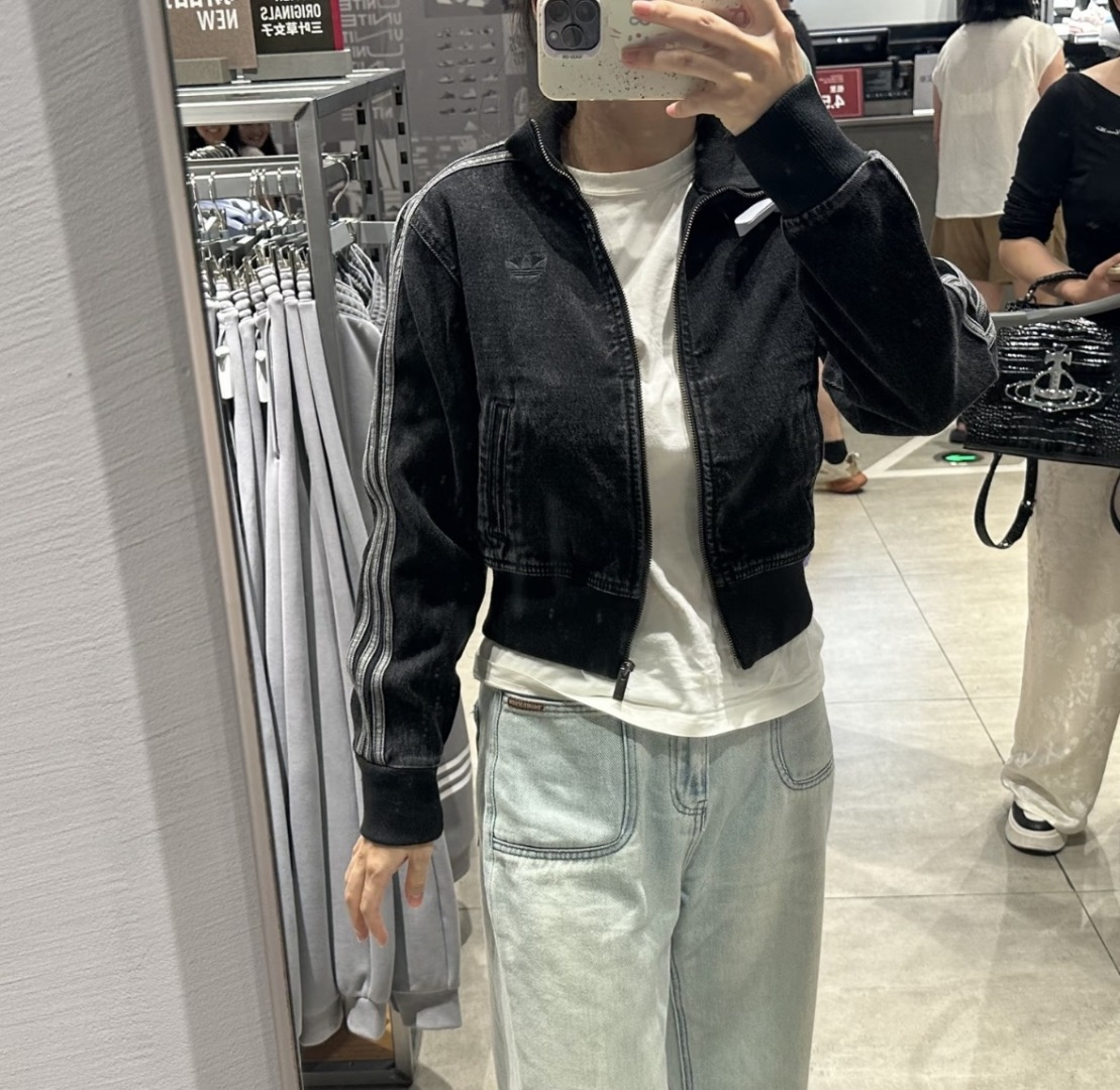 上身效果图𝟭𝟬𝟵𝟵𝟲 𝗔𝗱𝗶𝗱𝗮𝘀阿迪达斯三叶草 秋季三条杠刺绣小标牛仔外套女款短款休闲复古水洗牛仔外套Originals Firebird DENIM FB TT AD FW25新款立领复古拉链立领外套