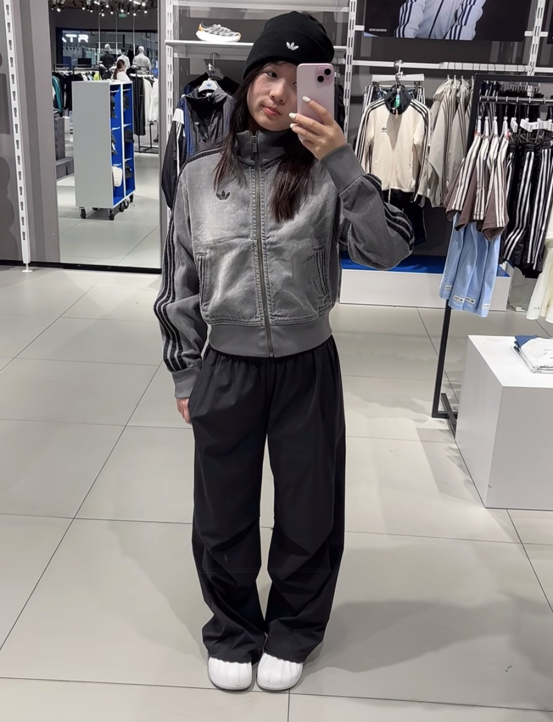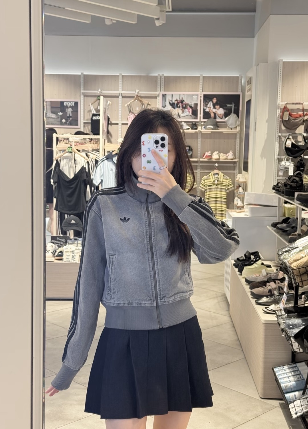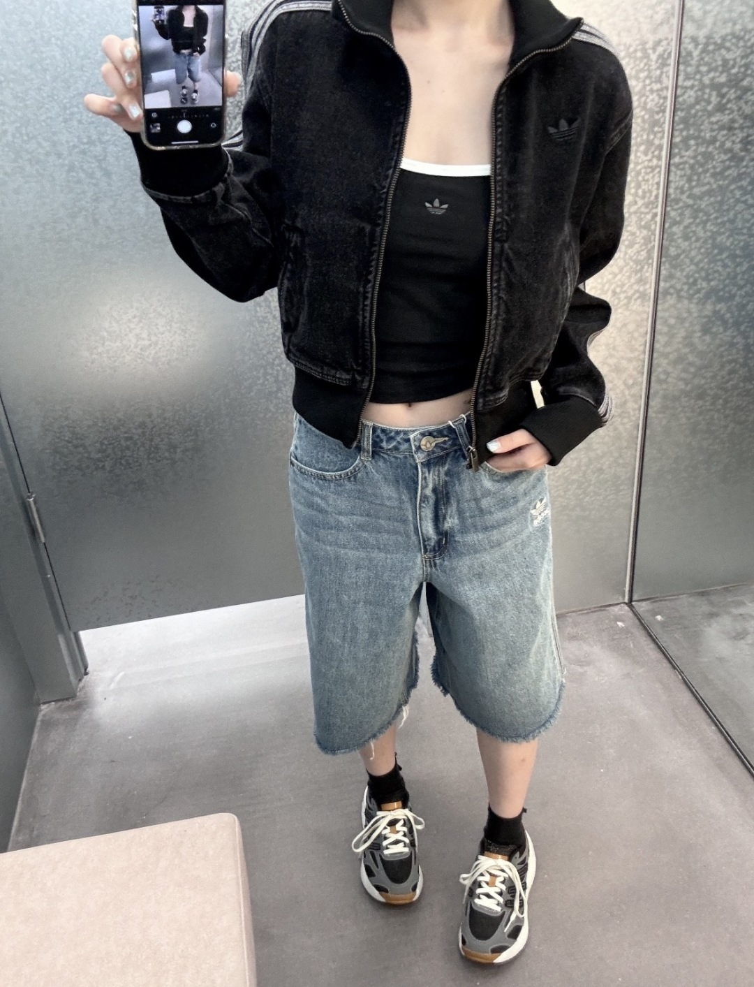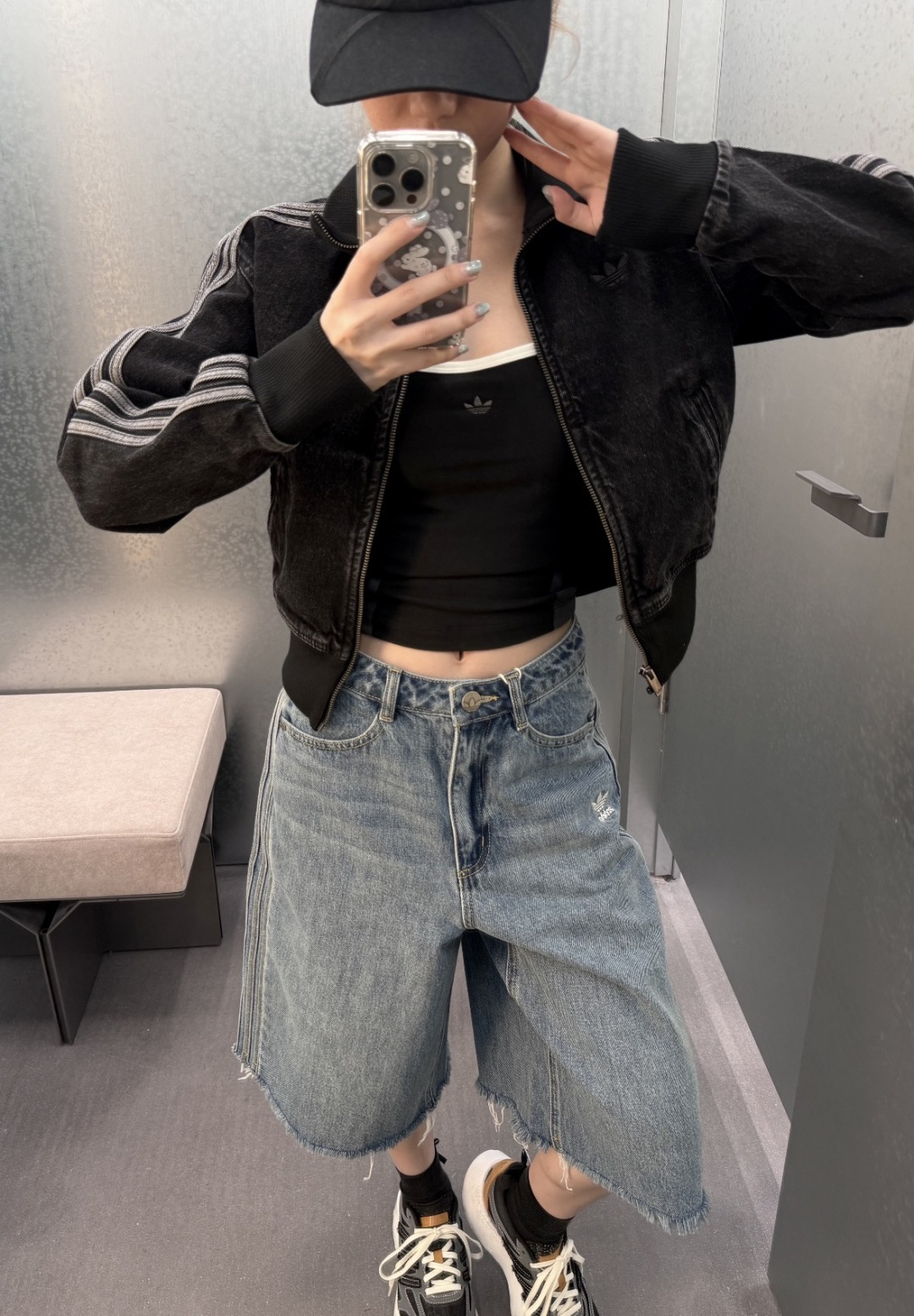上身效果图𝟭𝟬𝟵𝟵𝟲 𝗔𝗱𝗶𝗱𝗮𝘀阿迪达斯三叶草 秋季三条杠刺绣小标牛仔外套女款短款休闲复古水洗牛仔外套Originals Firebird DENIM FB TT AD FW25新款立领复古拉链立领外套