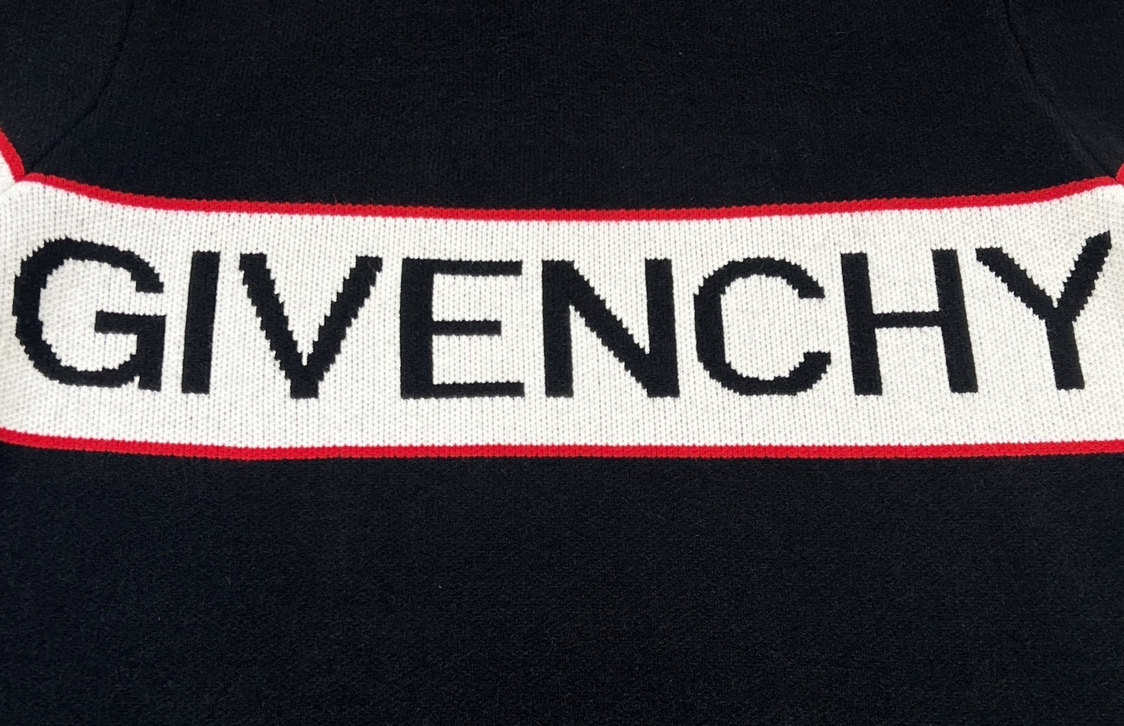 经典的黑色底色 红白撞色条带贯穿胸前 大胆又醒目 正面织出的 GIVENCHY 字母提花 直接把品牌的辨识度拉满 穿出门回头率爆表