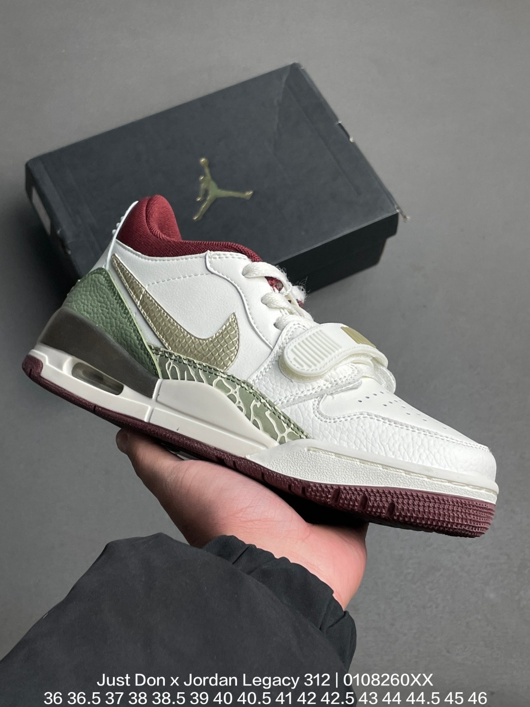Jordan 乔丹 采用牛培移膜革材质鞋面 中底PU内嵌开窗式Air缓震气垫确实帅气难挡 三合一最强合体Just Don x Jordan Legacy 312乔丹最强三合一混合版本低帮休闲运动篮球鞋
