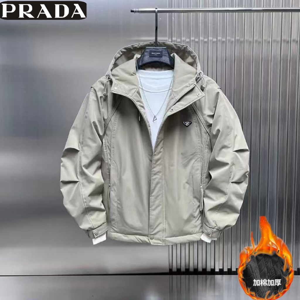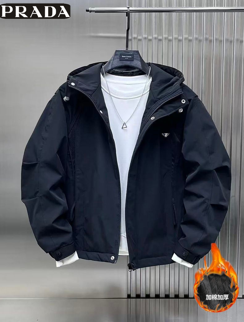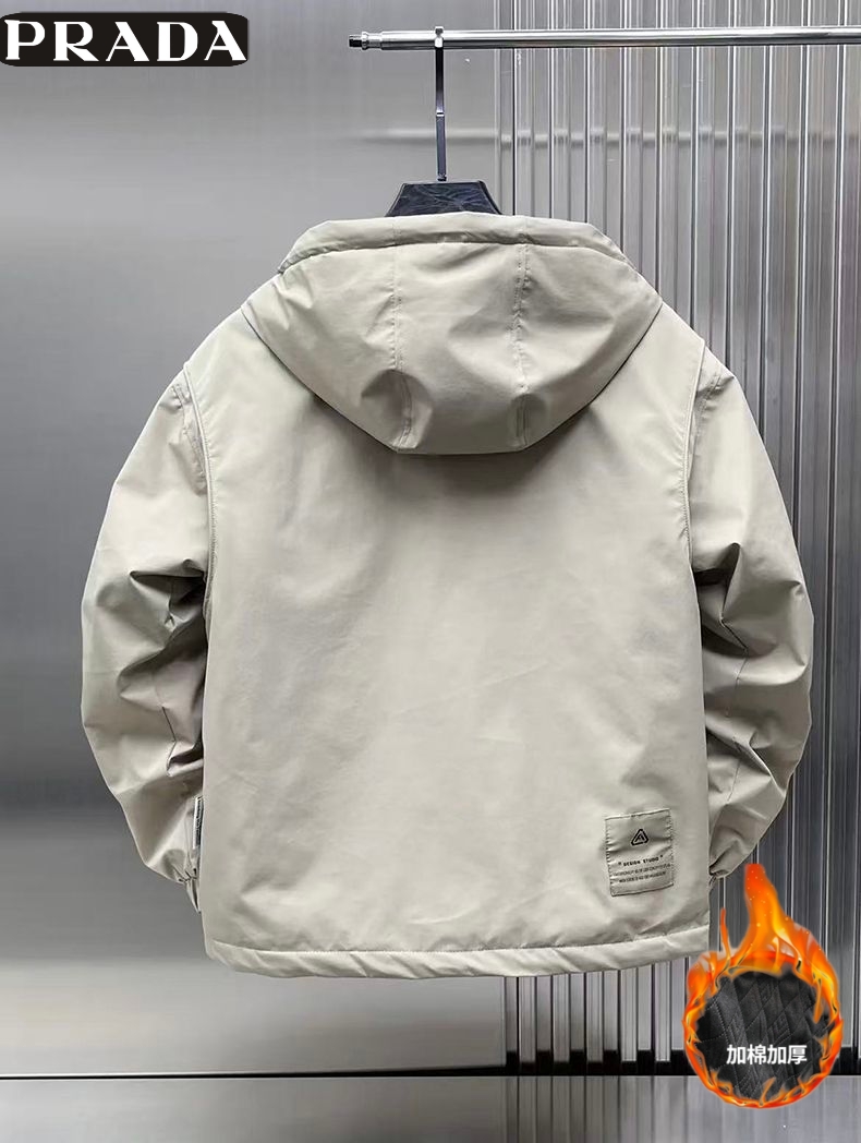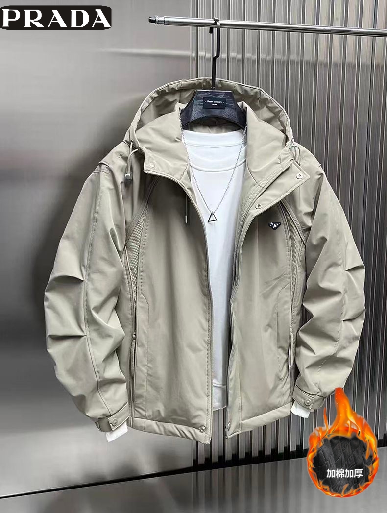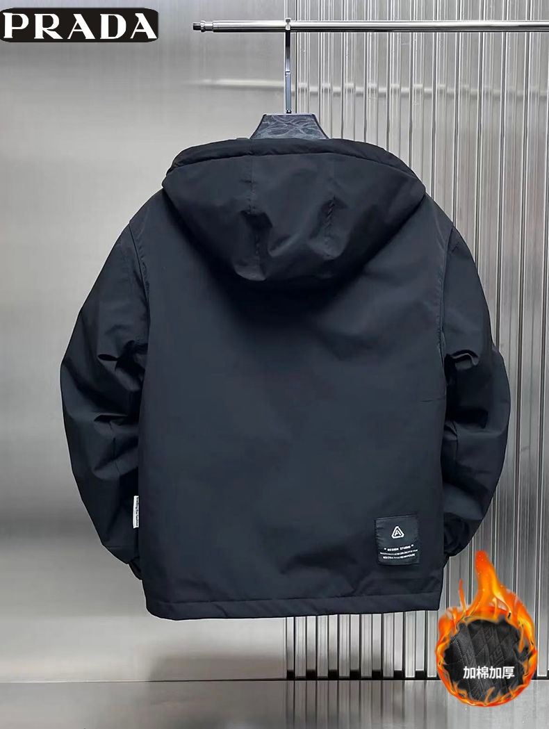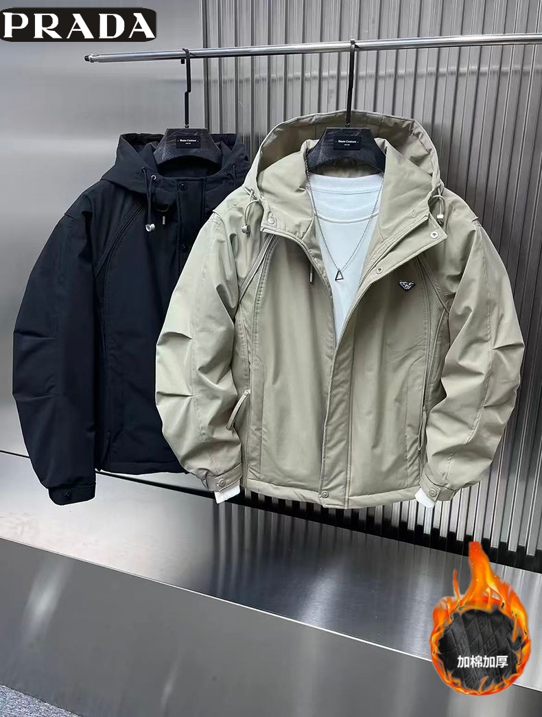普拉达Prada 冬季新款 男女同款连帽加二棉百搭户外工装外套 男士工装棉衣 加厚外套