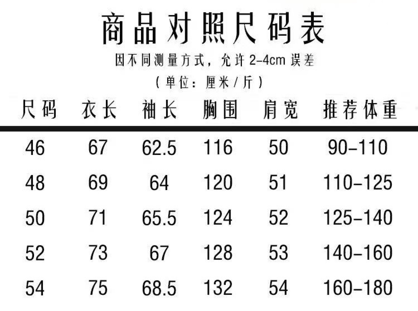 尺码 46 54