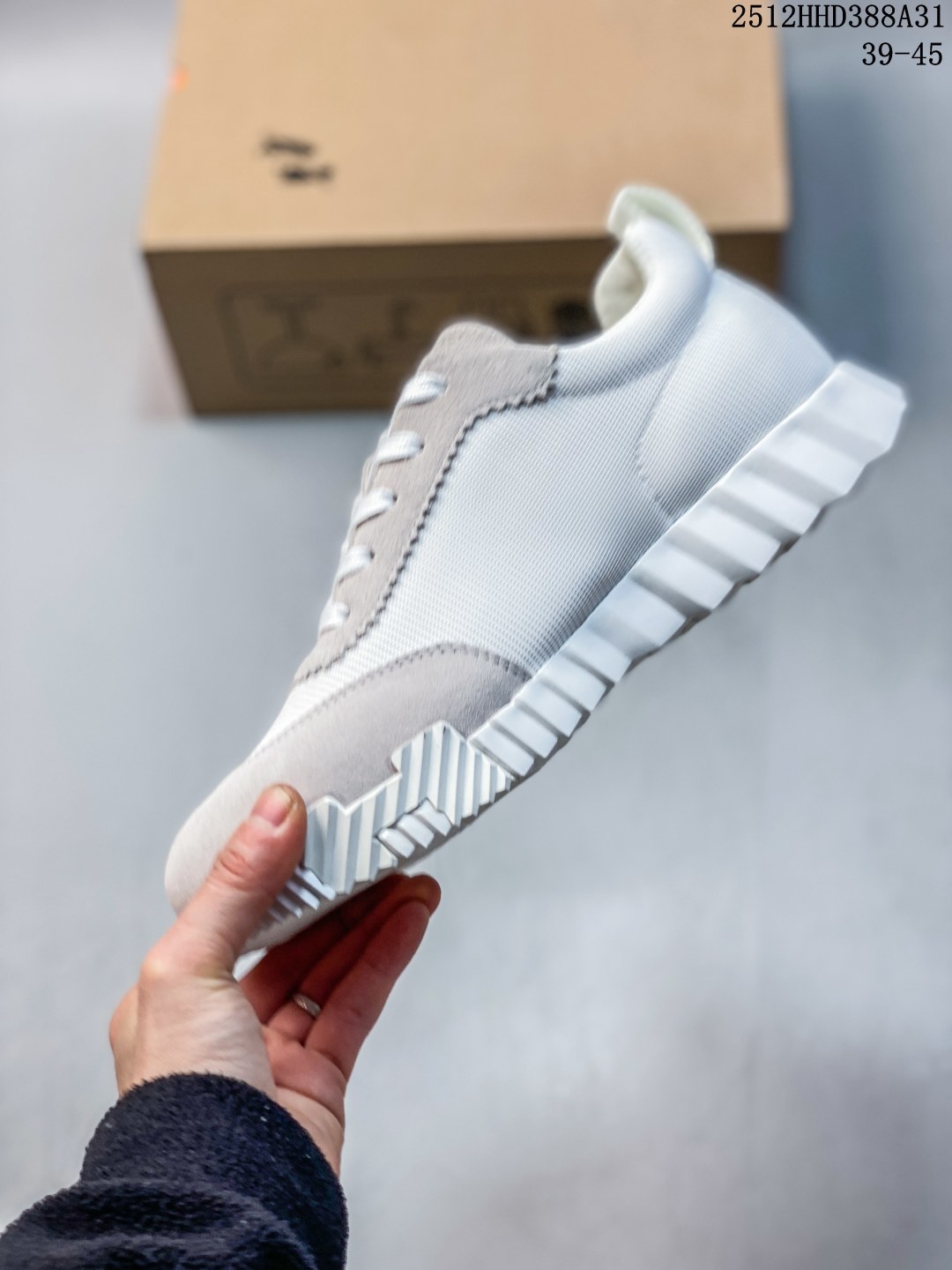Hermes 爱马仕 Bouncing 低帮休闲板鞋 采用麂皮山羊皮革组合科技网织布鞋面材质 嵌入羊羔皮内底贴附发泡EVA缓震鞋垫 外置原装一致开发TPR耐磨耐弯折橡胶大底 原版开发 全新修改格版裁片 真原厂羊猄皮 卡色对比正品没有丝毫色差 附带正品中文版合格证 区别一眼假过度包装