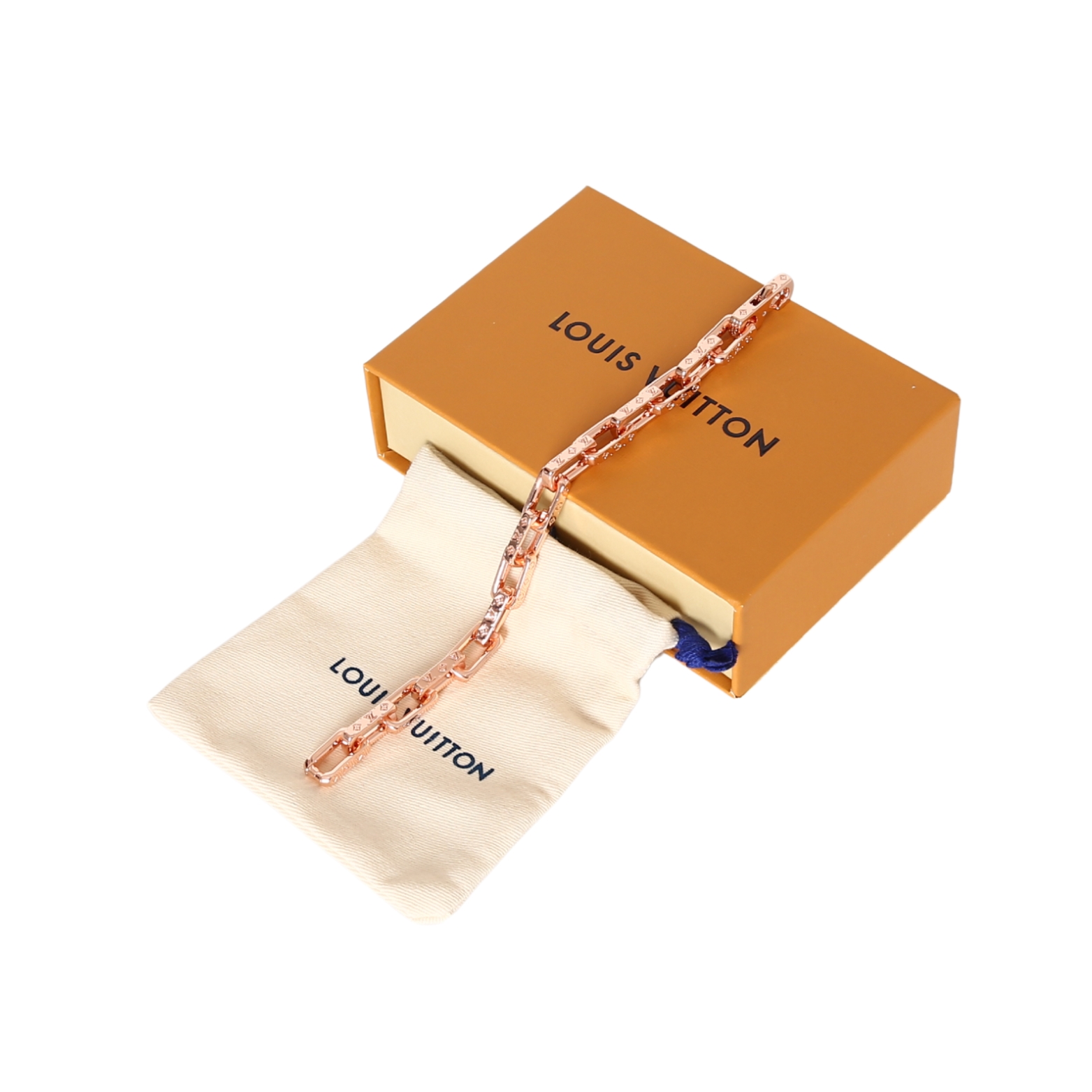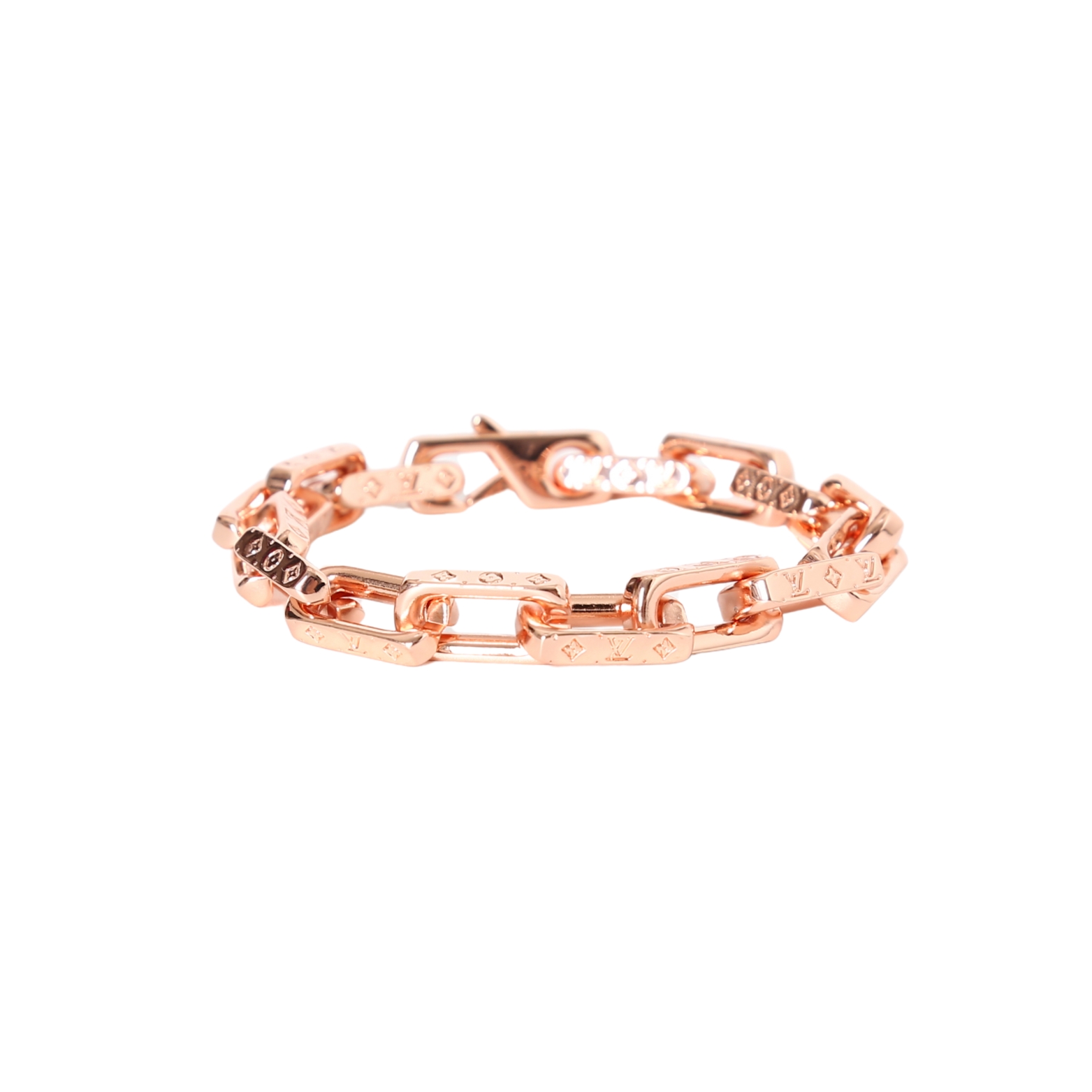 路易威登竹节金手链 腕间轻奢符号 暖调玫瑰金镀层在光线下流转细腻光泽 硬朗几何链环与经典 Monogram 元素碰撞 刚柔并济间尽显摩登格调 每一节链环都镌刻着品牌标志性字母与菱格纹 细节处藏着匠心 低调诉说着百年奢品的精致底蕴 开合处镶嵌璀璨水晶 如星芒点缀腕间 既提升了整体精致度 又让佩戴更便捷稳固 金属质感坚韧耐磨 日常佩戴不易褪色变形 适配职场通勤 约会晚宴等多种场景 轻松驾驭西装 针织衫 连衣裙等各类穿搭 它不仅是一件配饰 更是个性与品味的延伸 利落线条勾勒出独立自信的姿态 玫瑰金的温柔色调又中和了硬朗感 让每一次抬手都成为目光焦点 无论是犒赏自己 还是赠予挚爱 都是承载心意与格调的理想之选 让轻奢美学时刻随行
