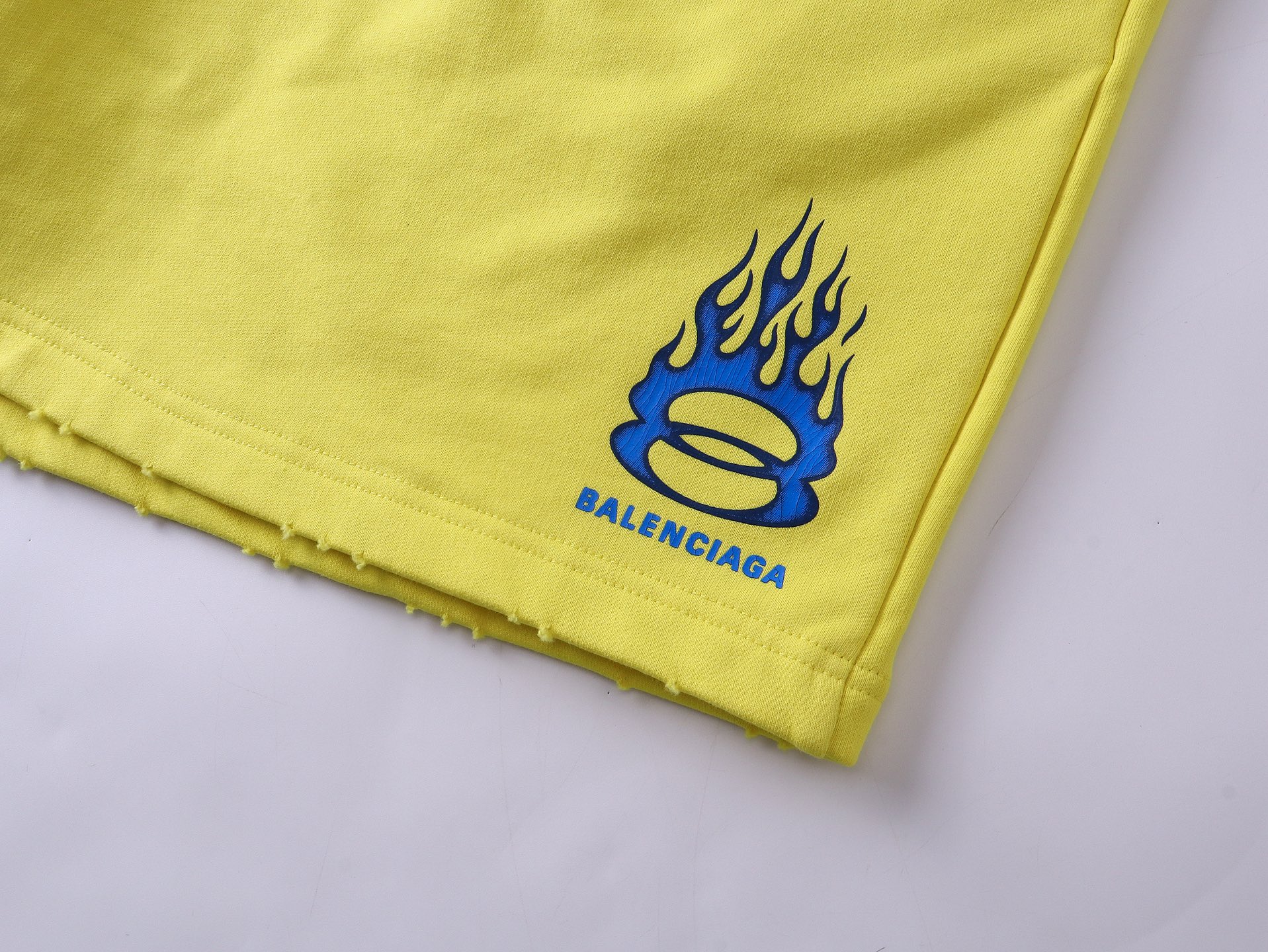 实拍图 顶级版本 官网品质 BALENCI GA 巴黎 2025新款 巴黎双环火焰LOGO拉裂印花洗水做旧磨烂短裤 砖柜同步 第一时间正品研制 欢印对比 面料采用巴黎ZP定织定染全棉毛圈大卫衣 克重460克 布面干净 布纹清晰 手感柔软舒适 印花釆用进口环保胶桨字母清晰 效果立体 版型釆用宽松版型 男女同款