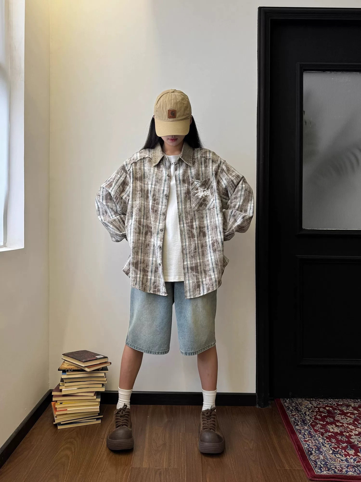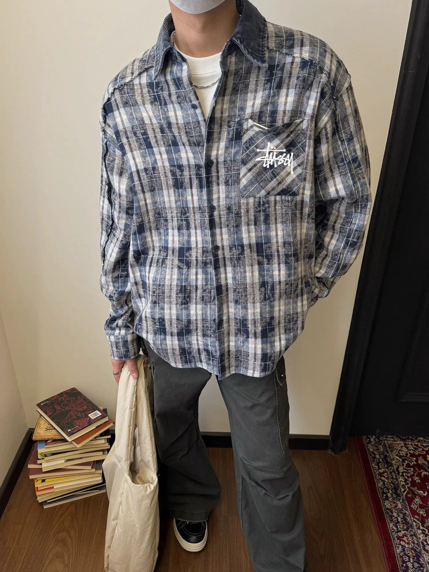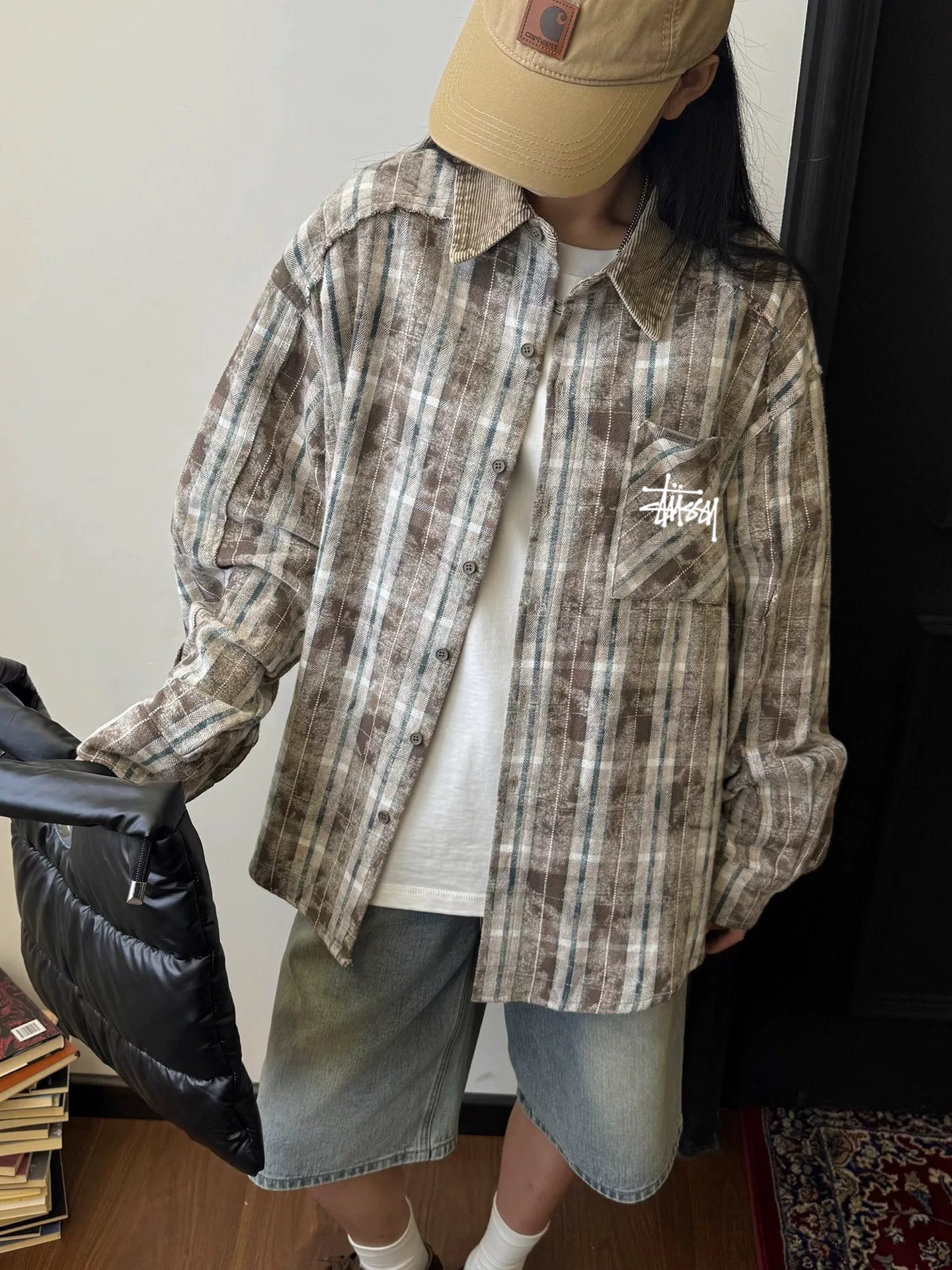 100156386 - 斯图西Stussy美式复古翻领格子衬衫男女同款春秋拼接扎染设 332022
