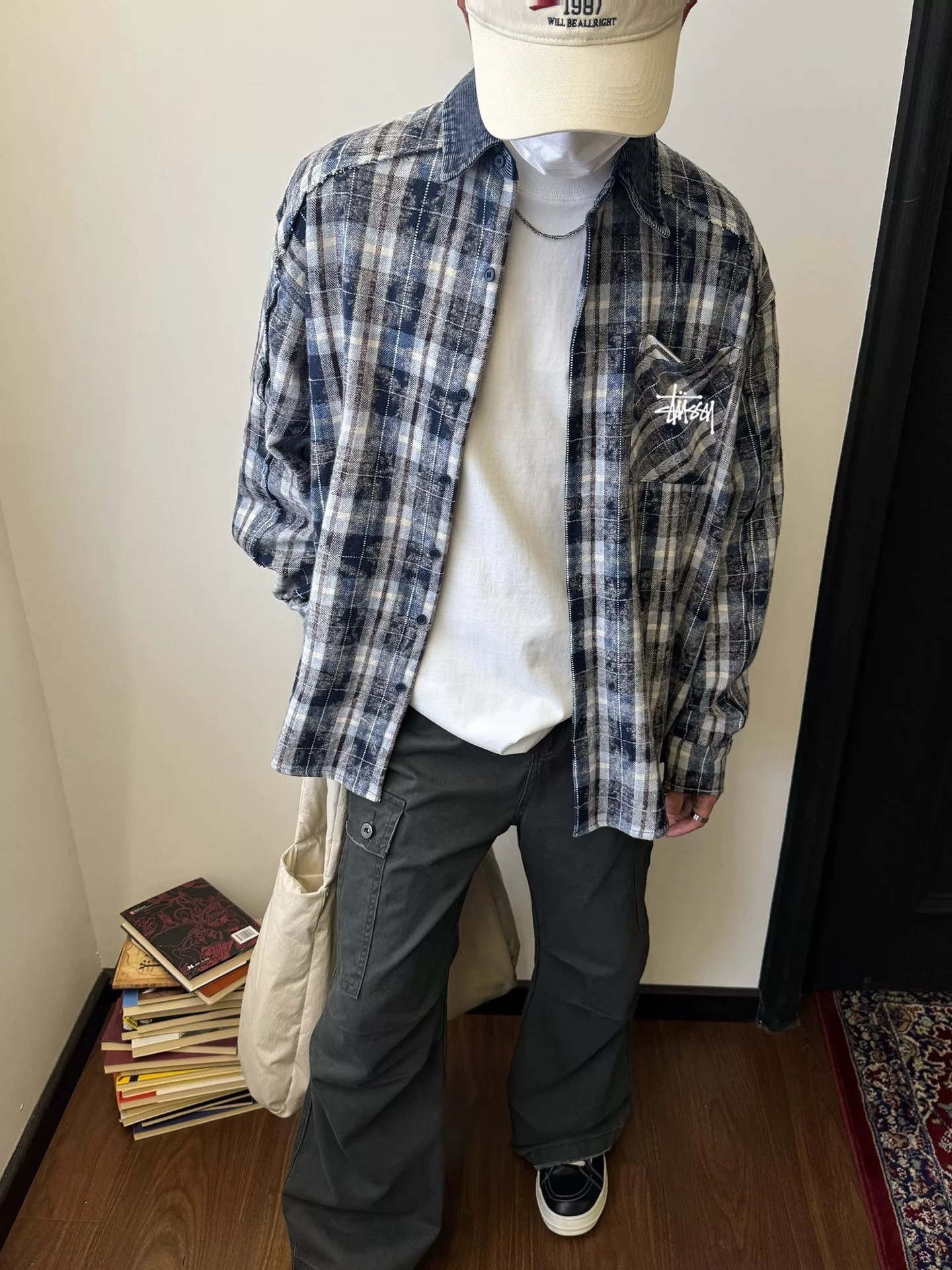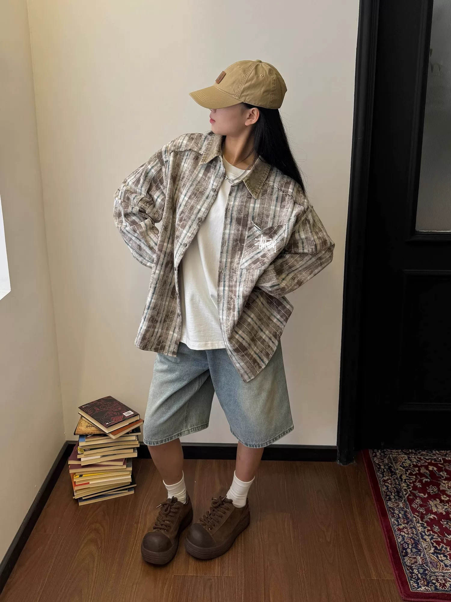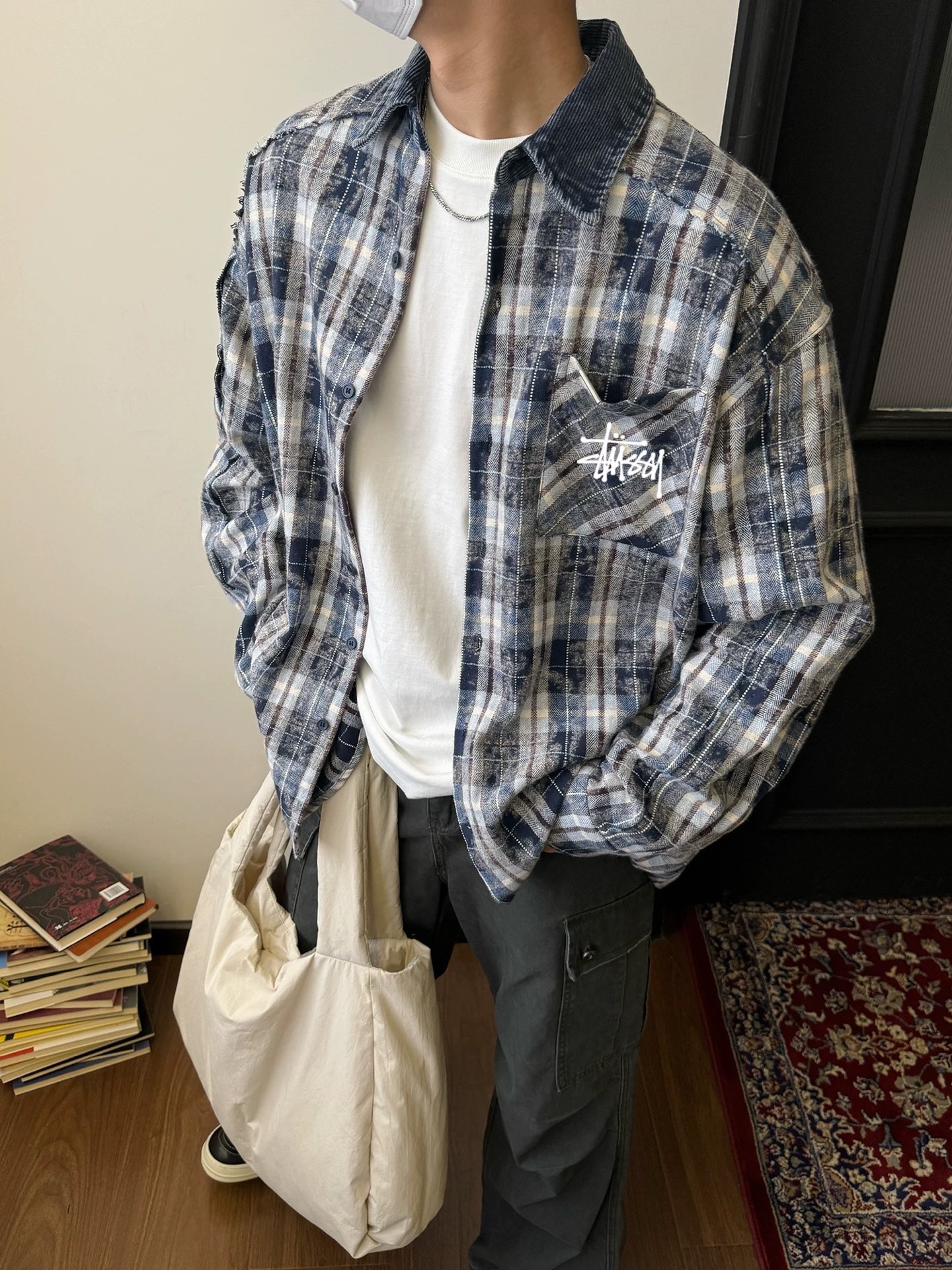100156386 - 斯图西Stussy美式复古翻领格子衬衫男女同款春秋拼接扎染设 332022