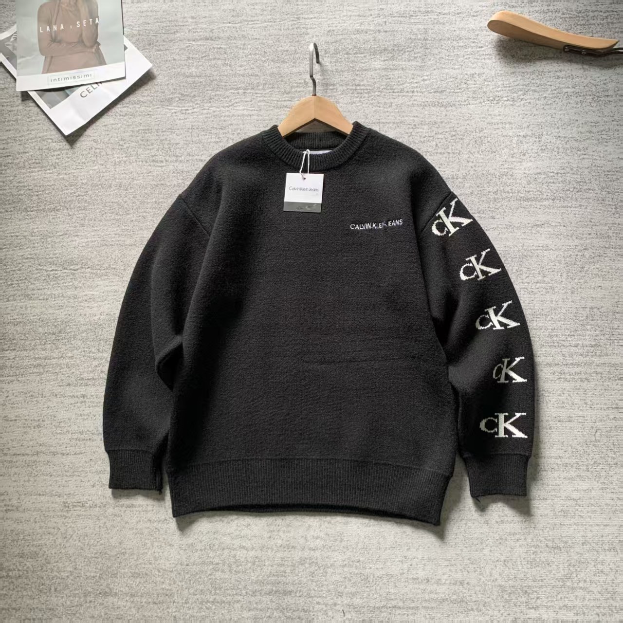 125142532 - 顶级版本 CK百搭圆领情侣 提花圆领毛衣 高针高密高弹针织 339276