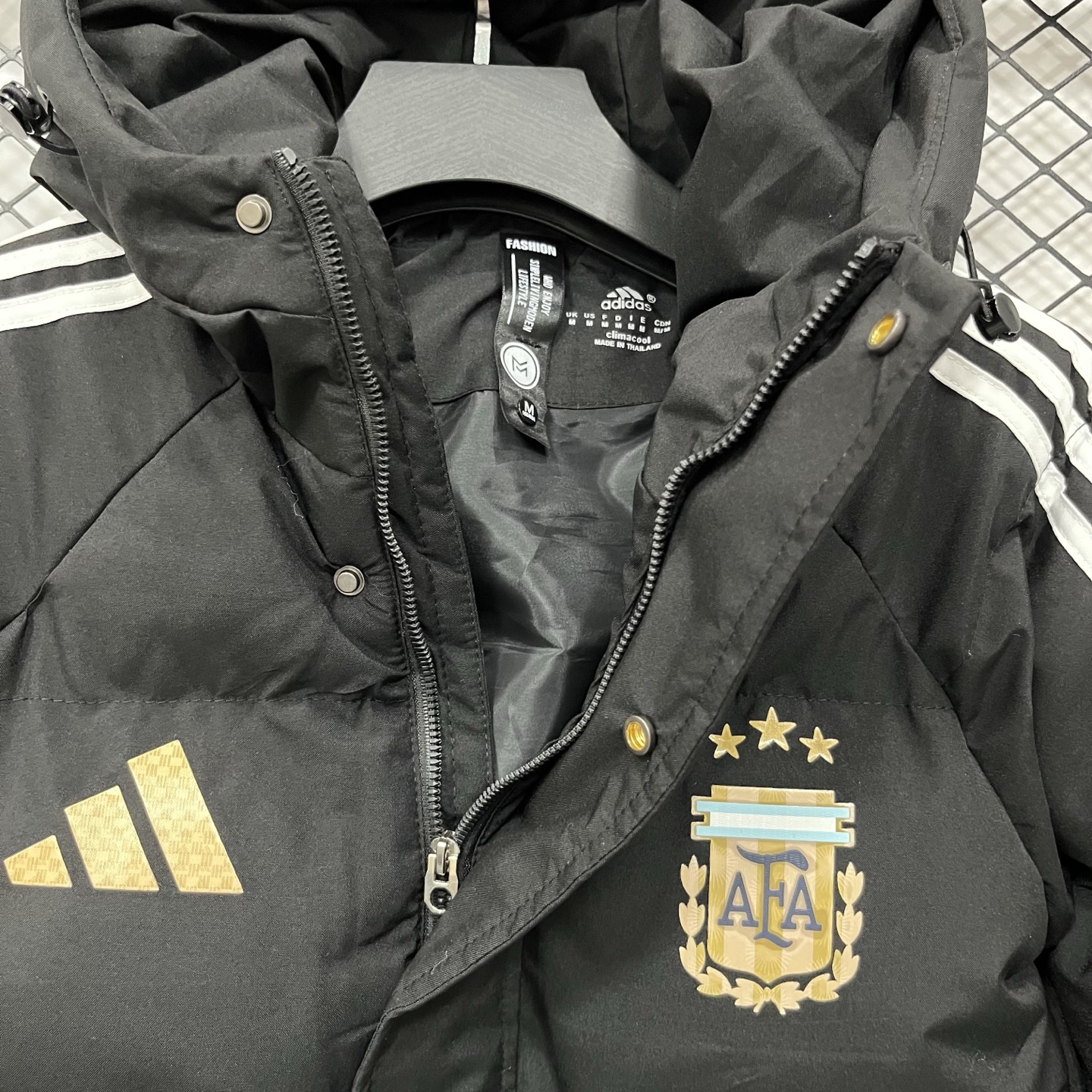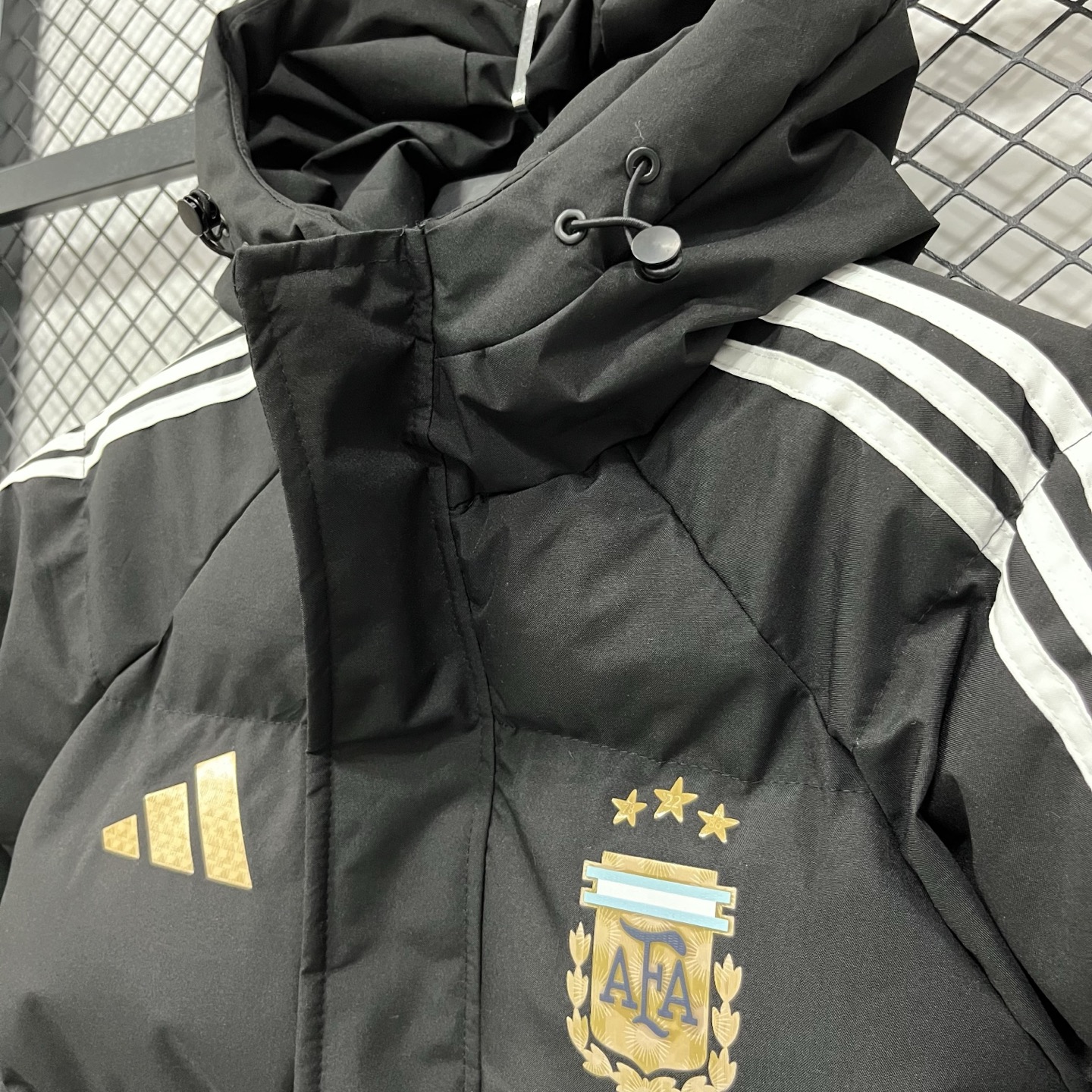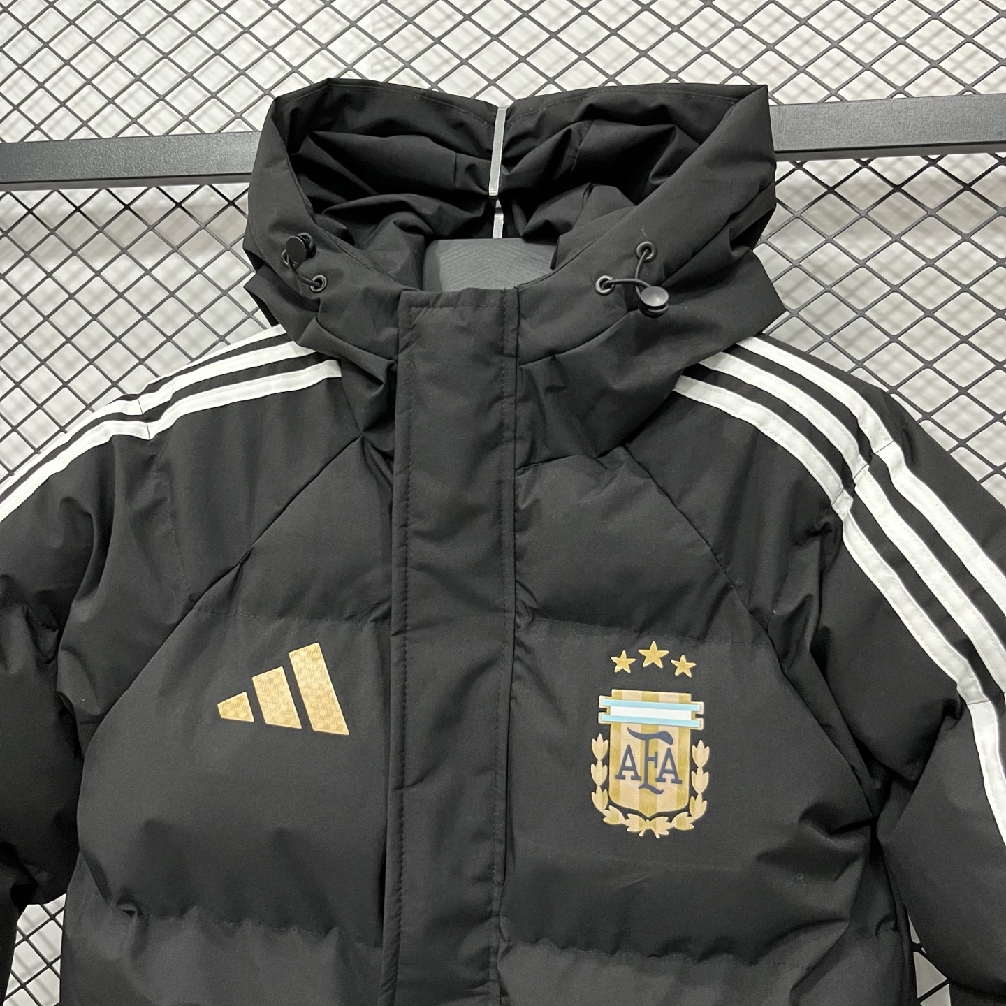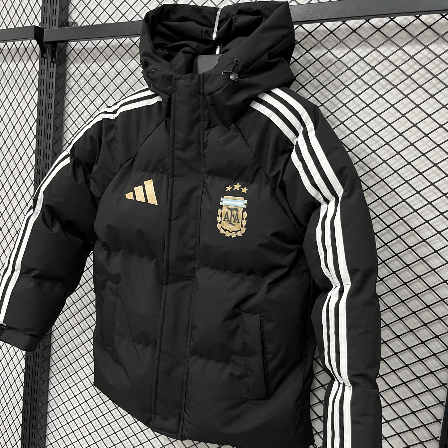 售后不停 阿迪达斯adidas2026世界杯 阿根廷 羽绒棉服 三条杠羽绒棉服 ESSENTIALS 3 Stripes 户外保暖防风连帽拉链 羽绒棉服宽松版型三条纹面包羽绒棉服 男款 黑色 白色M 4XL