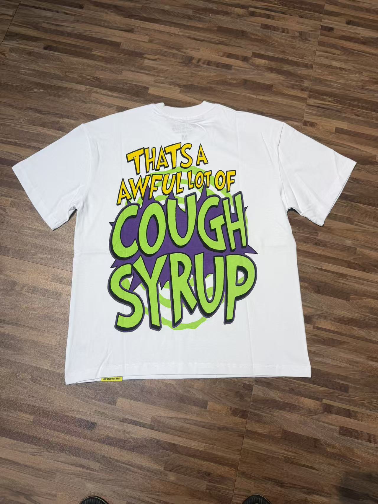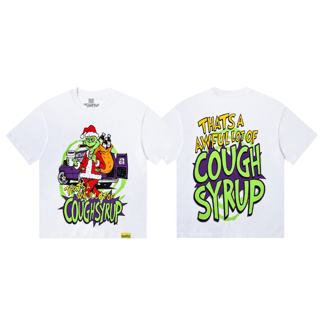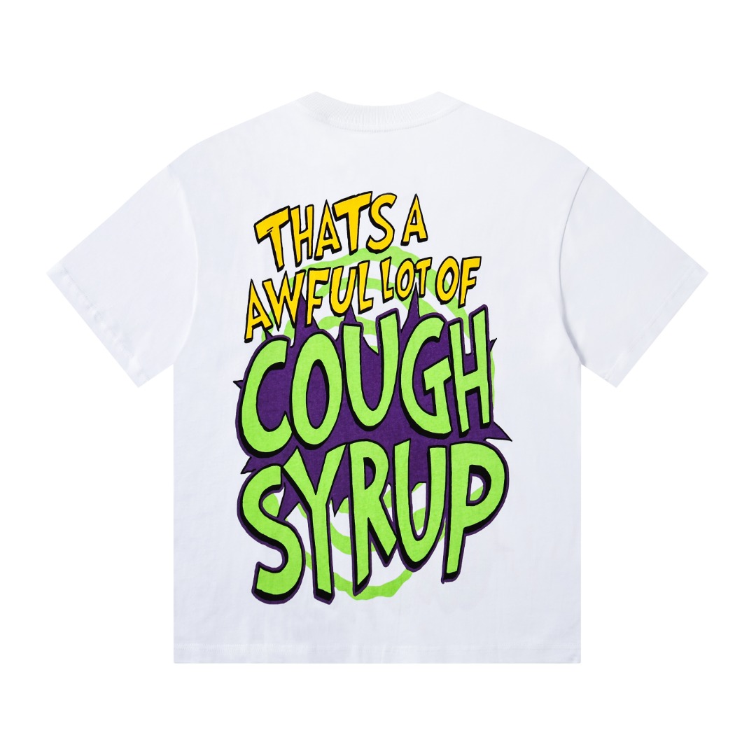 安可拉红 象牙白 THAT S A AWFUL LOT OF COUGH SYRU 现货实拍 美式简约 潮牌宽松休闲T恤 面料 fabric 32支240克重精梳双纱纯棉 码数 size S M L X L 颜色 colour 安可拉红 象牙白