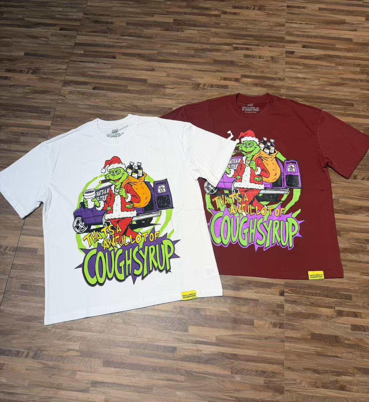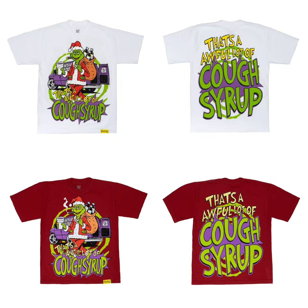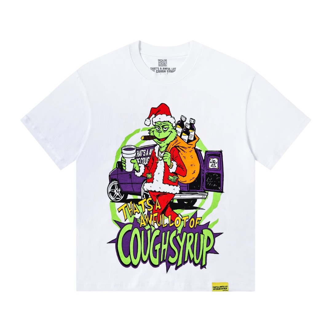 安可拉红 象牙白 THAT S A AWFUL LOT OF COUGH SYRU 现货实拍 美式简约 潮牌宽松休闲T恤 面料 fabric 32支240克重精梳双纱纯棉 码数 size S M L X L 颜色 colour 安可拉红 象牙白