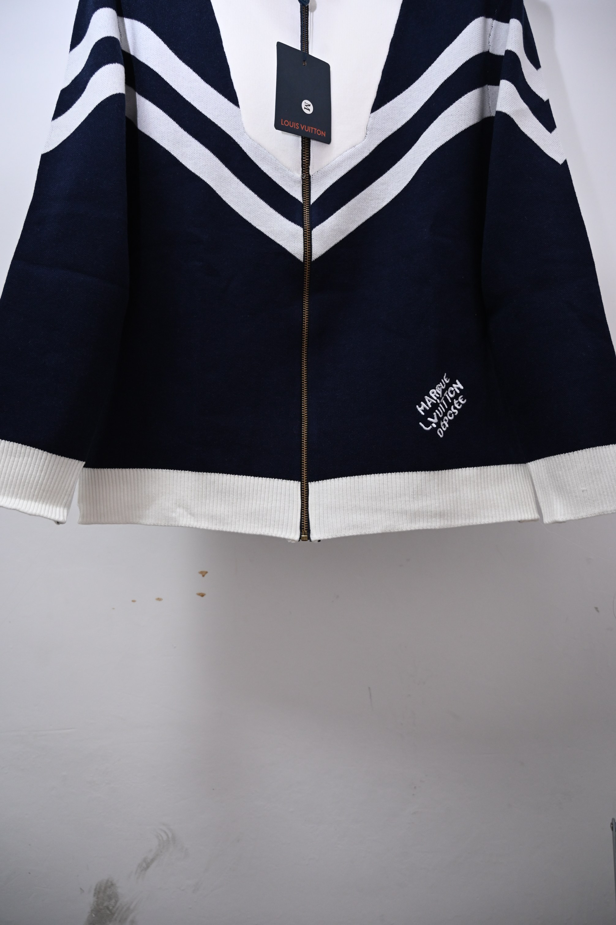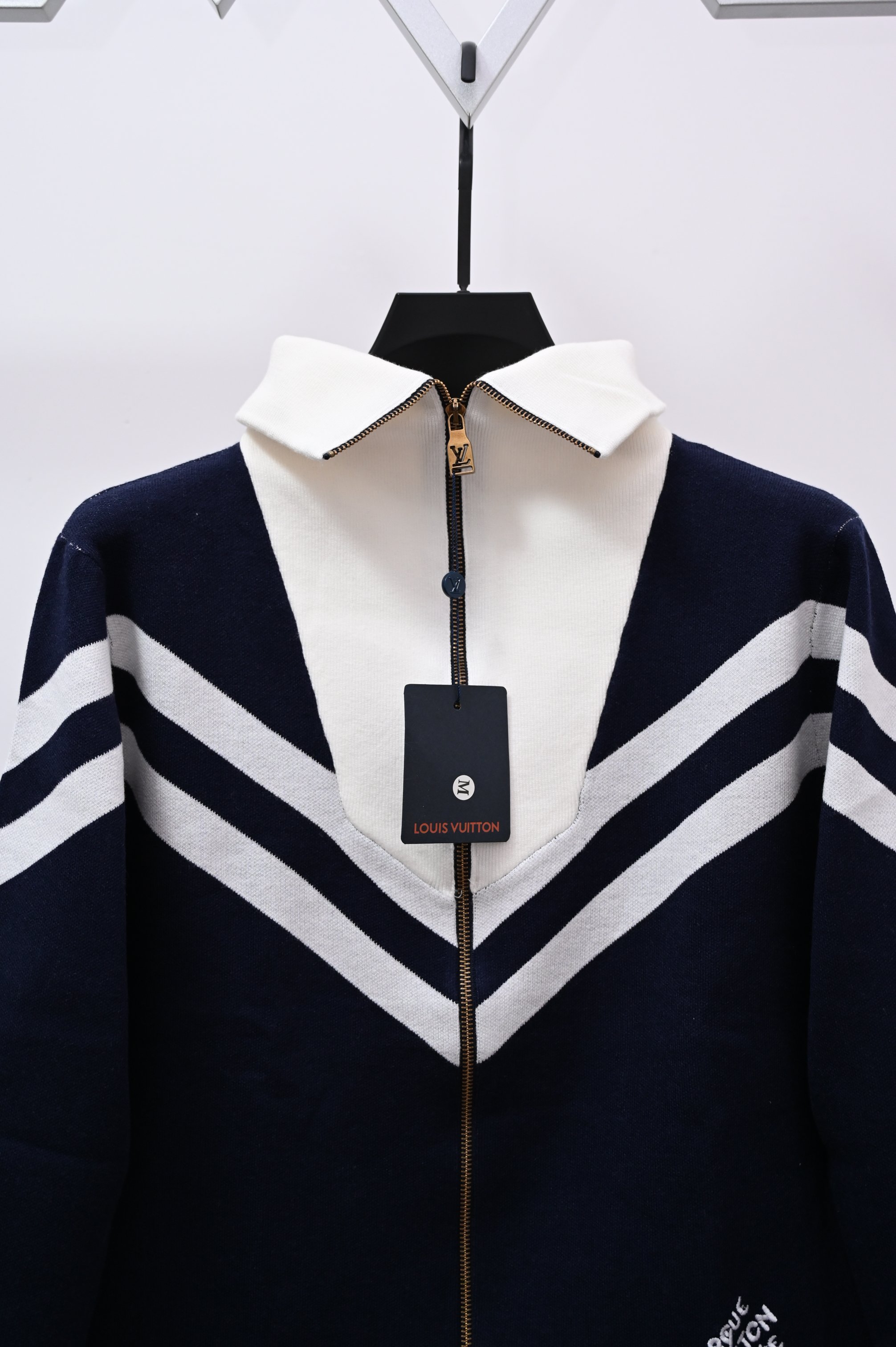 路易威登Louis Vuitton 26ss新款拉链针织开衫毛衣 王鹤棣同款路条纹字母立领拉链长袖针织夹克外套