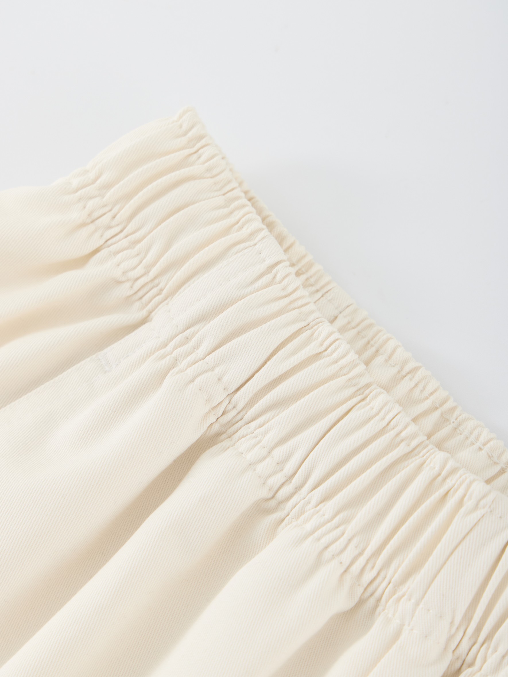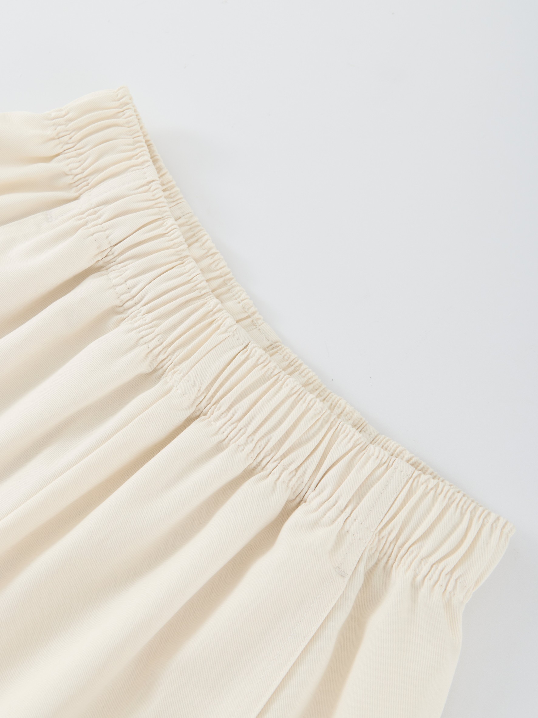 松紧腰形成自然的褶皱 上身立体生动 对宽胯 粗腿有着很好的修饰效果