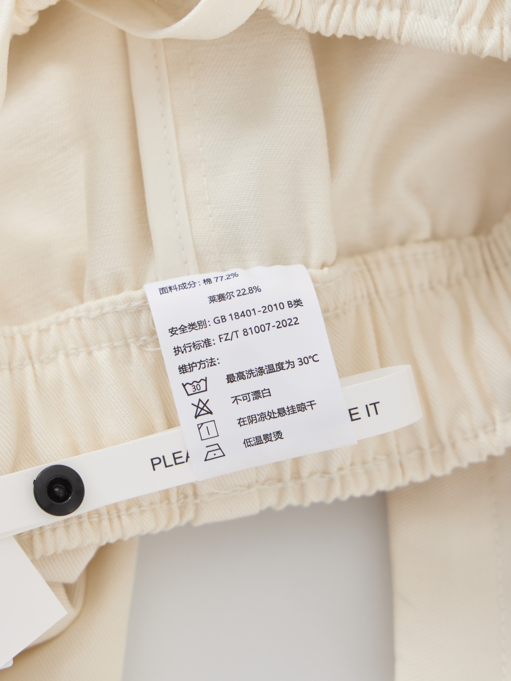 5 面料成分 77 2 棉 22 8 莱赛尔
